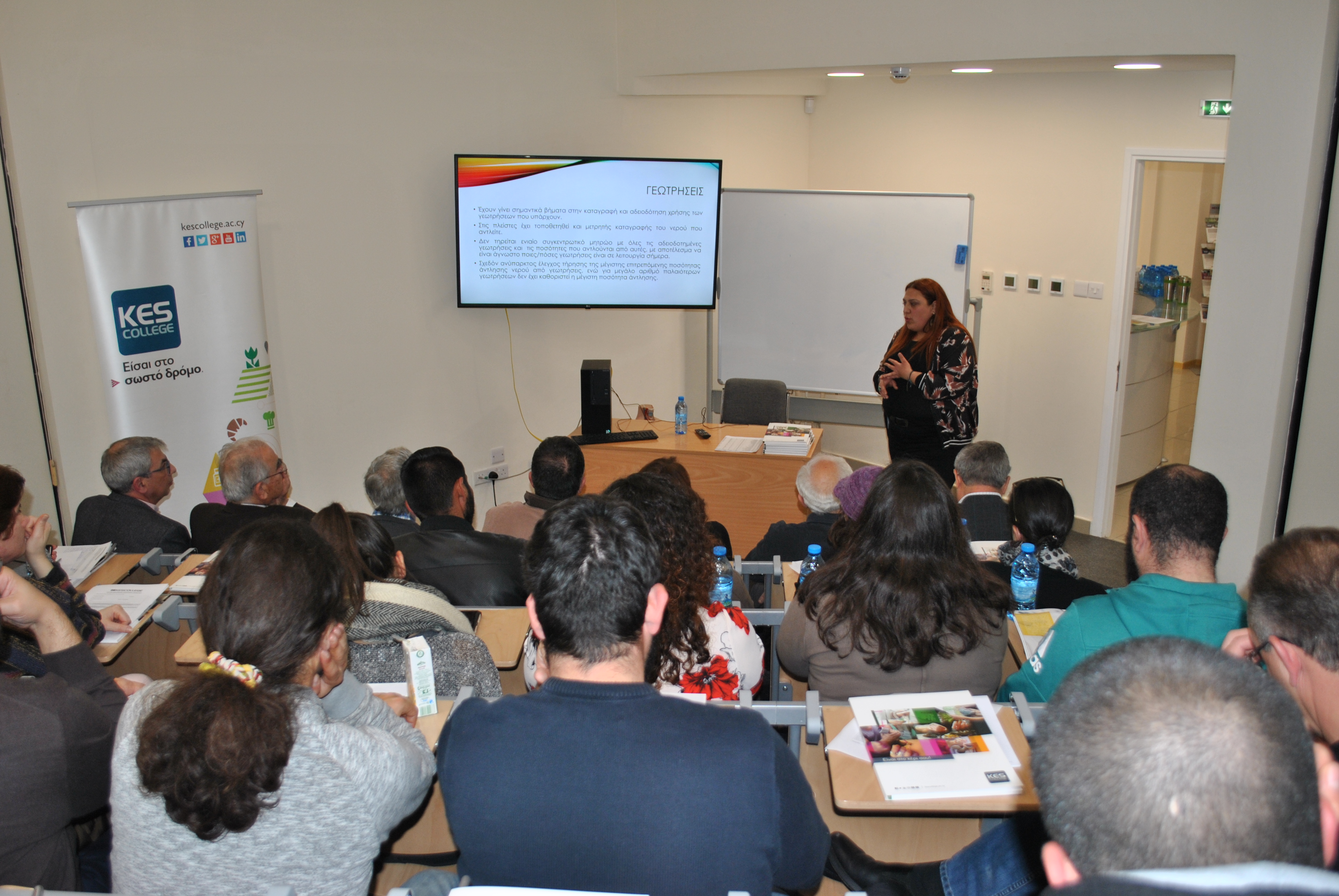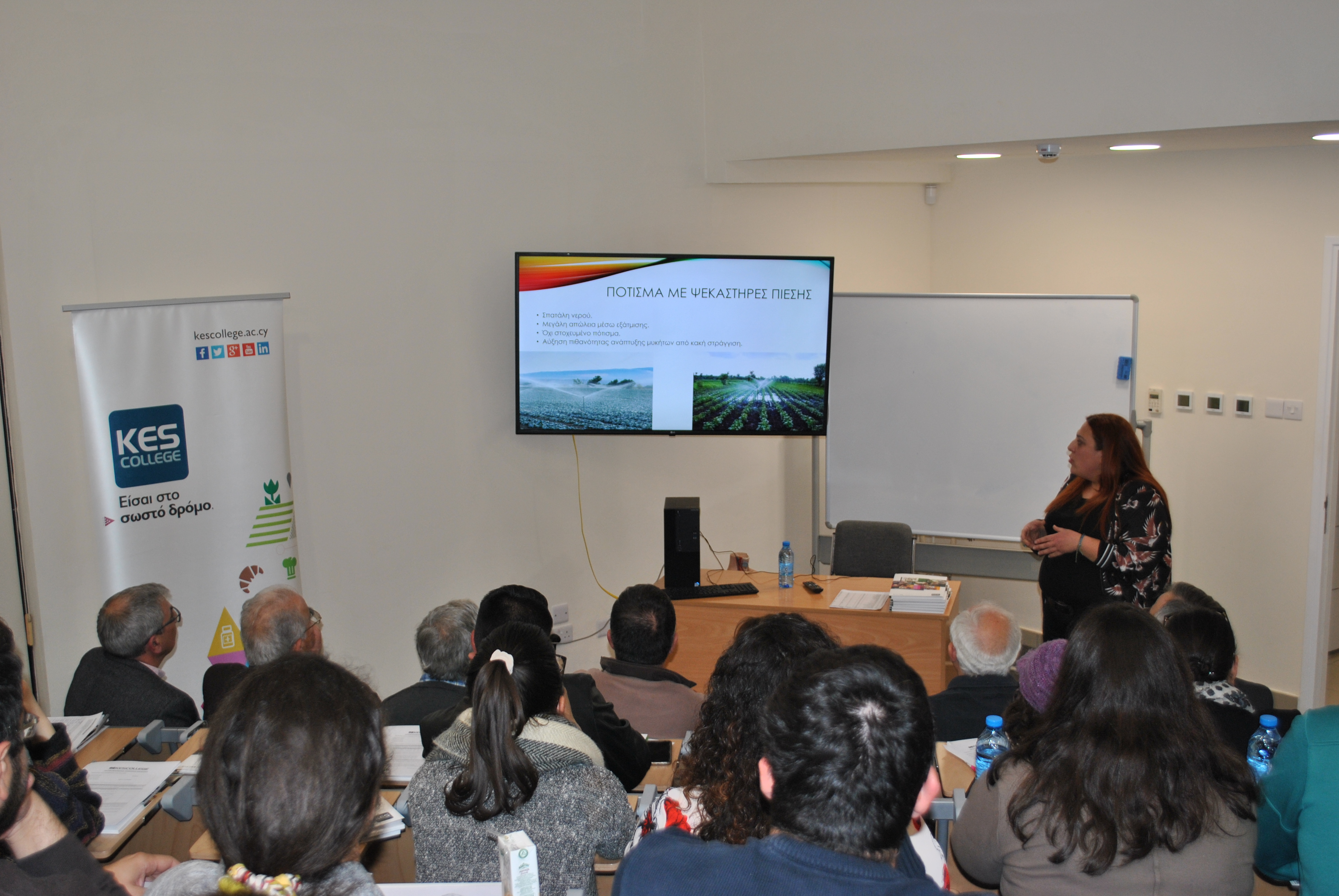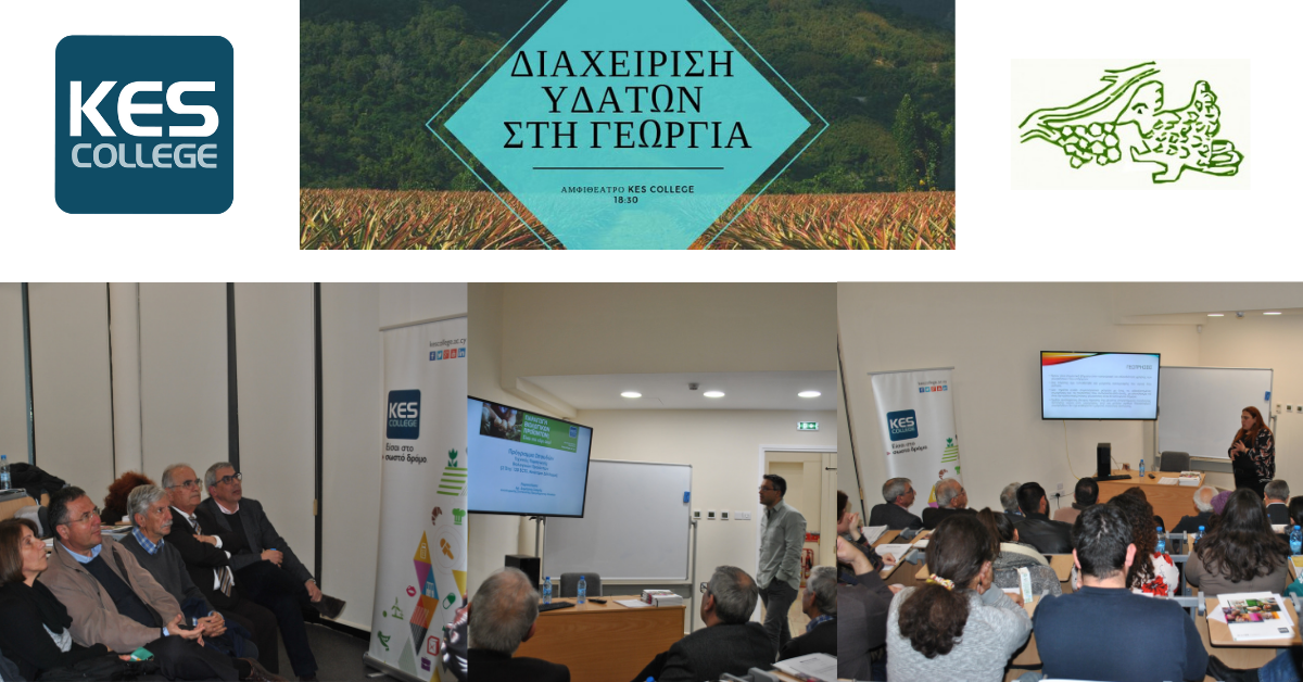 Με ιδιαίτερη επιτυχία πραγματοποιήθηκε την Πέμπτη 7 Φεβρουαρίου 2019 στο νέο αμφιθέατρο του KES College, η διάλεξη με θέμα τη “Διαχείριση Υδάτων στη Γεωργία”, που συνδιοργάνωσε το ΚES College στο πλαίσιο του Αξιολογημένου-Πιστοποιημένου Προγράμματος Σπουδών “Τεχνικός Παραγωγής Βιολογικών Προϊόντων” μαζί με την Οικολογική Κίνηση Κύπρου, έχοντας την υποστήριξη μεταξύ άλλων και του Οργανισμού Νεολαίας Κύπρου.