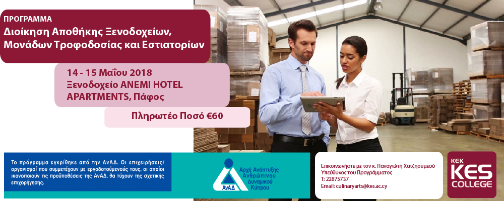 Διοίκηση Αποθήκης Ξενοδοχείων, Μονάδων Τροφοδοσίας και Εστιατορίων14 και 15 Μαΐου 2018 – Πάφος