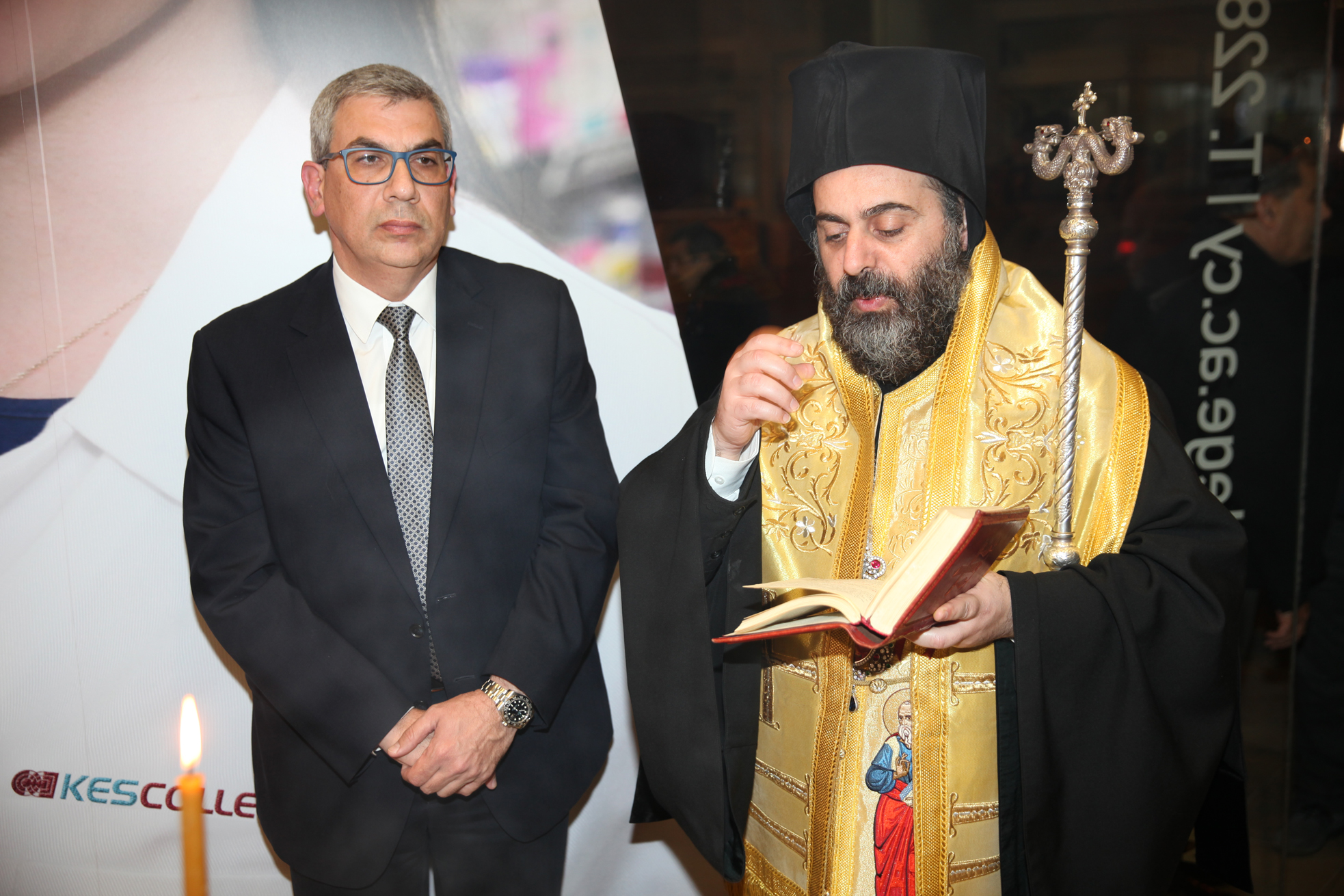 Ο Πανιερώτατος Μητροπολίτης Κυρήνειας κ.κ. Χρυσόστομος στο σύντομο χαιρετισμό του ευχήθηκε σε όλους «καλή και ευλογημένη χρονιά και καλή λειτουργία στο KES College και στην υπηρεσία της οποίας εγκαινιάζει τα νέα γραφεία.»