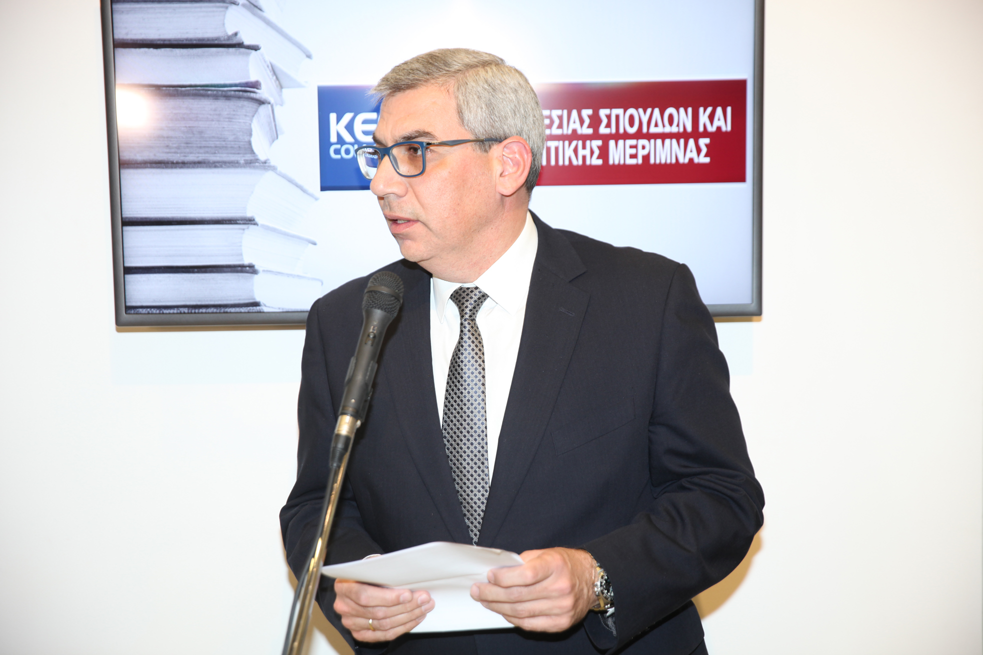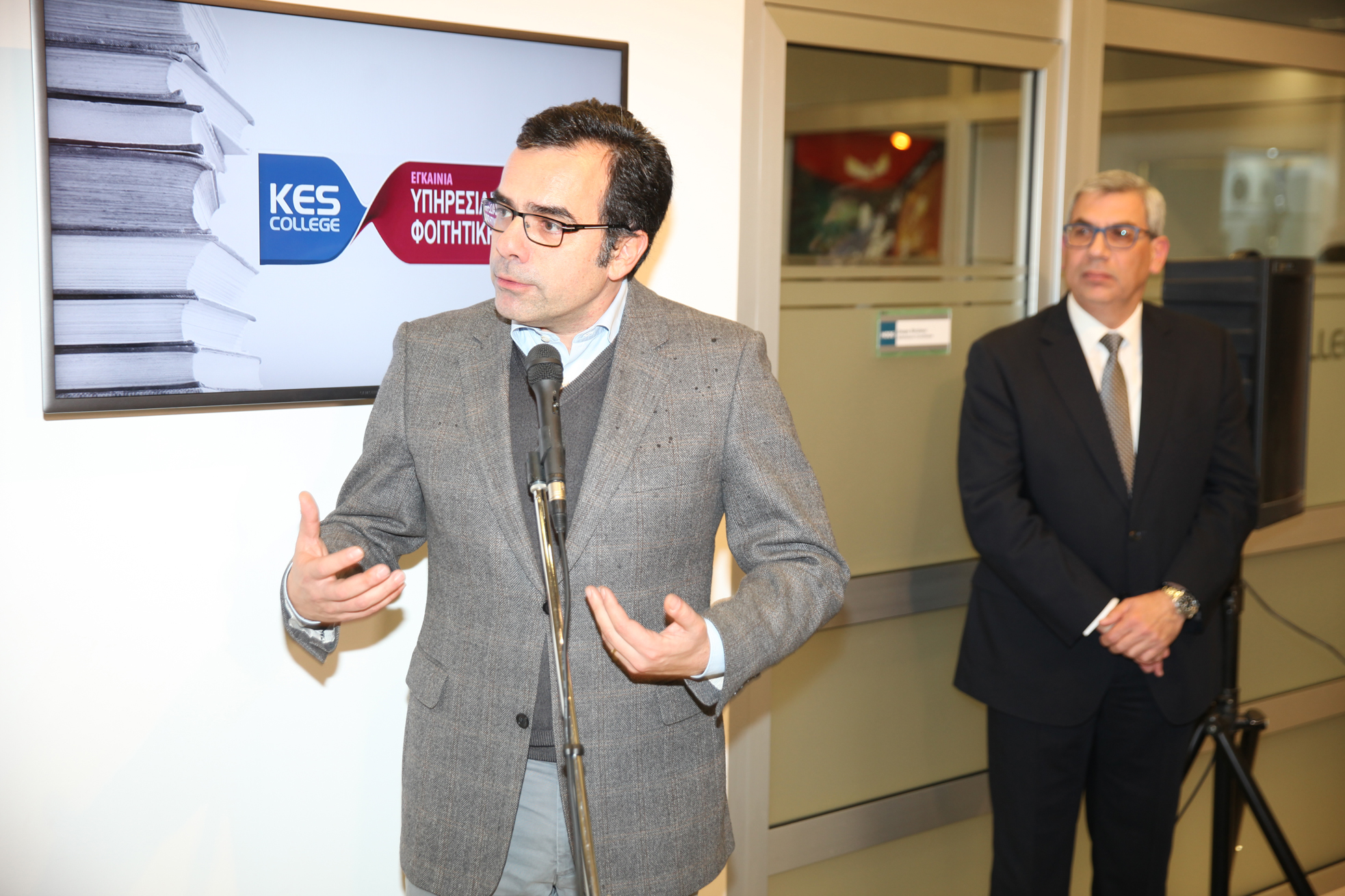 Στη συνέχεια, στο σύντομο χαιρετισμό του ο έντιμος Υπουργός Παιδείας και Πολιτισμού Δρ. Κώστας Καδής ανέφερε ότι: «Το Υπουργείο Παιδείας και Πολιτισμού, και εγώ προσωπικά νιώθουμε ιδιαίτερα ευτυχής κάθε φορά που βλέπουμε ένα ανώτερο εκπαιδευτικό ίδρυμα να βελτιώνει, να αναβαθμίζει τις υποδομές του, να βελτιώνει και να αναβαθμίζει την ποιότητα των παρεχόμενων σπουδών στους φοιτητές μας. Και ότι είναι στρατηγικός στόχος της κυβέρνησης η αναβάθμιση της τριτοβάθμιας εκπαίδευσης στον τόπο μας και η ποιότητα σπουδών δεν αναβαθμίζετε μόνο μέσα από σωστά και ποιοτικά προγράμματα σπουδών ή υψηλού επιπέδου ακαδημαϊκό προσωπικού. Η ποιότητα των παρεχόμενων σπουδών συνάδει και με τις υποδομές και με την στήριξη που έχουν οι φοιτητές μας τόσο κατά την είσοδό τους σε ένα εκπαιδευτικό ίδρυμα και κατά τη διάρκεια της φοίτησής τους αλλά ακόμα και με την ολοκλήρωση των σπουδών τους και μετά από αυτές. Είναι για αυτό το λόγο που θεωρούμε πολύ σημαντική τη δημιουργία της συγκεκριμένης υποδομής που εγκαινιάζουμε σήμερα και θα ήθελα να συγχαρώ θερμά τη Διεύθυνση και το προσωπικό του KES College τόσο για τη δημιουργία αυτής της υποδομής όσο και για την αποδεδειγμένη και συνεχή τους προσπάθεια για συνεχή αναβάθμιση των προσφερόμενων σπουδών αλλά και τη στήριξη που παρέχουν στους φοιτητές μας και εύχομαι από καρδιάς αυτό το πλάνο που παρουσιάστηκε πριν από λίγο από τον Αναπληρωτή Διευθυντή να ευοδωθεί, να πραγματοποιηθεί. Εμείς να ξέρετε ότι ως Υπουργείο Παιδείας και Πολιτισμού στηρίζουμε κάθε προσπάθεια για ποιοτική αναβάθμιση των σχολών Τριτοβάθμιας Εκπαίδευσης του τόπου μας. Να είστε καλά, καλή χρονιά, κάθε καλό.»