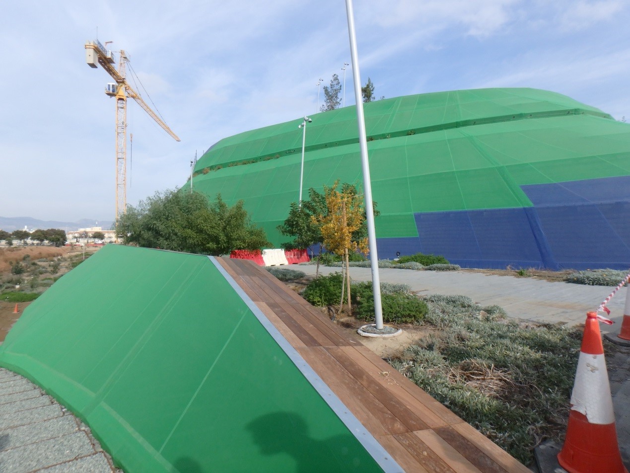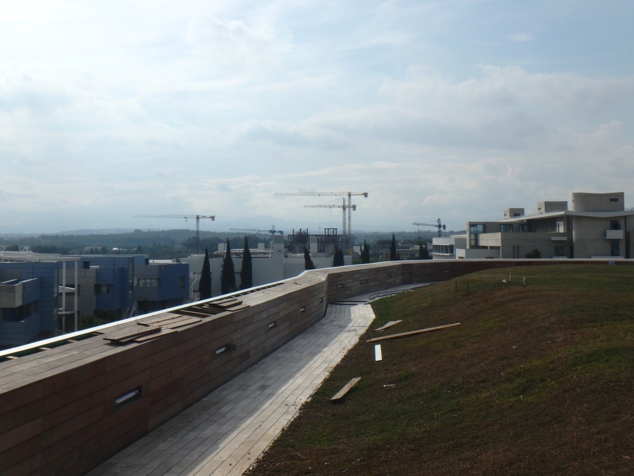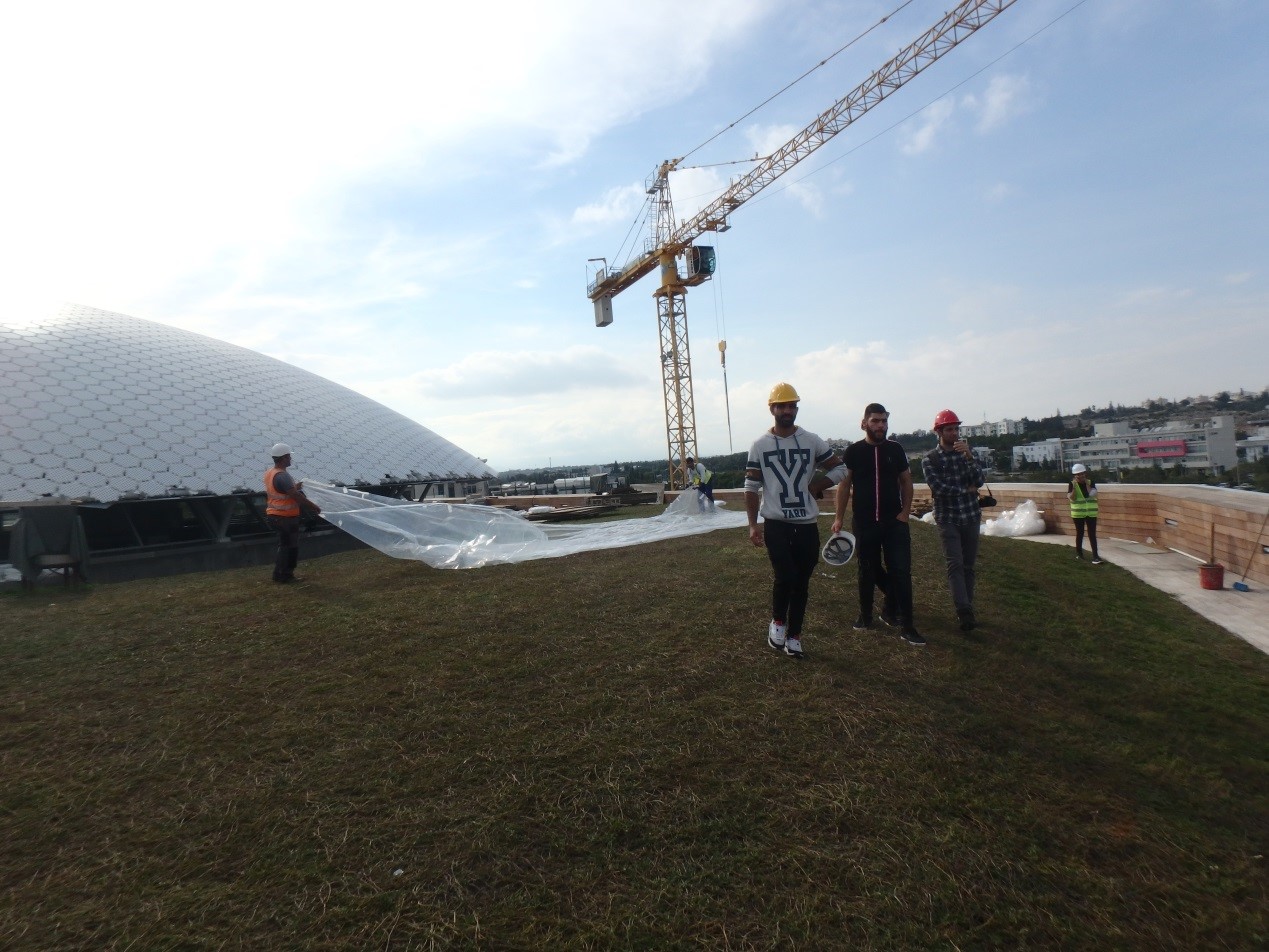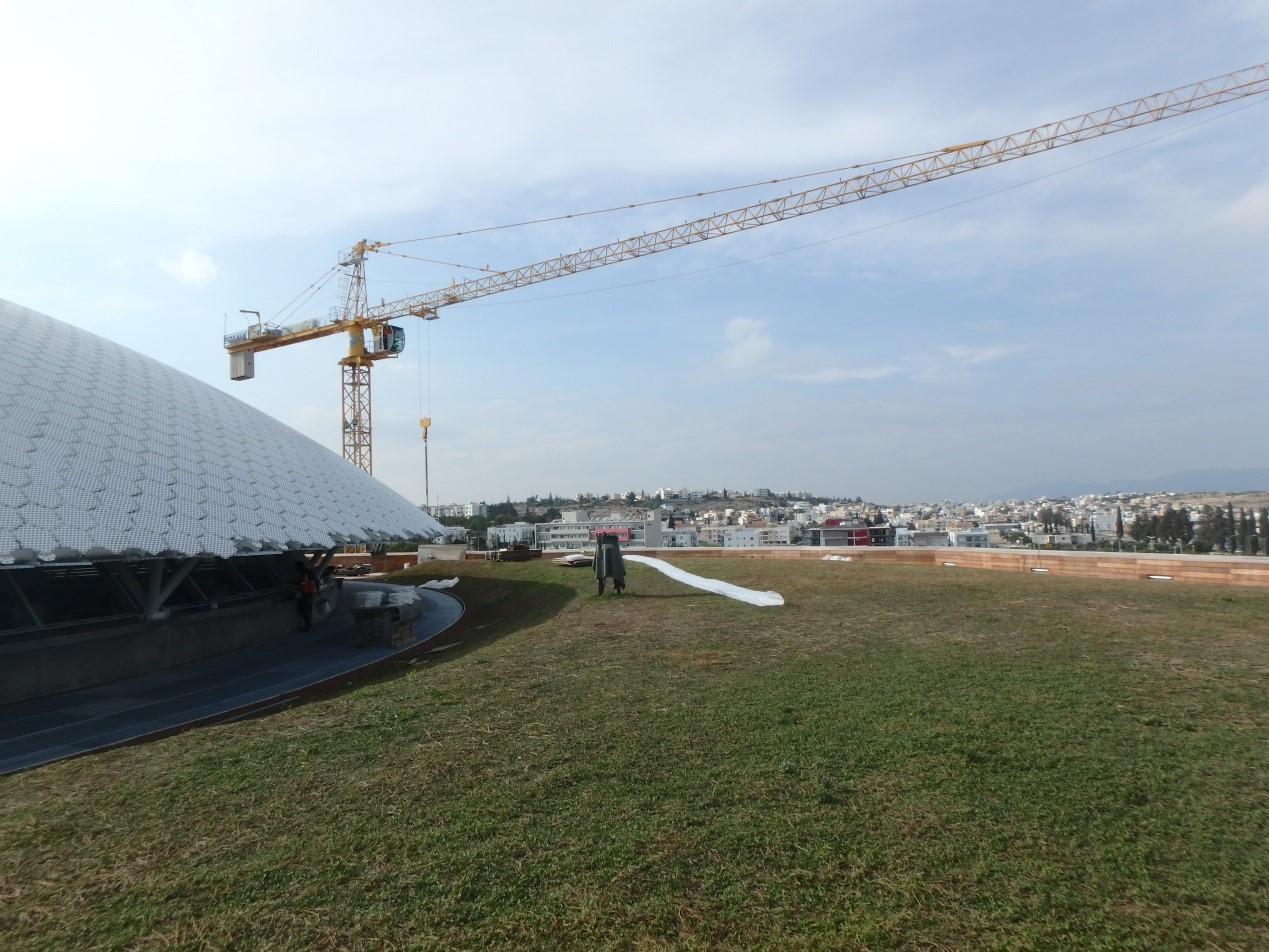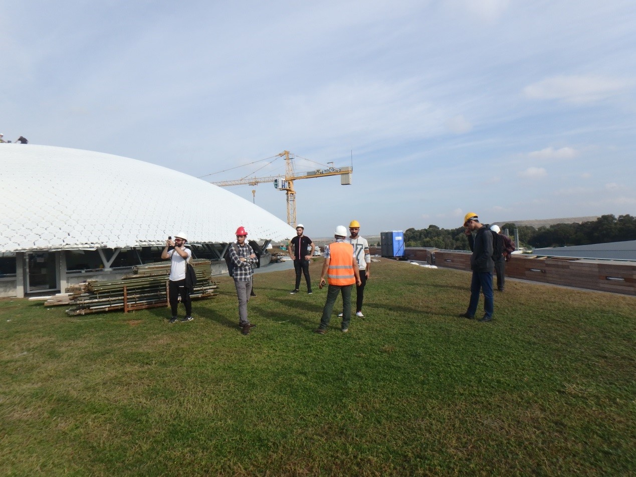Εξίσου εντυπωσιακός είναι και ο περιβάλλοντας εξωτερικός χώρος με τους υπό διαμόρφωση κήπους και το roof garden του κτηρίου και για αυτό το λόγο, είχε επιλεγεί κυρίως η εκπαιδευτική αυτή επίσκεψη των φοιτητών.