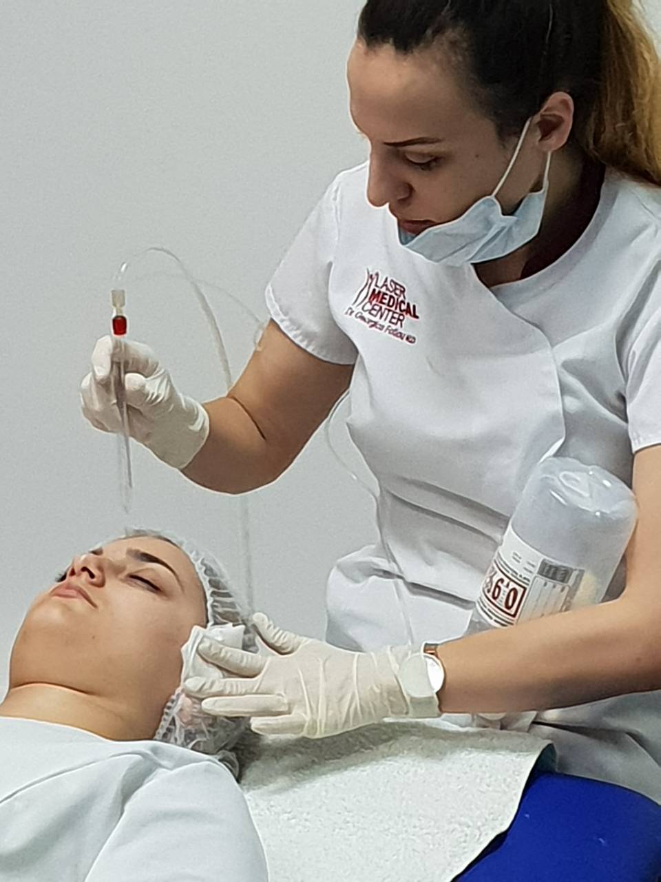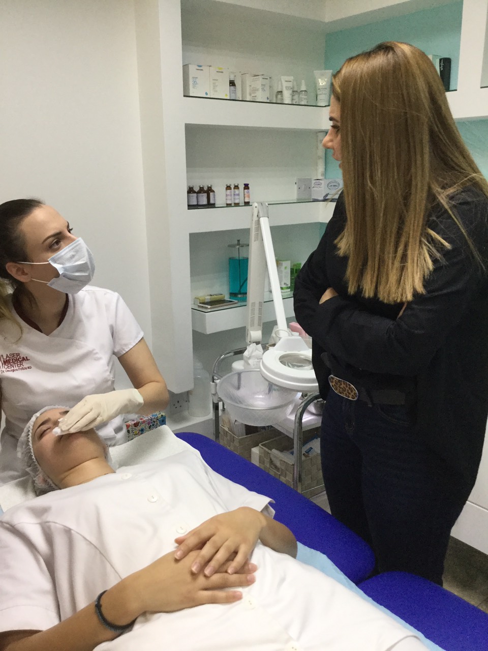 Η επίσκεψη έγινε στο πλαίσιο του μαθήματος “Βασικές Αρχές Laser/IPL” και οι φοιτήτριες παρακολούθησαν την εφαρμογή του εξειδικευμένου μηχανήματος Jet Peel, η οποία είναι μια μη επεμβατική θεραπεία που σκοπό έχει τη βαθιά απολέπιση του δέρματος. Με το συγκεκριμένο μηχάνημα, γίνεται βαθύς καθαρισμός του προσώπου με δερμοαπόξεση αλλά ταυτόχρονα και θεραπεία αντιγήρανσης, λεύκανσης, θεραπεία κατά της ακμής και οξυγονοθεραπεία. Αυτό επιτυγχάνεται με τη διείσδυση προϊόντων ανάλογων με τις ανάγκες κάθε δέρματος και η θεραπεία μπορεί να εφαρμοστεί σε όλους τους τύπους δέρματος.
