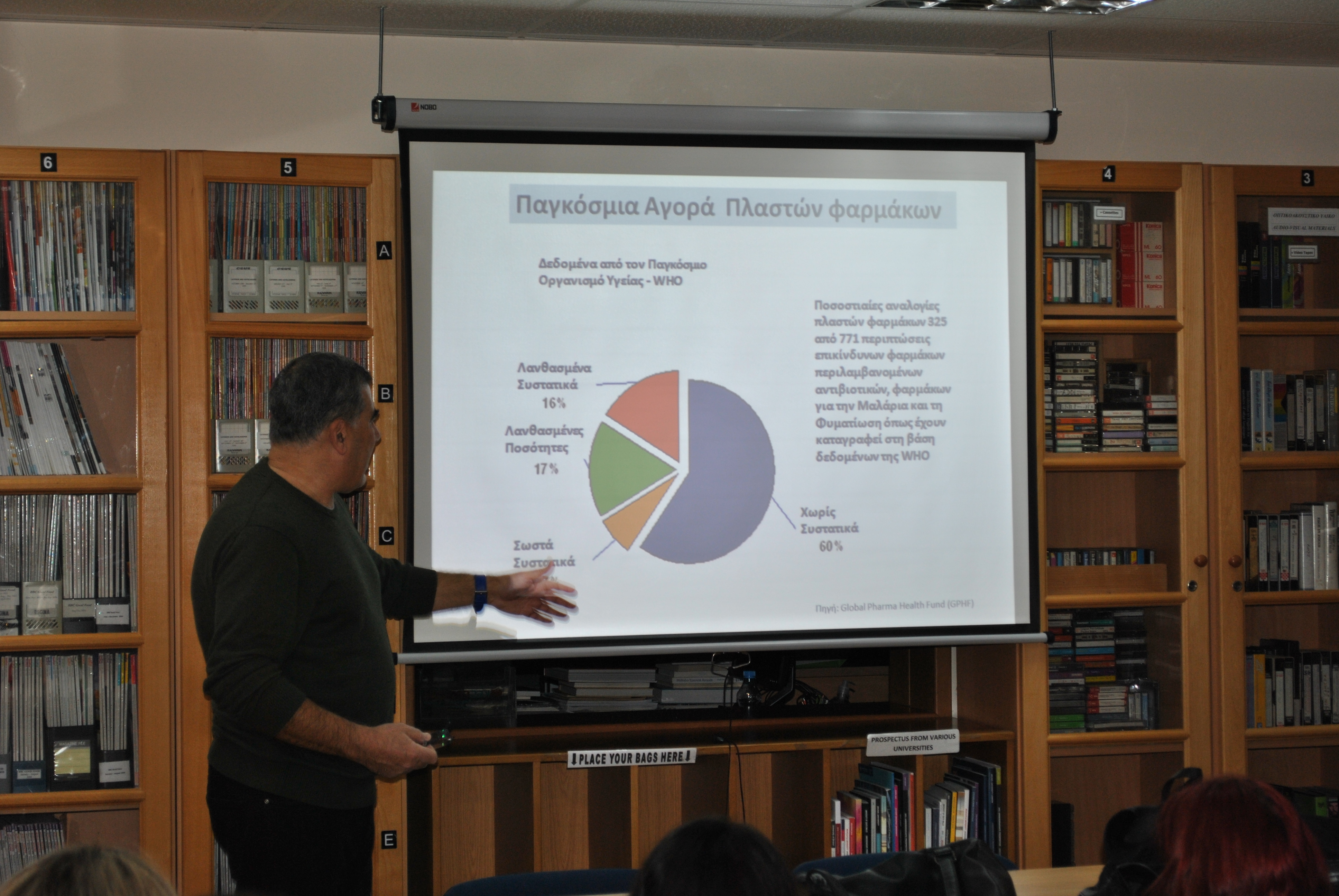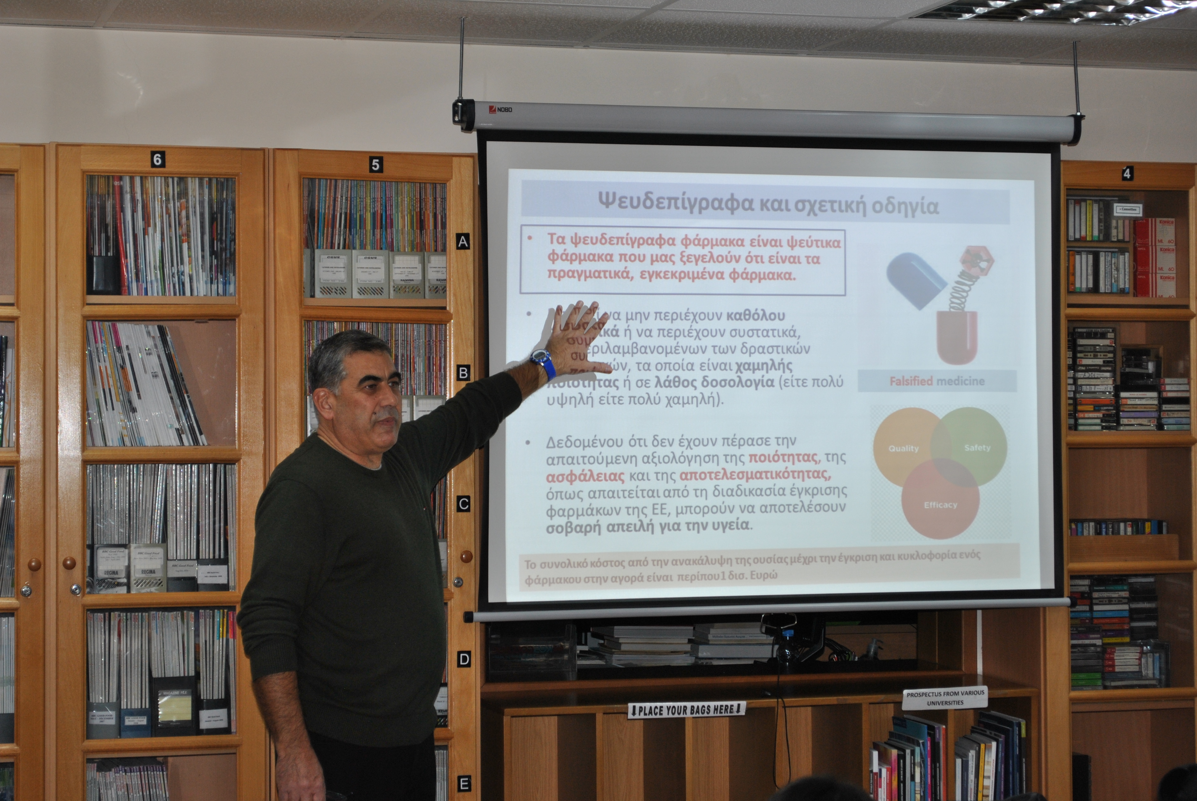 Ομιλητής του σεμιναρίου ήταν ο Διευθυντής του ΚΟΕΦ (Κυπριακού Οργανισμού Επαλήθευσης Φαρμάκων), κ. Αρτούρος Ισσέγιεκ, ο οποίος παρουσίασε τις μεγάλες διαστάσεις που λαμβάνει το θέμα της αγοράς των φαρμάκων από μη ελεγχόμενες πηγές από την Κυπριακή Δημοκρατία, όπως είναι το διαδίκτυο και οι κατεχόμενες περιοχές της Κύπρου από τους Τούρκους. Επίσης έγινε ανάλυση του τρόπου αντιμετώπισης του θέματος από την Ευρωπαϊκή Ένωση καθώς και το σημαντικό ρόλο που αναμένεται να αναλάβει ο ΚΟΕΦ.
