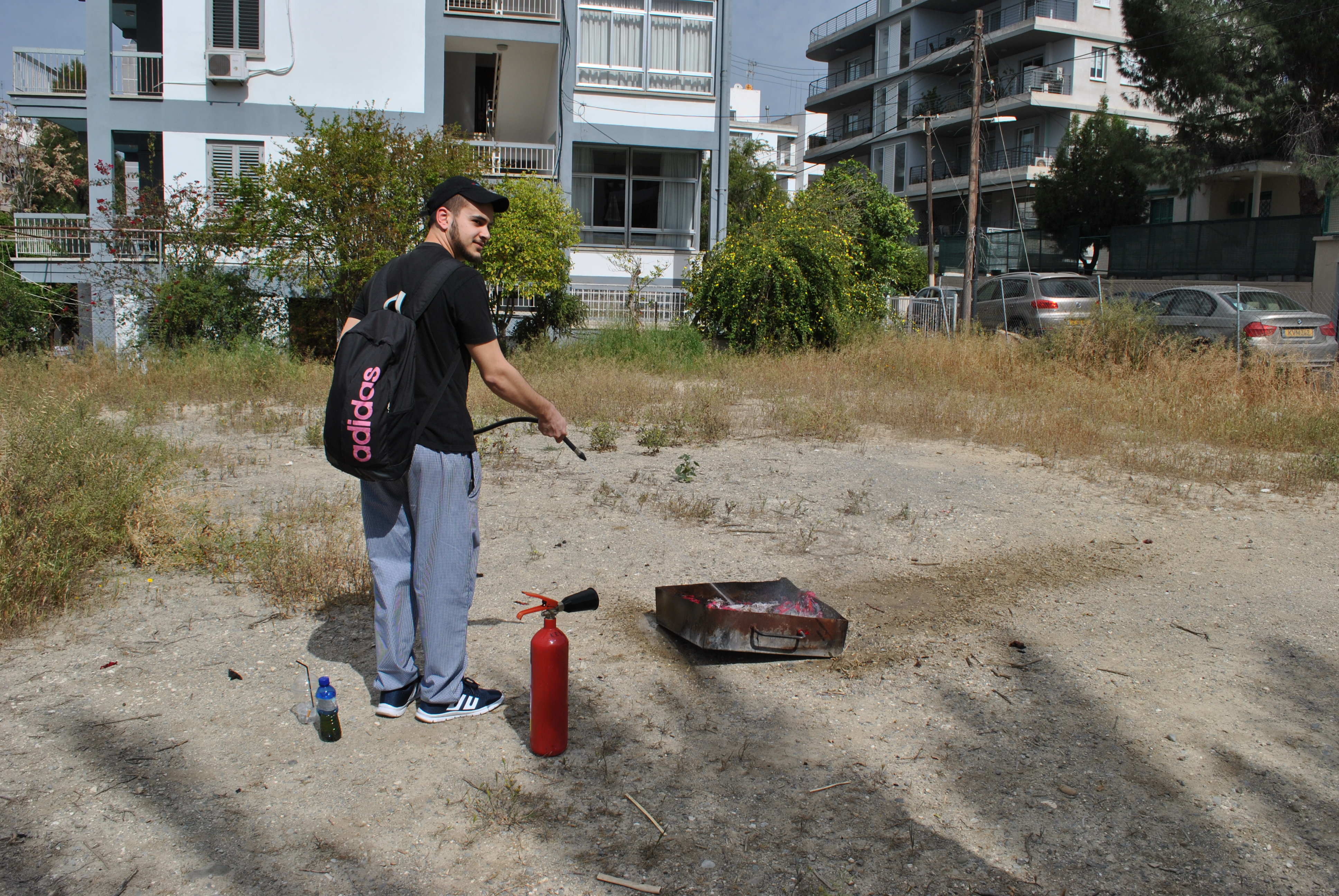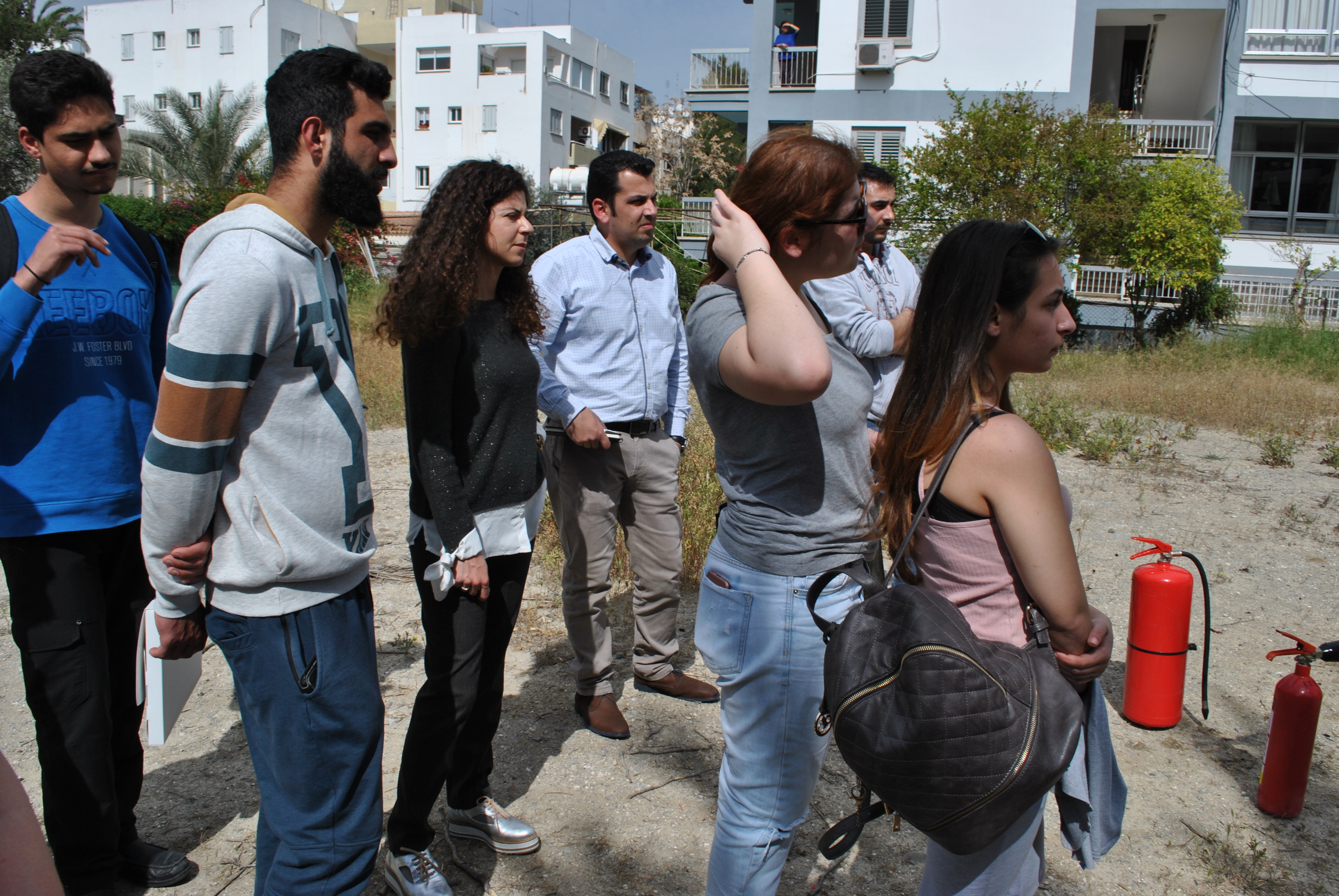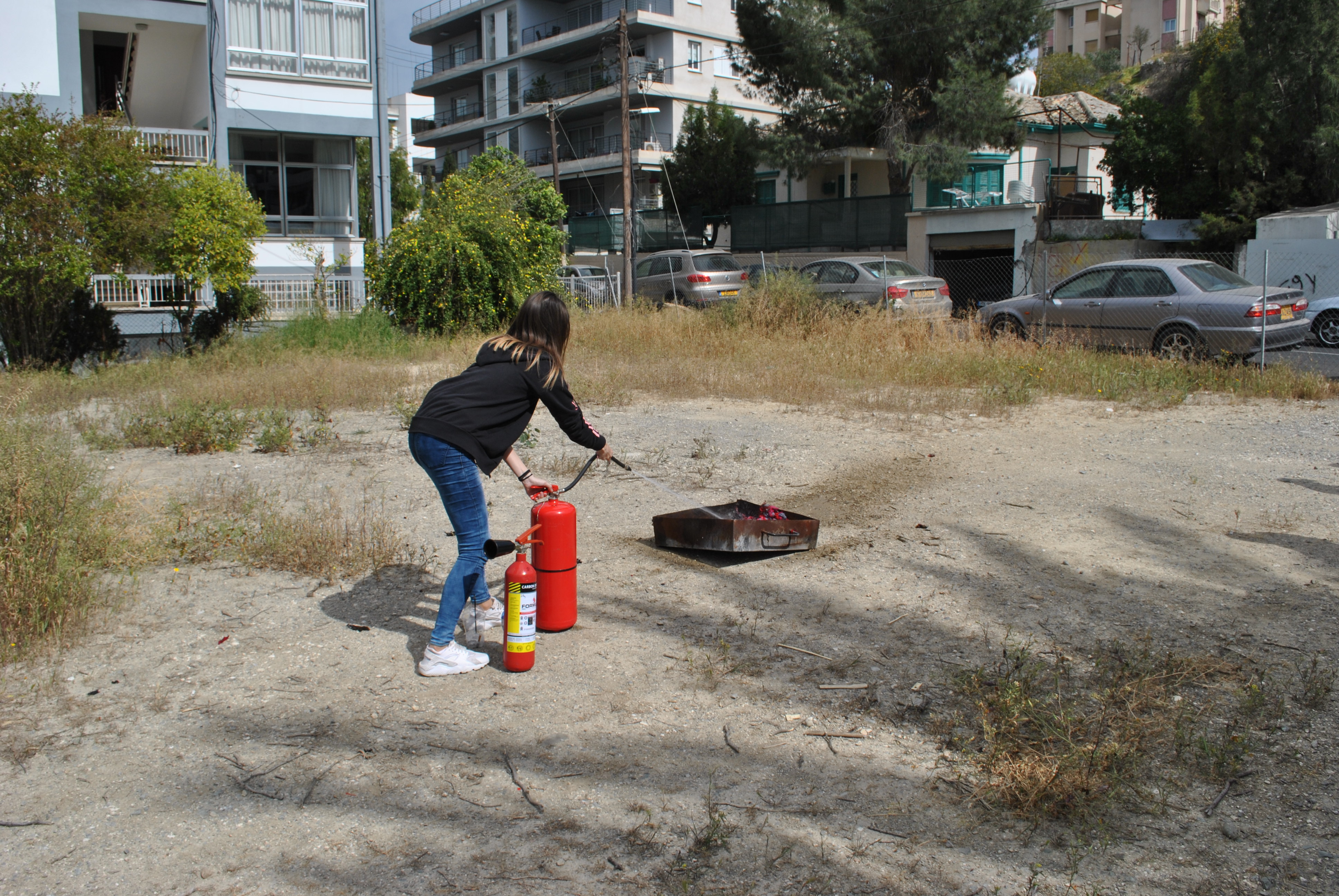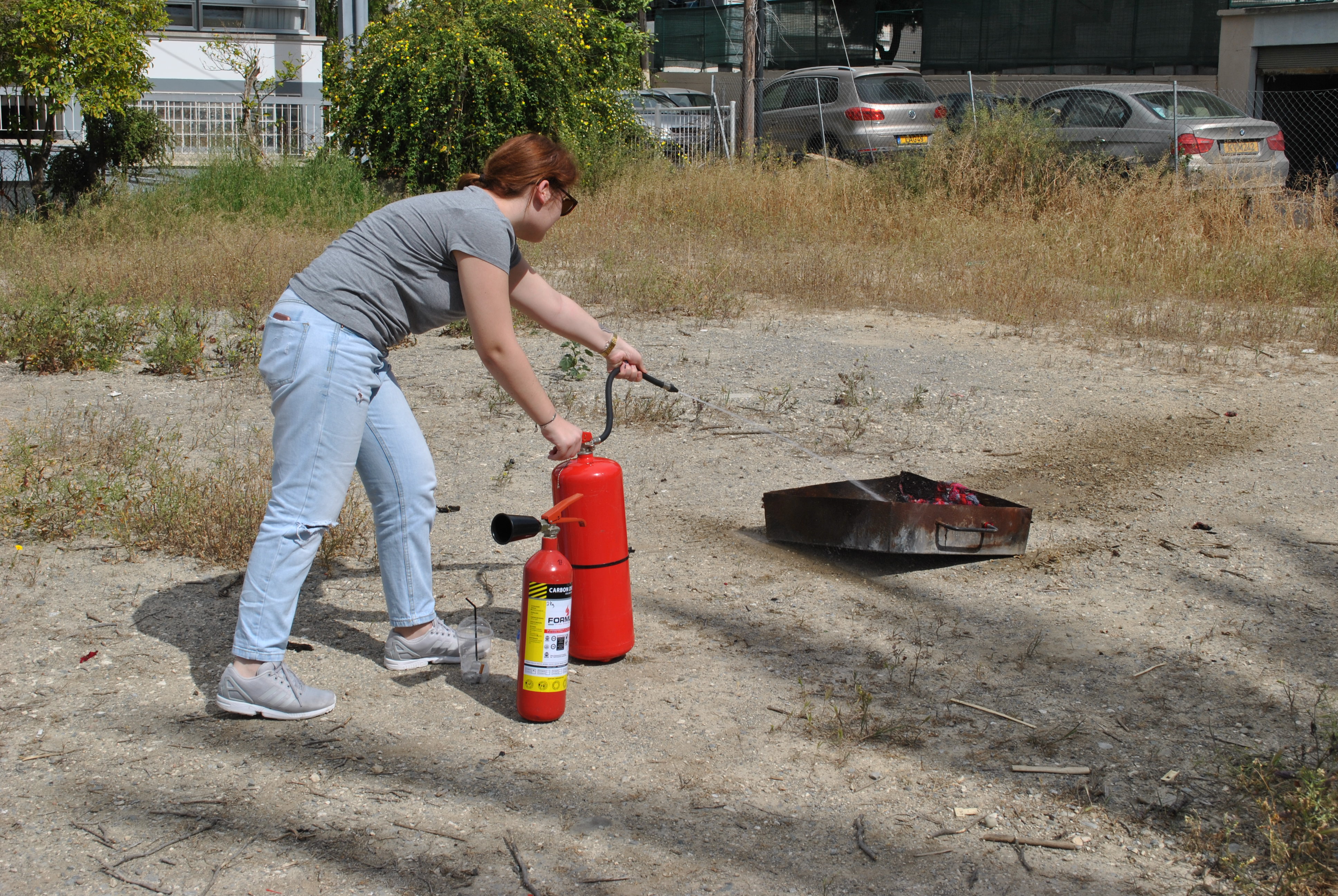 Πέραν της θεωρίας, ακολούθησε πρακτική άσκηση όπου ο κ. Τύλληρος παρουσίασε στους φοιτητές τη χρήση και τα είδη (διοξειδίου του άνθρακα και νερού ) των πυροσβεστήρων στην πράξη και σε ποια απόσταση πρέπει να βρίσκονται από τη φωτιά για να την κατασβήσουν αποτελεσματικά.