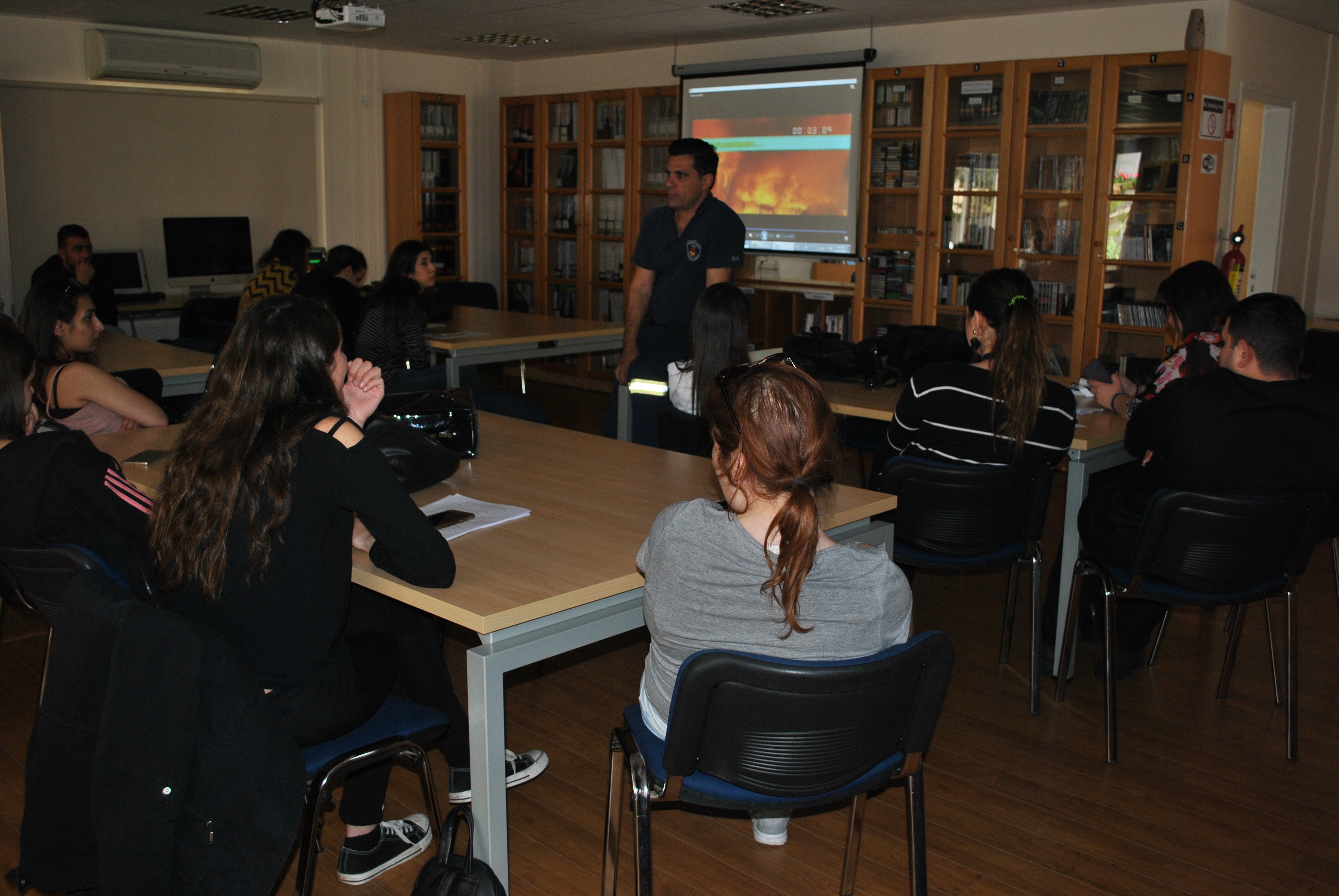 Ο κ. Τύλληρος επεξήγησε τον τρόπο εκκίνησης και εξάπλωσης μιας πυρκαγιάς στο χώρο εργασίας, διασκέδασης ή ακόμα στο ίδιο μας το σπίτι και έδωσε συμβουλές και οδηγίες για το πώς πρέπει να αντιμετωπίζονται τέτοιες καταστάσεις ώστε να υπάρχουν όσο το δυνατό λιγότερες απώλειες. Προς τούτο, προβλήθηκαν βίντεο με παραδείγματα τα οποία απέδειξαν με πολύ σαφή, πειστικό και εντυπωσιακό τρόπο τα λεγόμενά του.