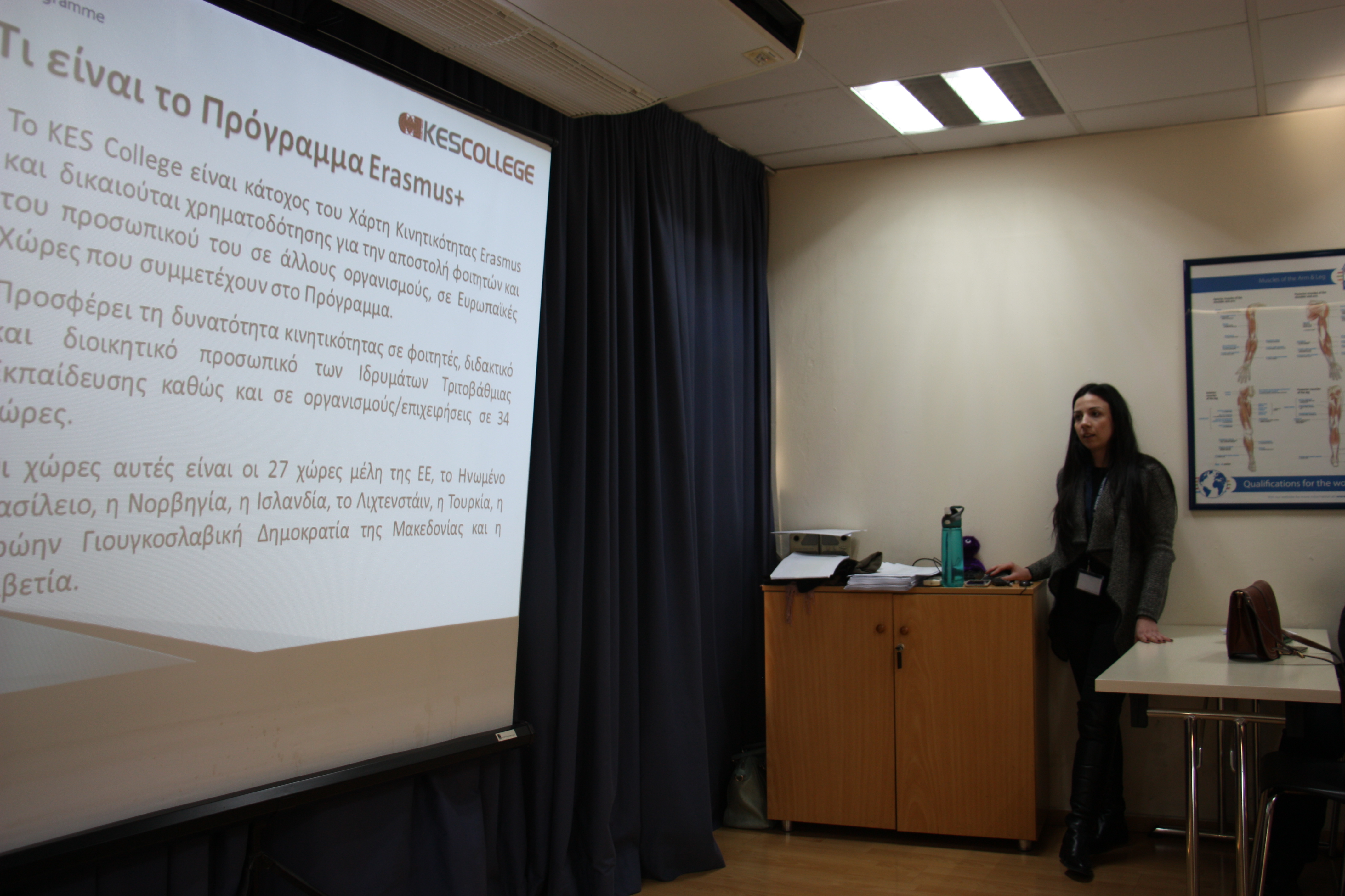 Την Παρασκευή 3 Φεβρουαρίου 2017, μέσα στα πλαίσια της προετοιμασίας του KES College για το Εαρινό εξάμηνο της ακαδημαϊκής χρονιάς 2016 – 2017, πραγματοποιήθηκε στις εγκαταστάσεις του κολλεγίου στη Λευκωσία, ενδοϋπηρεσιακή επιμόρφωση όλου του Ακαδημαϊκού Προσωπικού του κολλεγίου. Η επιμόρφωση ήταν μονοήμερη και συμμετείχε όλο το Ακαδημαϊκό Προσωπικό που θα διδάξει κατά το εαρινό εξάμηνο 2017.