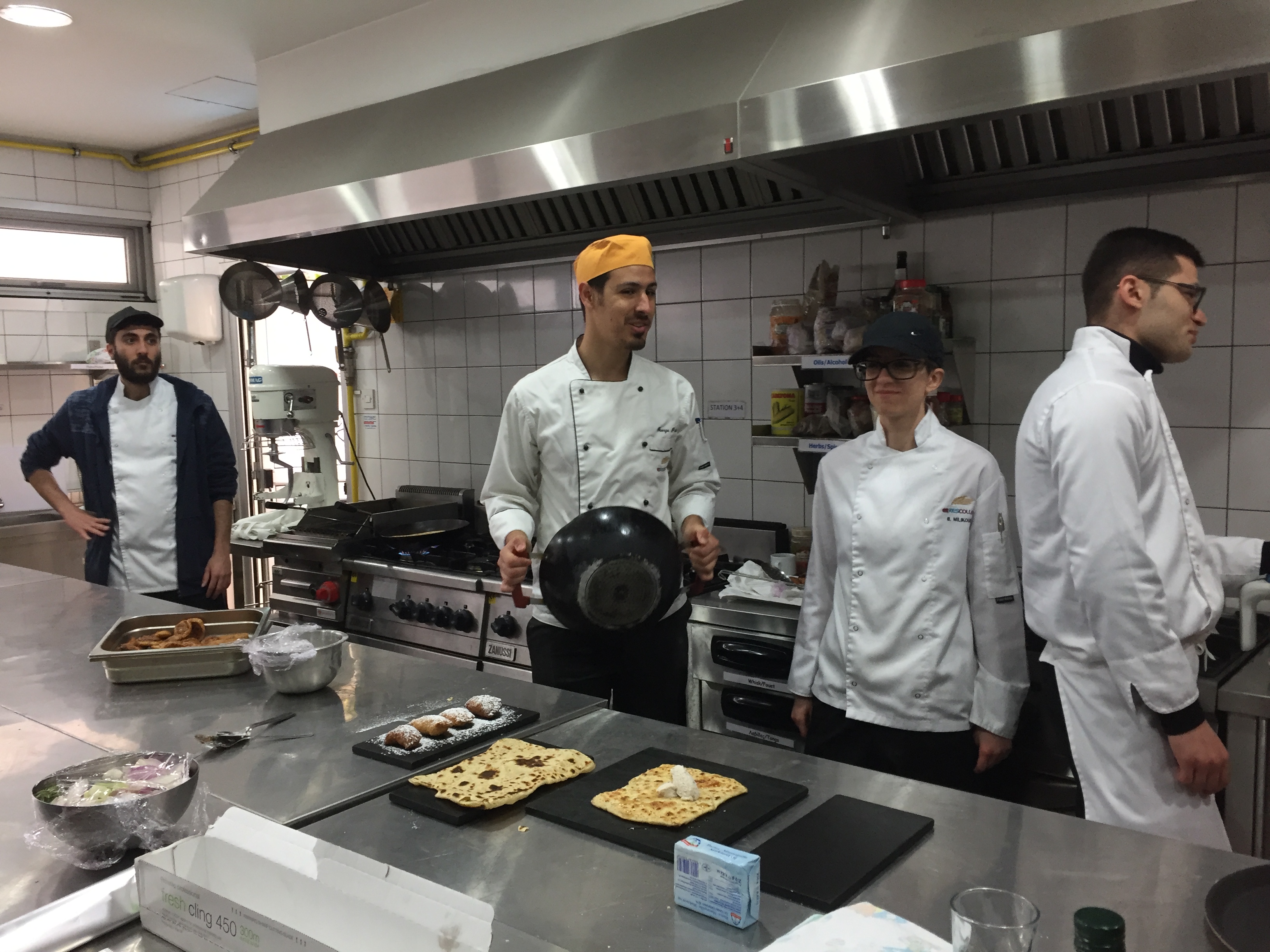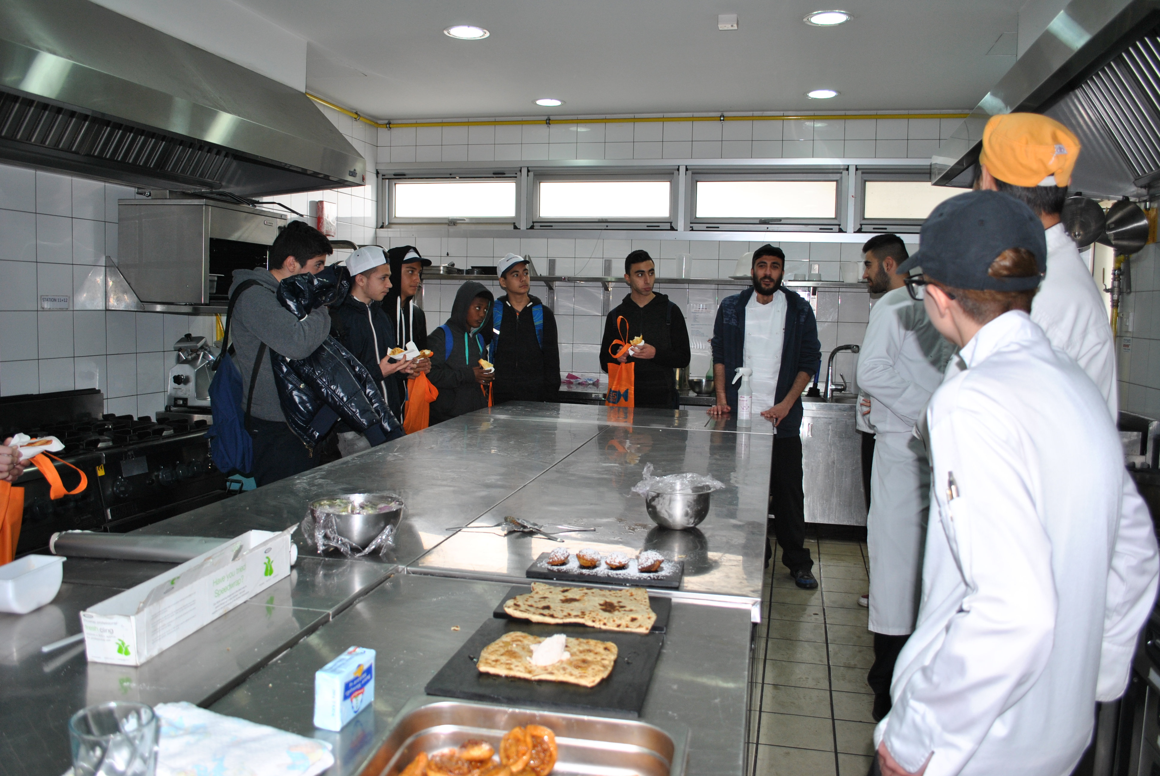 Οι μαθητές ξεναγήθηκαν αρχικά στη βιβλιοθήκη του KES College όπου ενημερώθηκαν αναλυτικά για τα Προγράμματα Σπουδών αλλά και για τις παροχές του κολλεγίου, τις δραστηριότητες και τους διαγωνισμούς στους οποίους συμμετέχουν οι φοιτητές ανάλογα με την κατεύθυνση που ακολουθούν και τις δυνατότητες για περαιτέρω εκπαίδευση. Στη συνέχεια επισκέφτηκαν το εργαστήριo αρτοποιίας όπου ο καθηγητής τα υποδέχτηκε με αλμυρές δημιουργίες των 3ετών φοιτητών που μόλις είχαν παρασκευαστεί. Στο εργαστήριo Ζαχαροπλαστικής συνάντησαν πολλούς φοιτητές, οι οποίοι τους εξήγησαν γιατί επέλεξαν το συγκεκριμένο Πρόγραμμα Σπουδών, τι απαιτήσεις έχει και πόσο αγαπούν τη Ζαχαροπλαστική Τέχνη. Γλύκαναν φυσικά τους μαθητές με γλυκά που μόλις είχαν δημιουργήσει στα πλαίσια του μαθήματός τους.