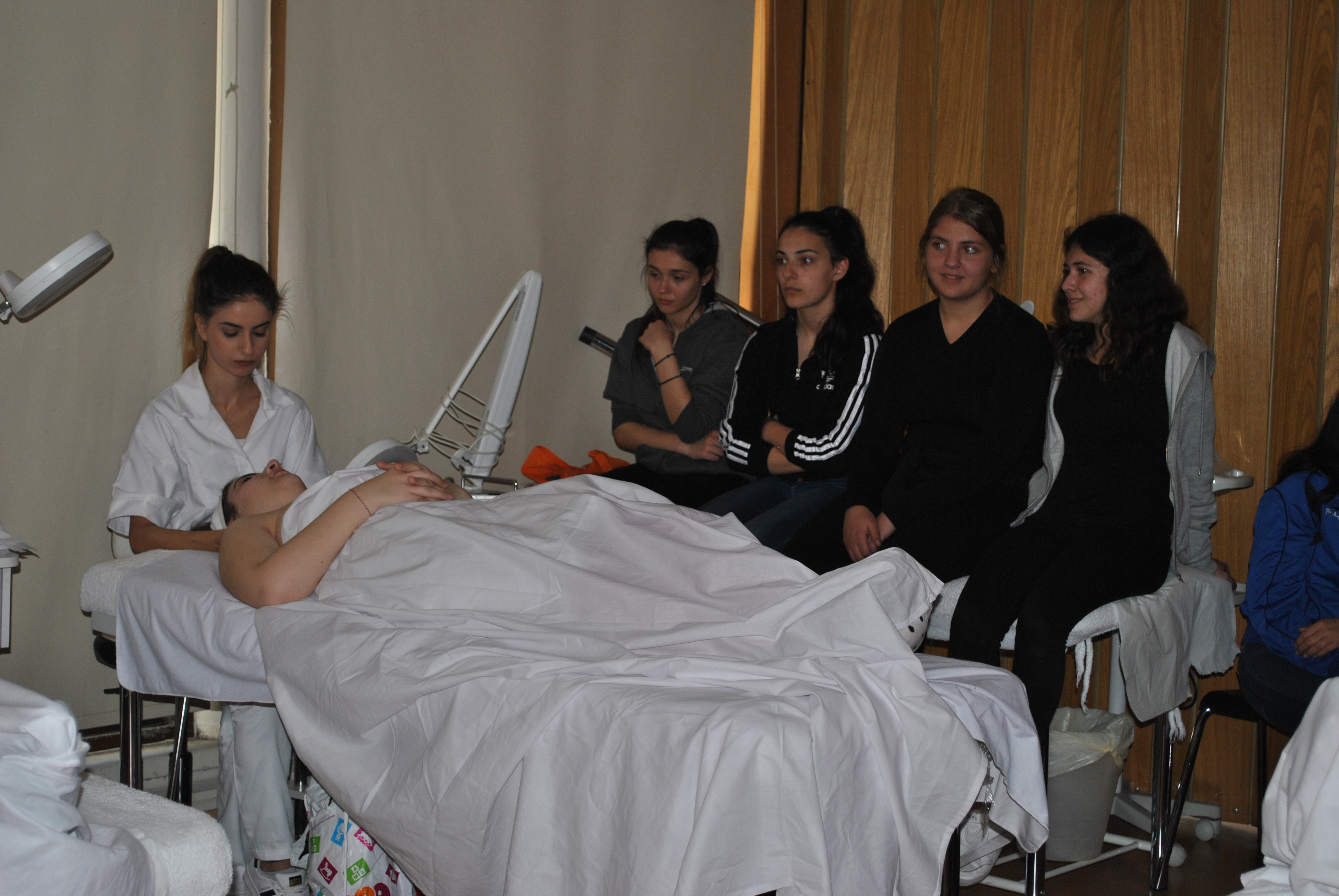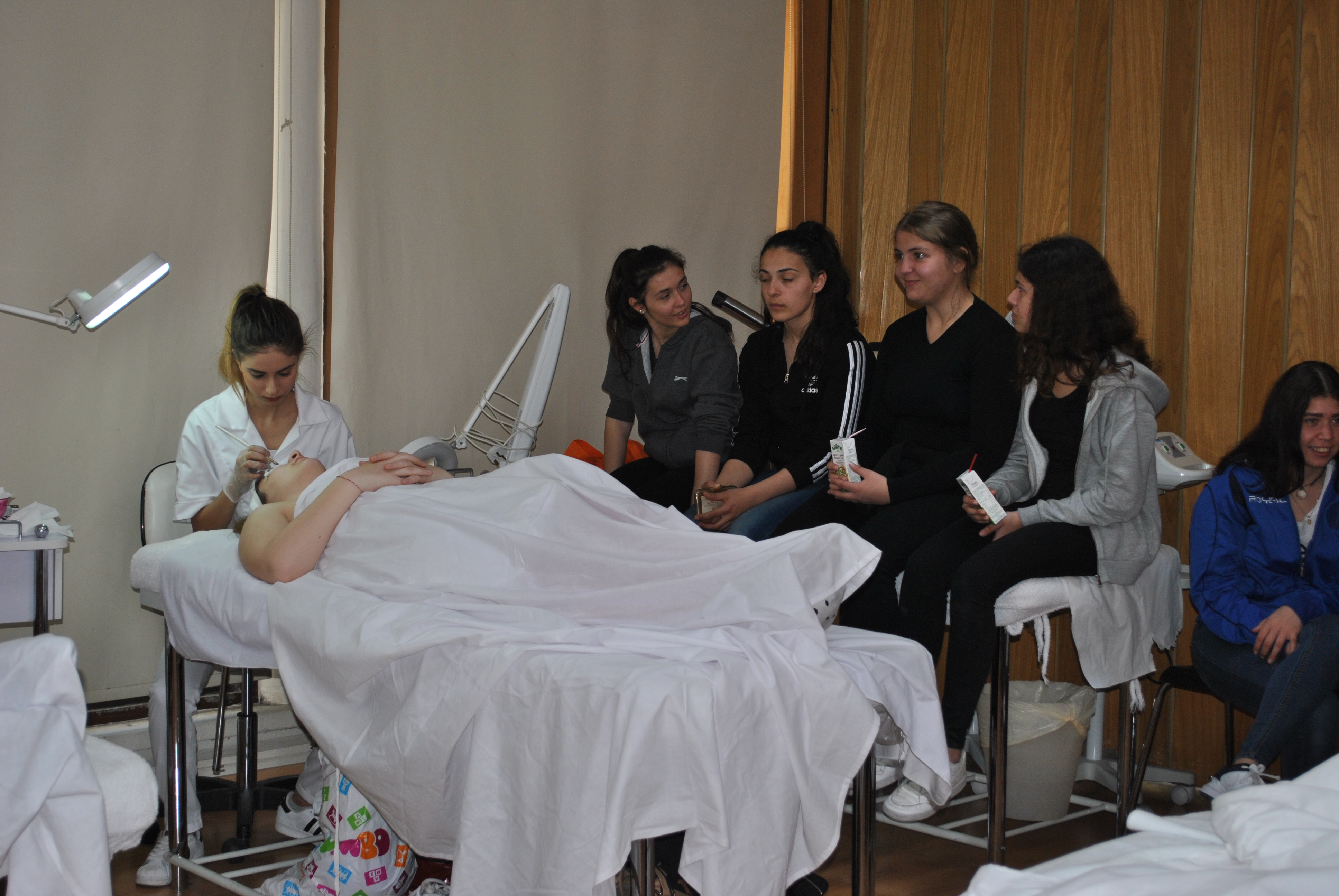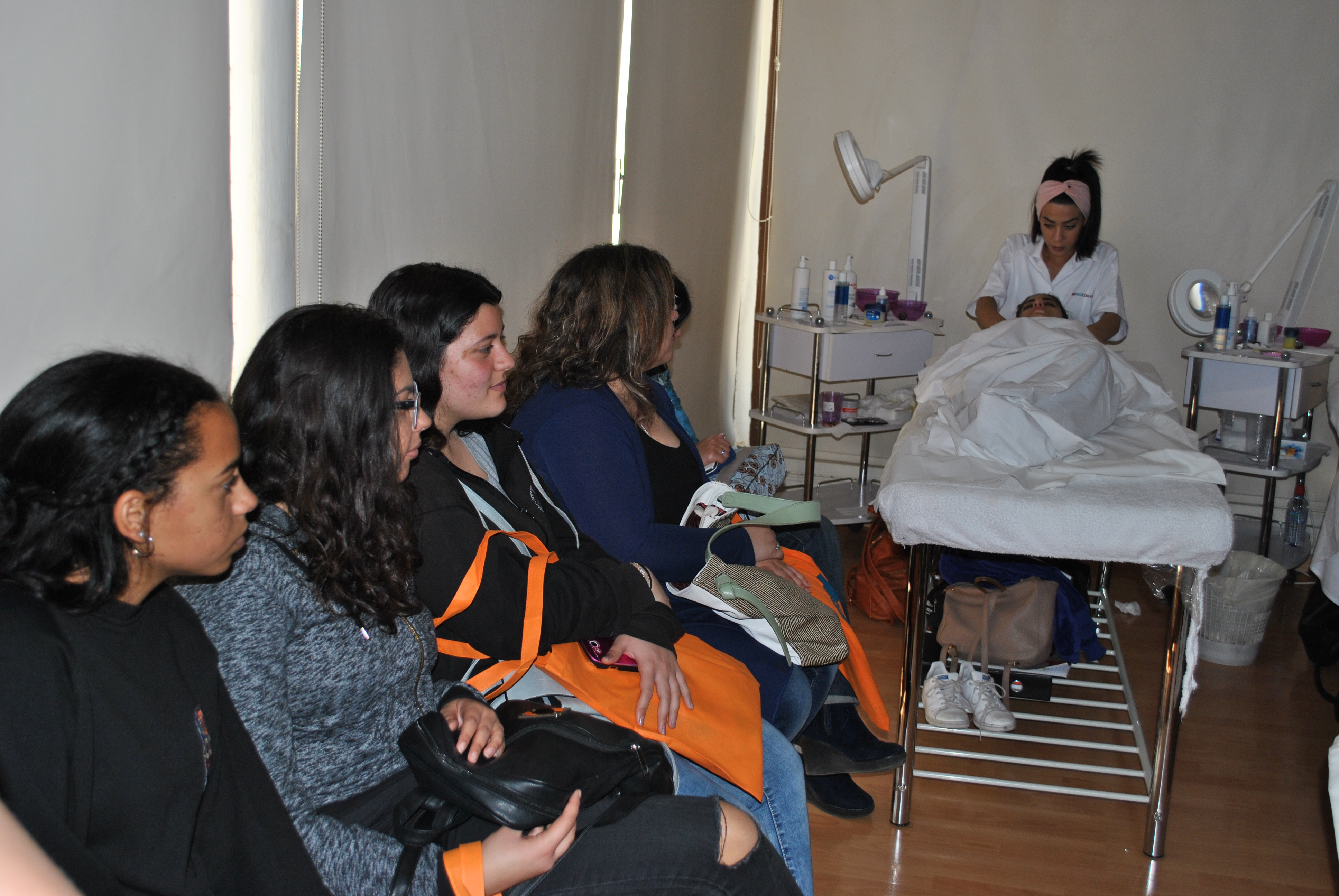 Κατόπιν επισκέφτηκαν το εργαστήριo αισθητικής, όπου η καθηγήτρια και υπεύθυνη του Δευτεροετούς Προγράμματος Αισθητικής κα Άντρη Σιδέρη Γιαλλουράκη μαζί με τις φοιτήτριες της, παρουσίασαν τον τρόπο διδασκαλίας και πρακτικής ώστε οι μαθήτριες Λυκείου να κατανοήσουν ακόμα καλύτερα τι σημαίνει Αισθητική και να δουν στην πράξη αν τους ενδιαφέρει αυτό το Πρόγραμμα Σπουδών.