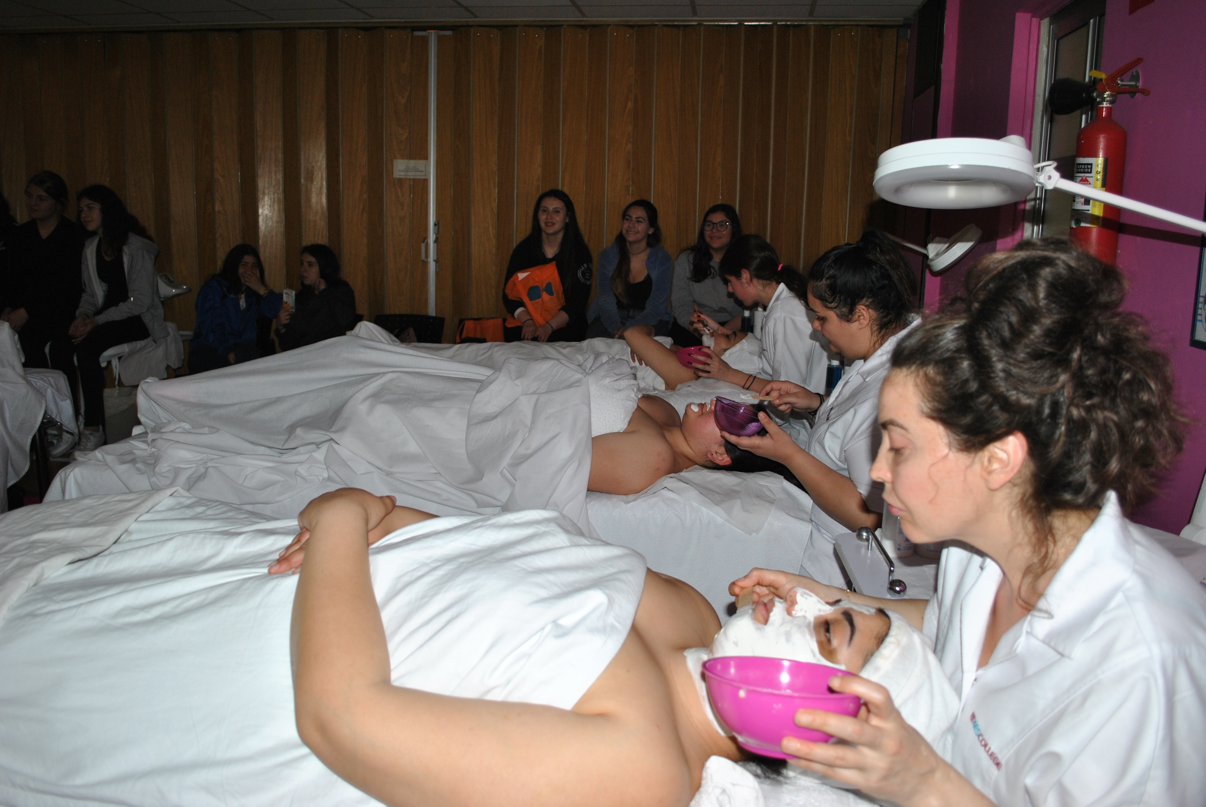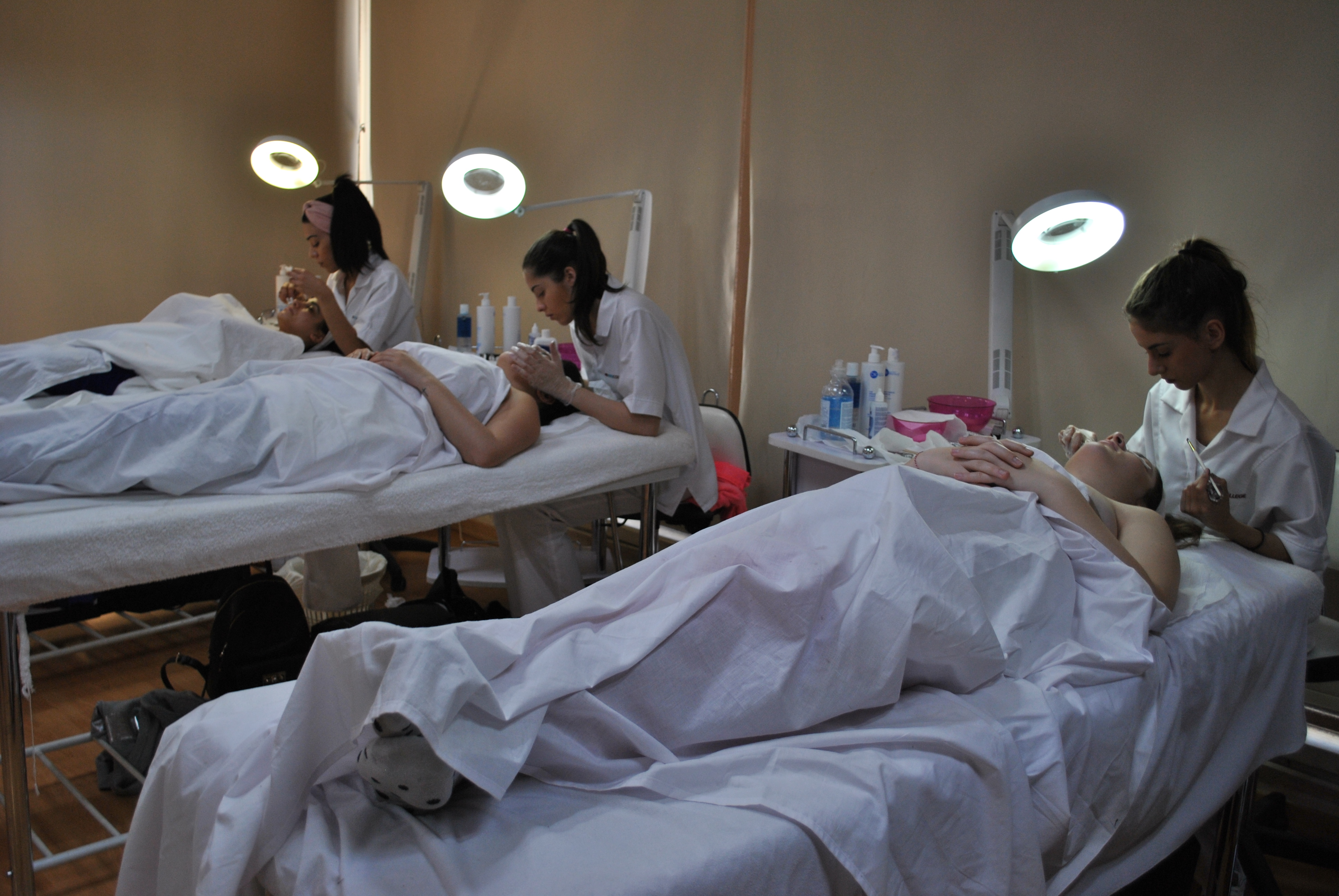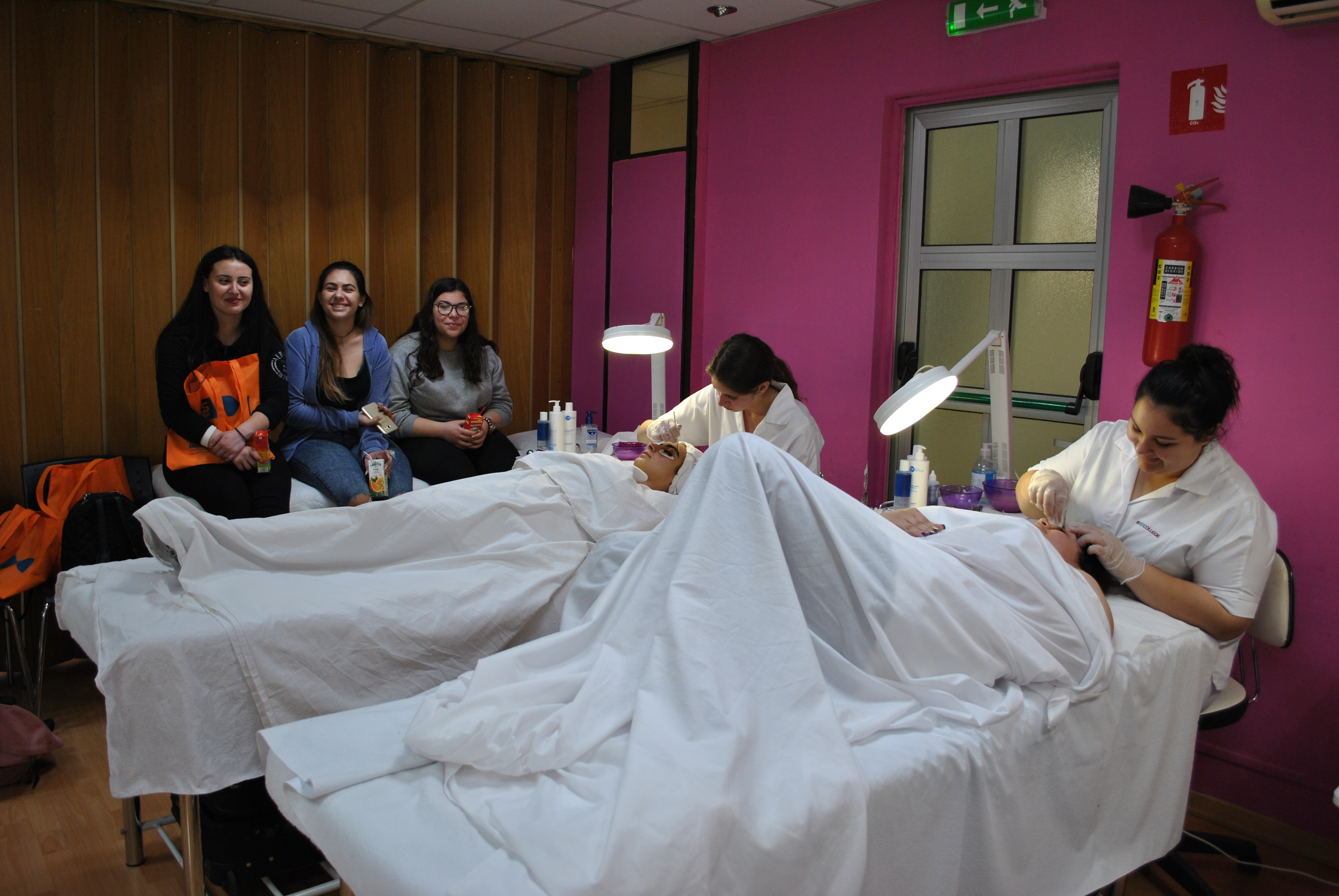 Κατόπιν επισκέφτηκαν το εργαστήριo αισθητικής, όπου η καθηγήτρια και υπεύθυνη του Δευτεροετούς Προγράμματος Αισθητικής κα Άντρη Σιδέρη Γιαλλουράκη μαζί με τις φοιτήτριες της, παρουσίασαν τον τρόπο διδασκαλίας και πρακτικής ώστε οι μαθήτριες Λυκείου να κατανοήσουν ακόμα καλύτερα τι σημαίνει Αισθητική και να δουν στην πράξη αν τους ενδιαφέρει αυτό το Πρόγραμμα Σπουδών.