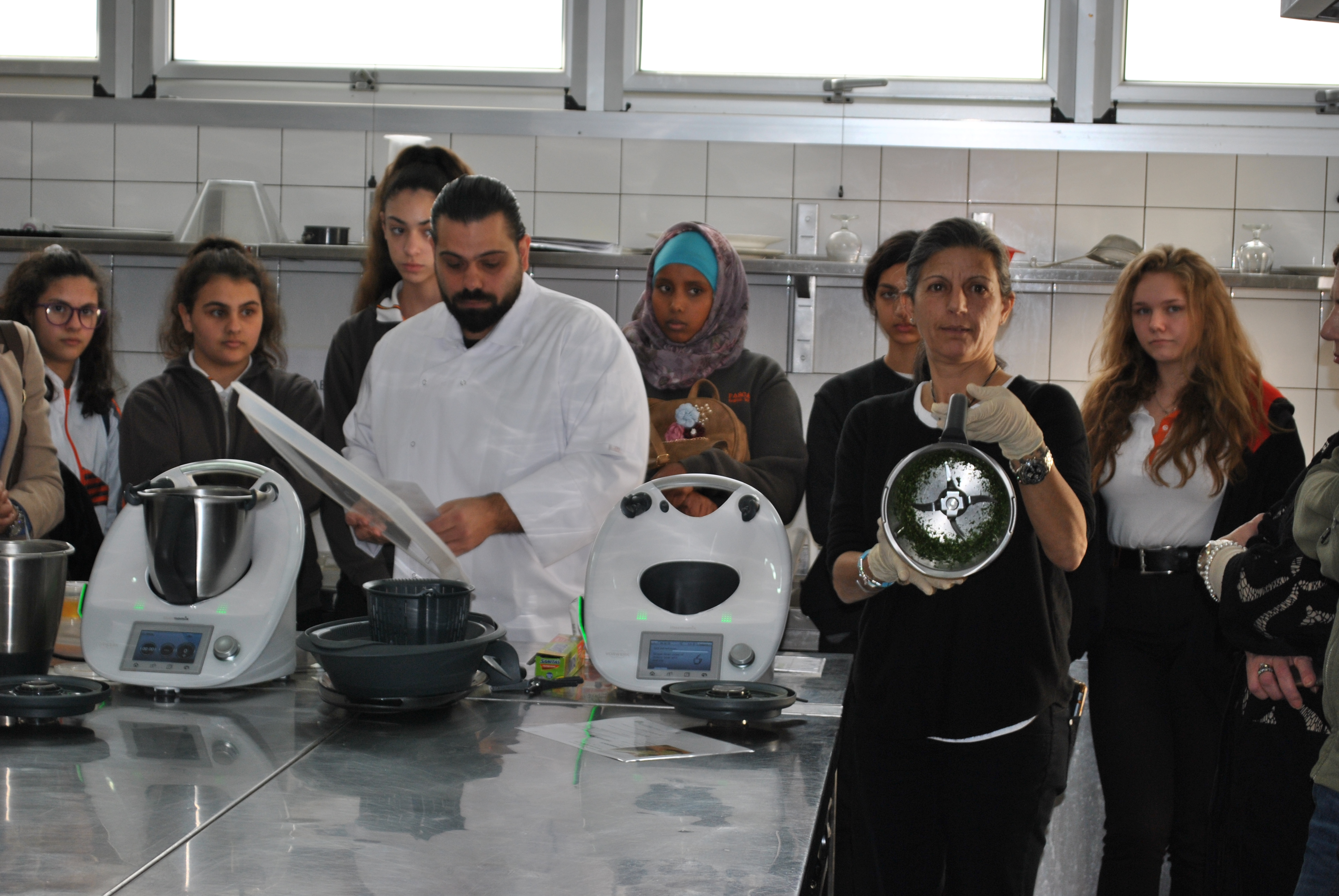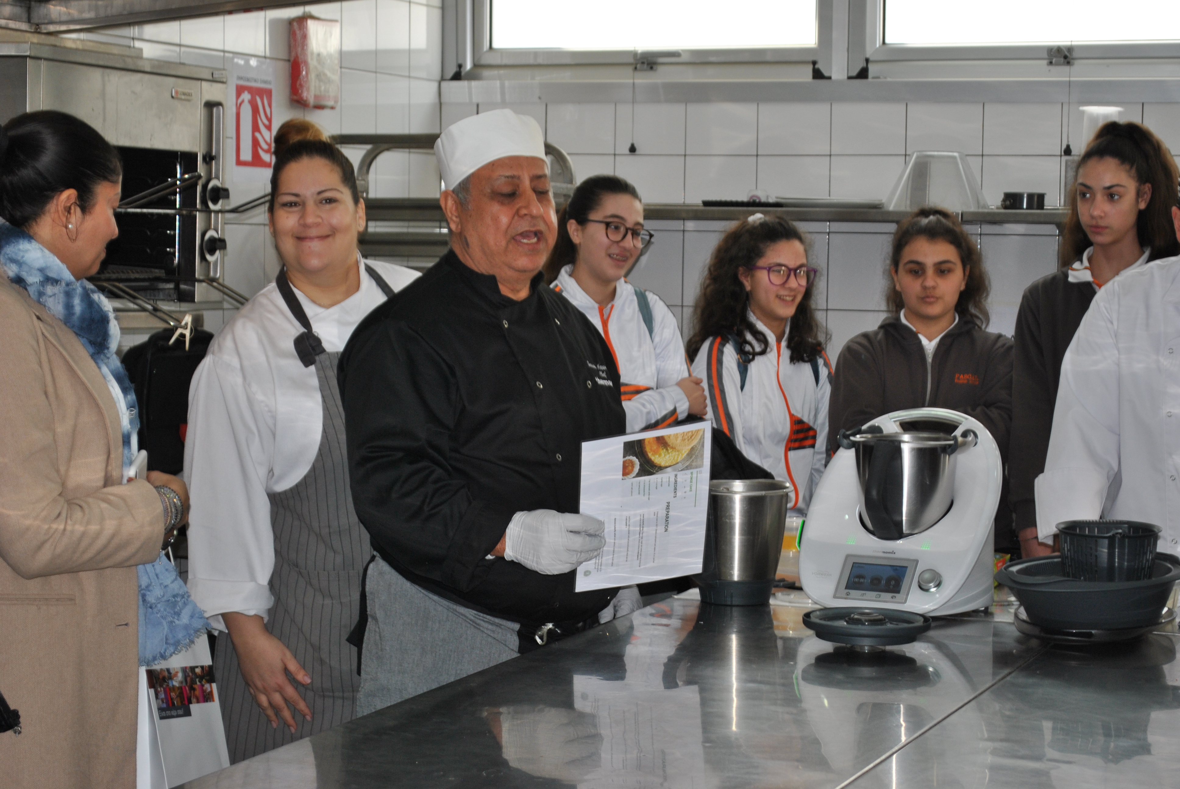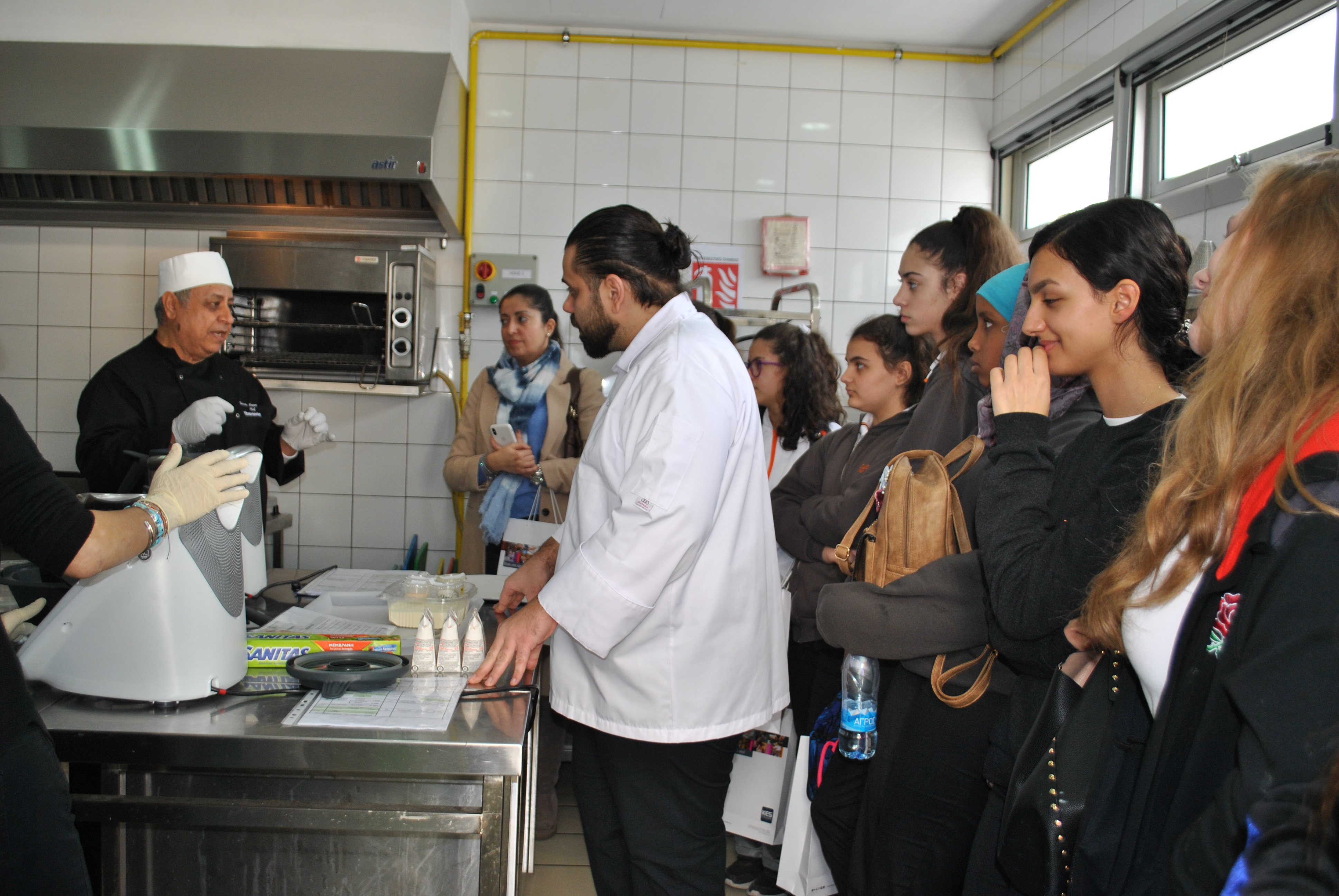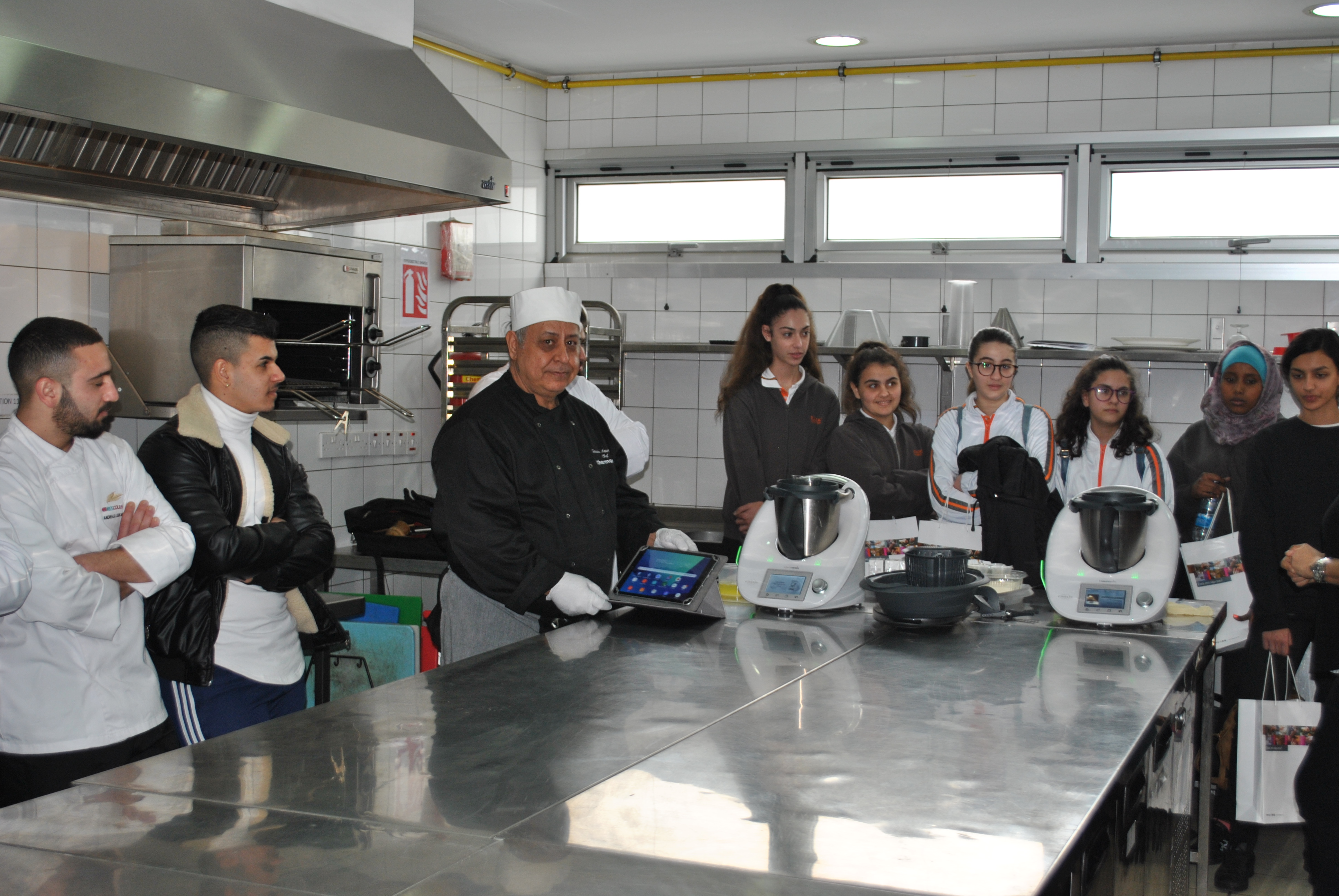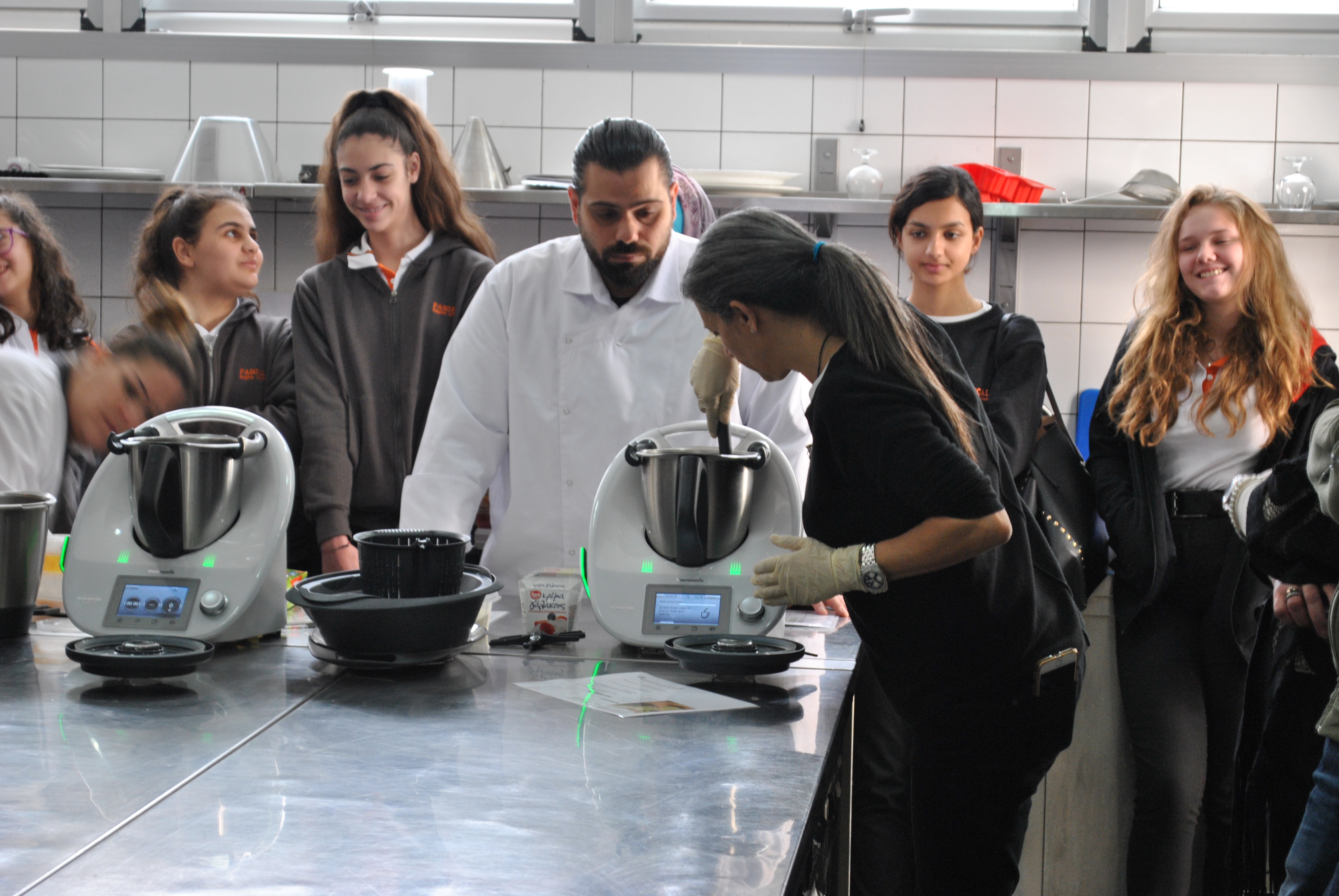 Κατόπιν, οι φιλοξενούμενες μαθήτριες επισκέφτηκαν ένα από τα εργαστήρια Μαγειρικής, όπου παρακολούθησαν μαζί με τους πρωτοετείς φοιτητές Γαστρονομικών Τεχνών μέρος της επίδειξης που πραγματοποιείτο εκείνη την ημέρα στο Κολλέγιο.