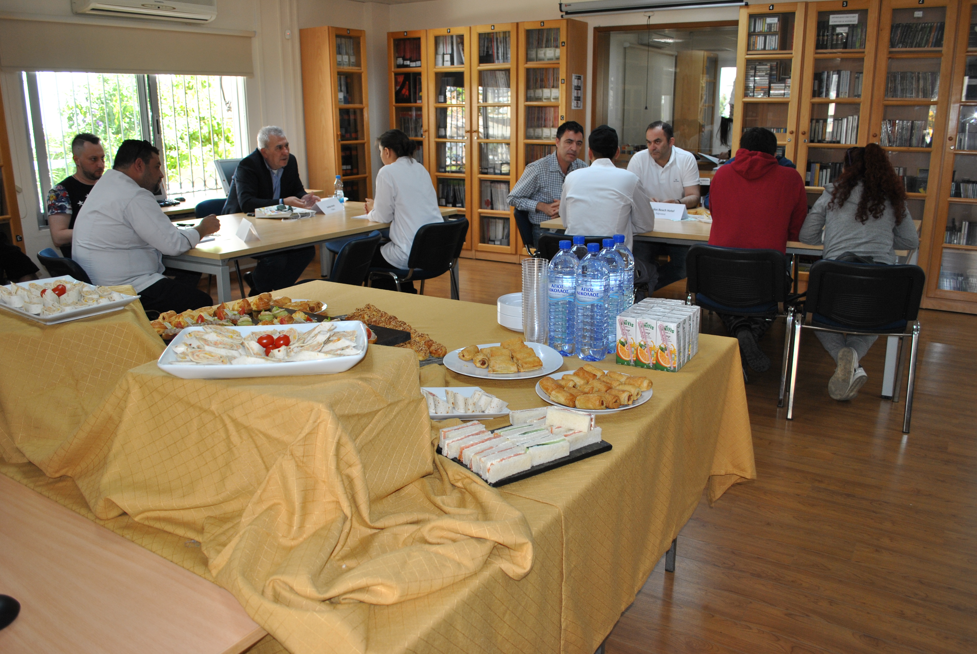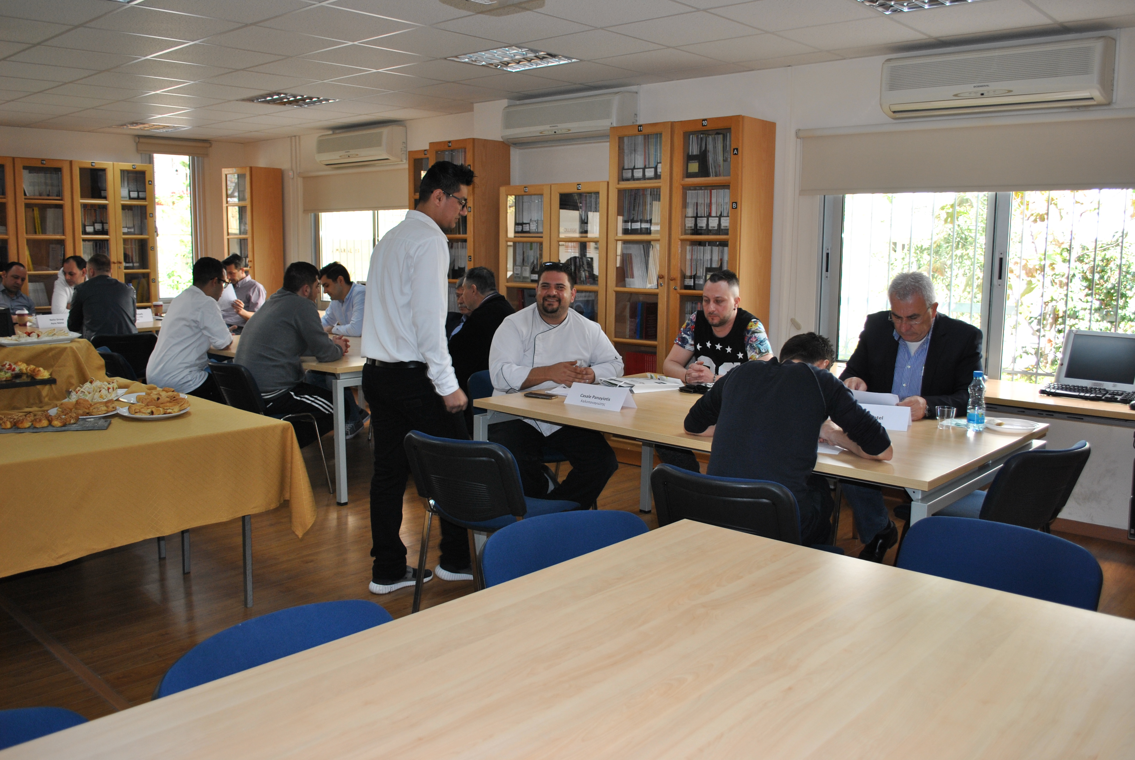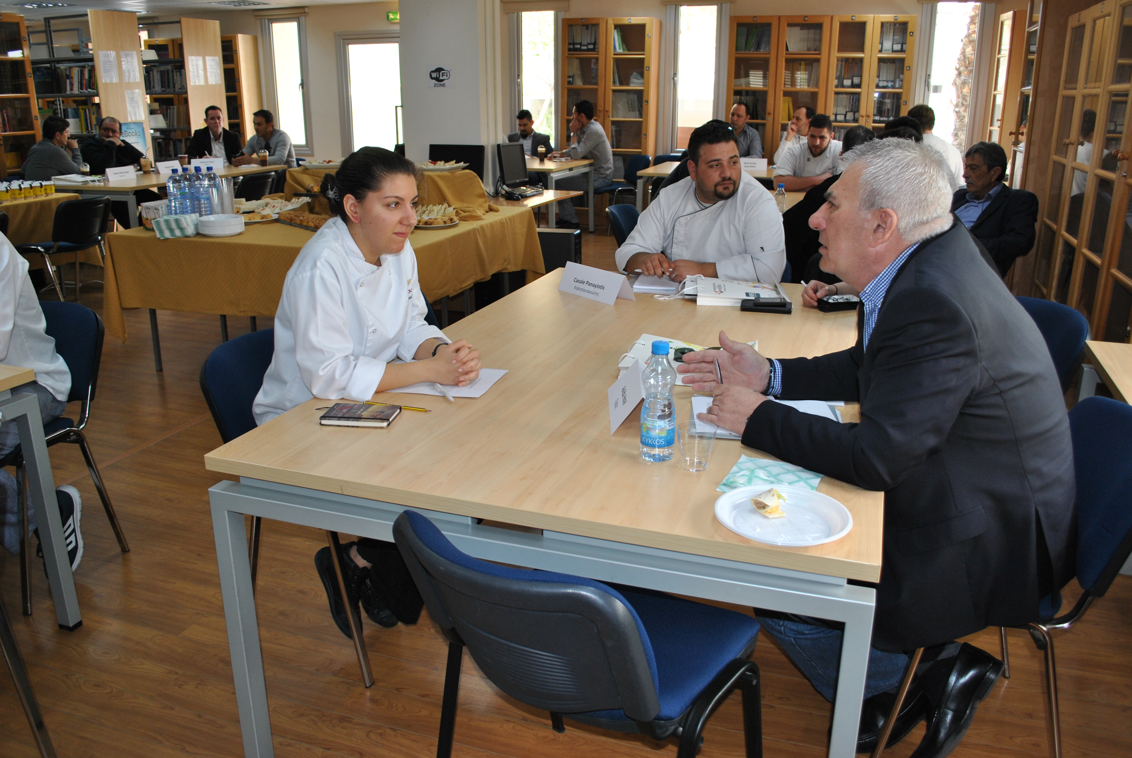 Ο Υπεύθυνος των Αξιολογημένων – Πιστοποιημένων Προγραμμάτων Σπουδών της Σχολής Επισιτιστικών, Ξενοδοχειακών και Τουριστικών Σπουδών, κ. Παναγιώτης Χατζησυμεού και οι καθηγητές είχαν την ευκαιρία να συνομιλήσουν με τους παρευρισκόμενους, να τους ενημερώσουν, μεταξύ άλλων, αναφορικά με τα μαθήματα που διεξάγονται στο Κολλέγιο και το επίπεδο σπουδών του Κολλεγίου καθώς επίσης και για τις δεξιότητες των φοιτητών.