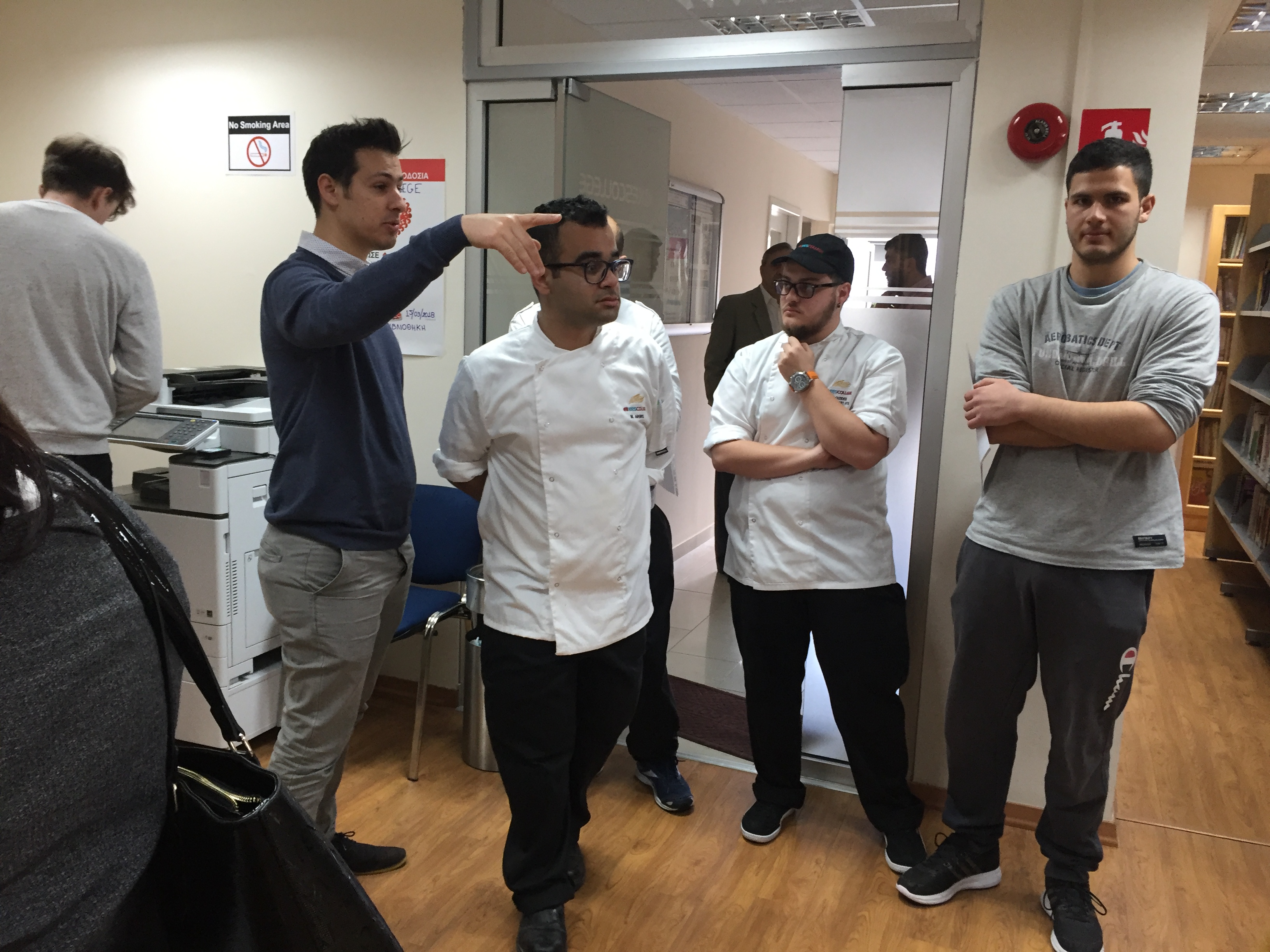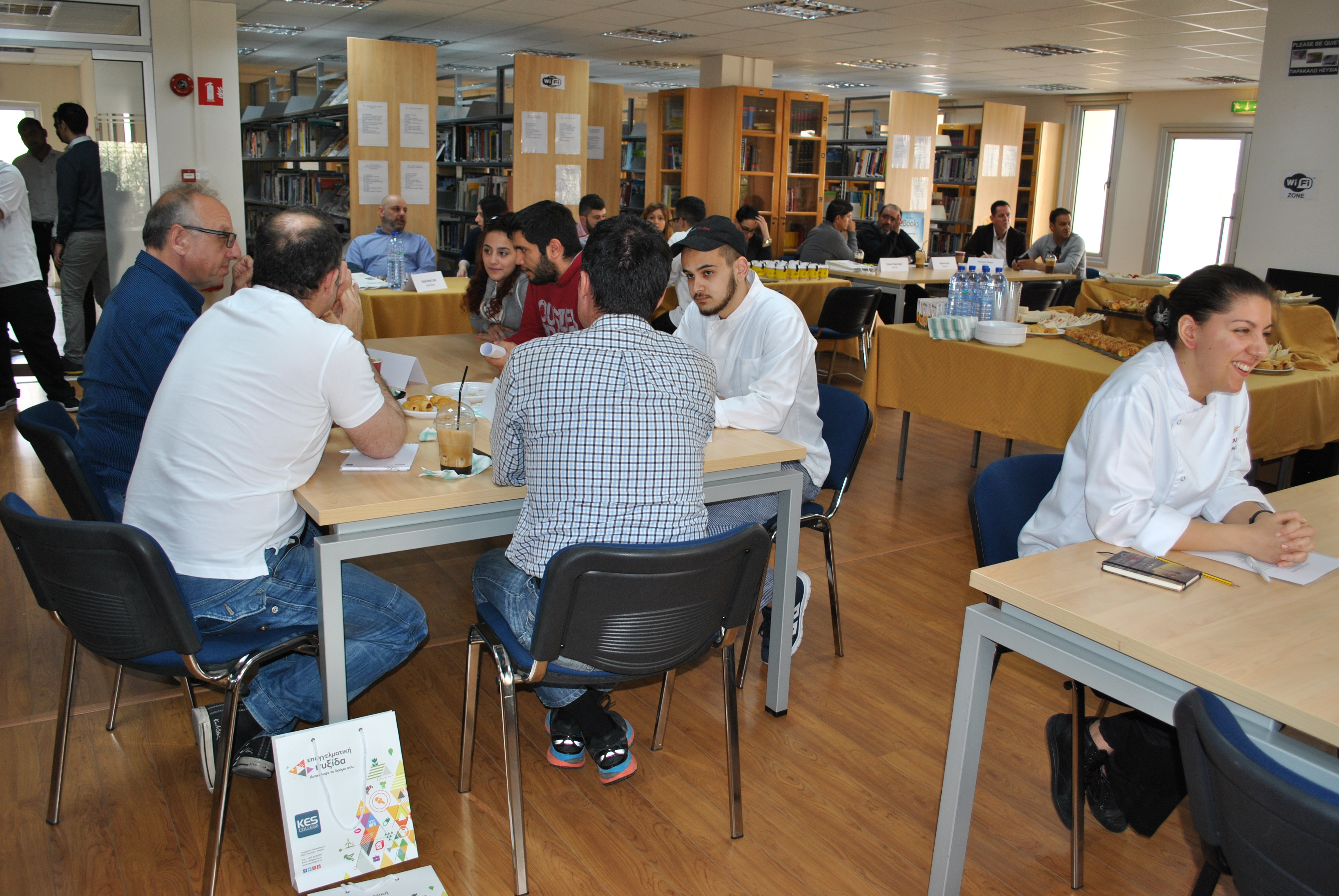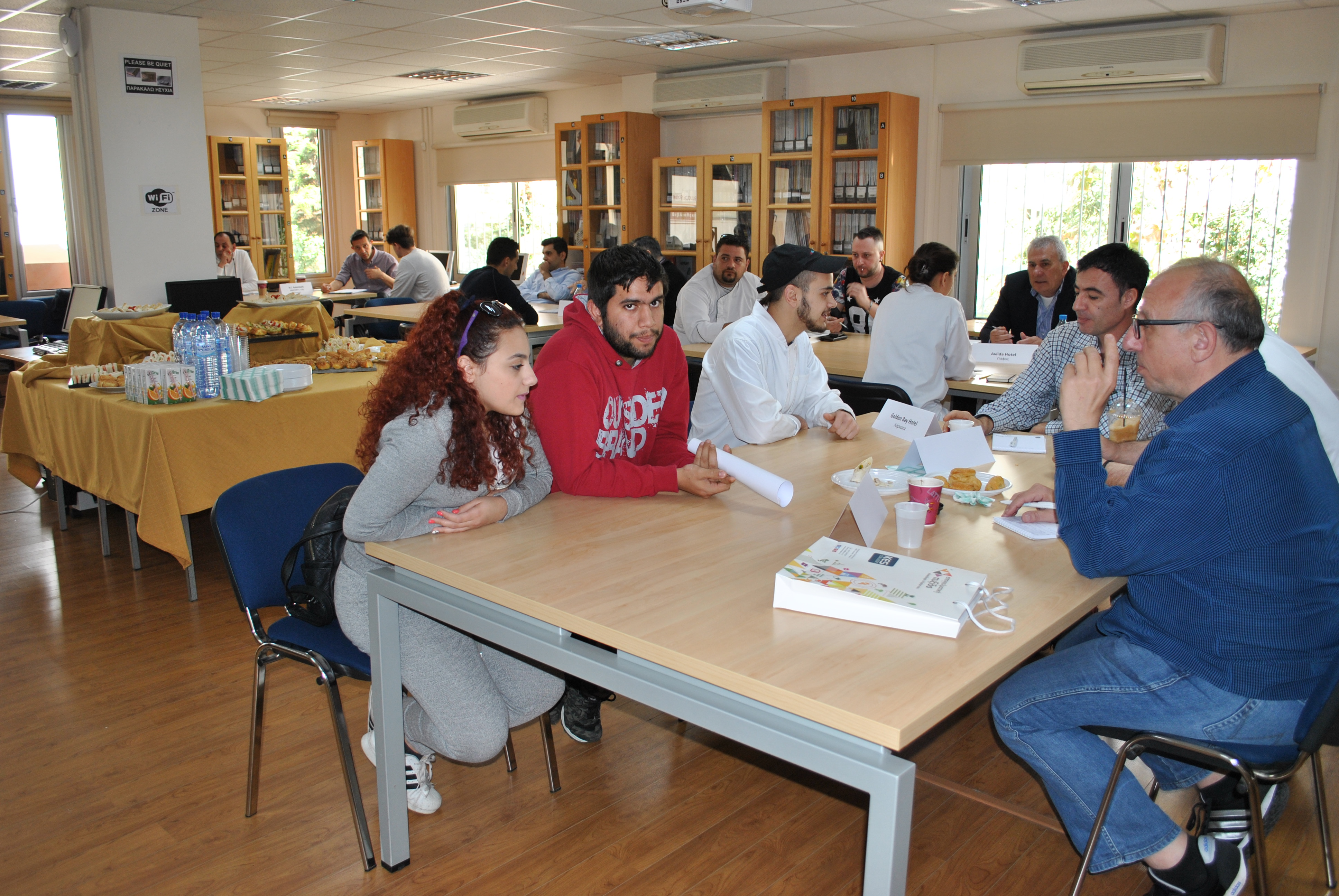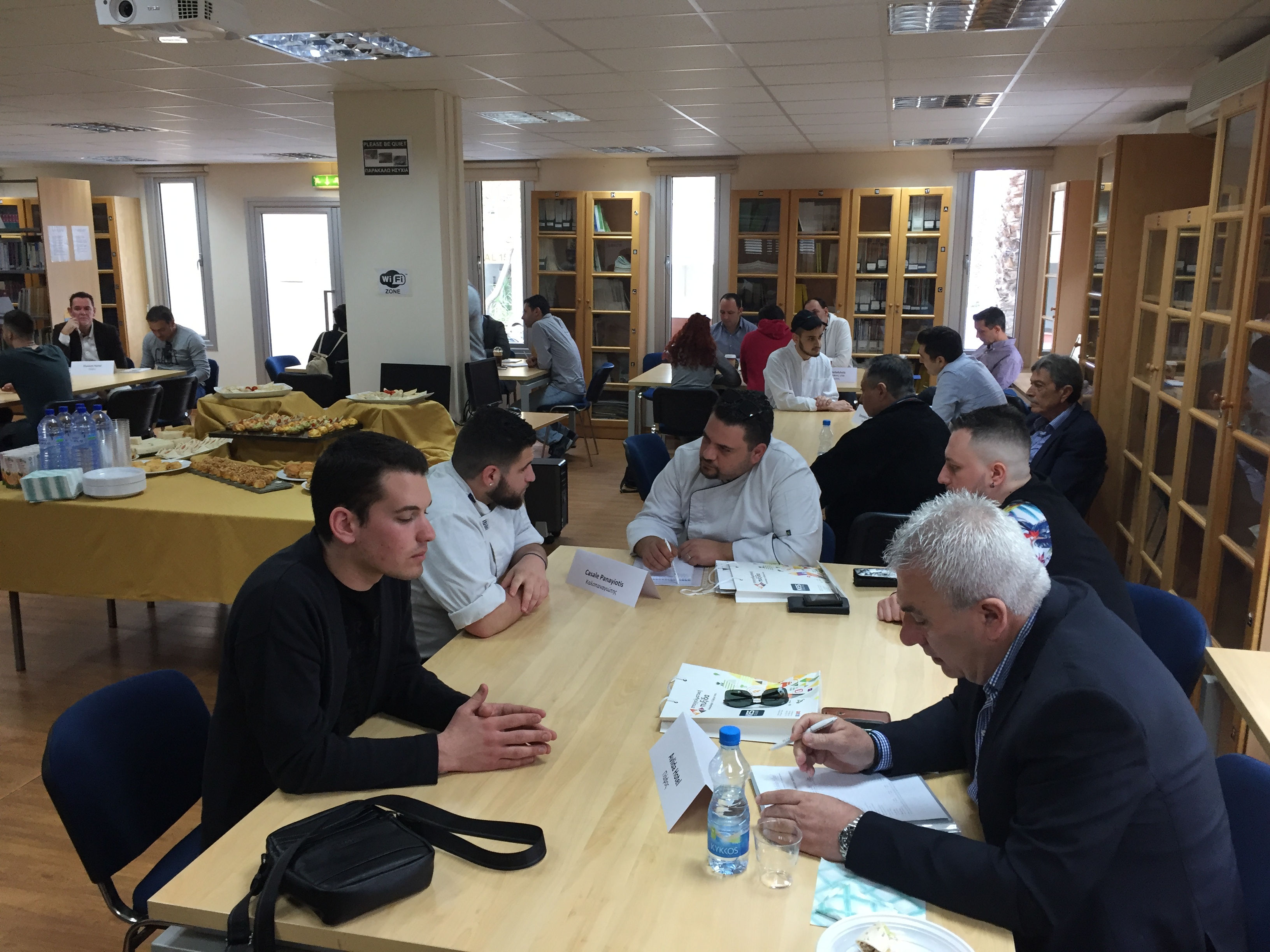 Ο Υπεύθυνος των Αξιολογημένων – Πιστοποιημένων Προγραμμάτων Σπουδών της Σχολής Επισιτιστικών, Ξενοδοχειακών και Τουριστικών Σπουδών, κ. Παναγιώτης Χατζησυμεού και οι καθηγητές είχαν την ευκαιρία να συνομιλήσουν με τους παρευρισκόμενους, να τους ενημερώσουν, μεταξύ άλλων, αναφορικά με τα μαθήματα που διεξάγονται στο Κολλέγιο και το επίπεδο σπουδών του Κολλεγίου καθώς επίσης και για τις δεξιότητες των φοιτητών.