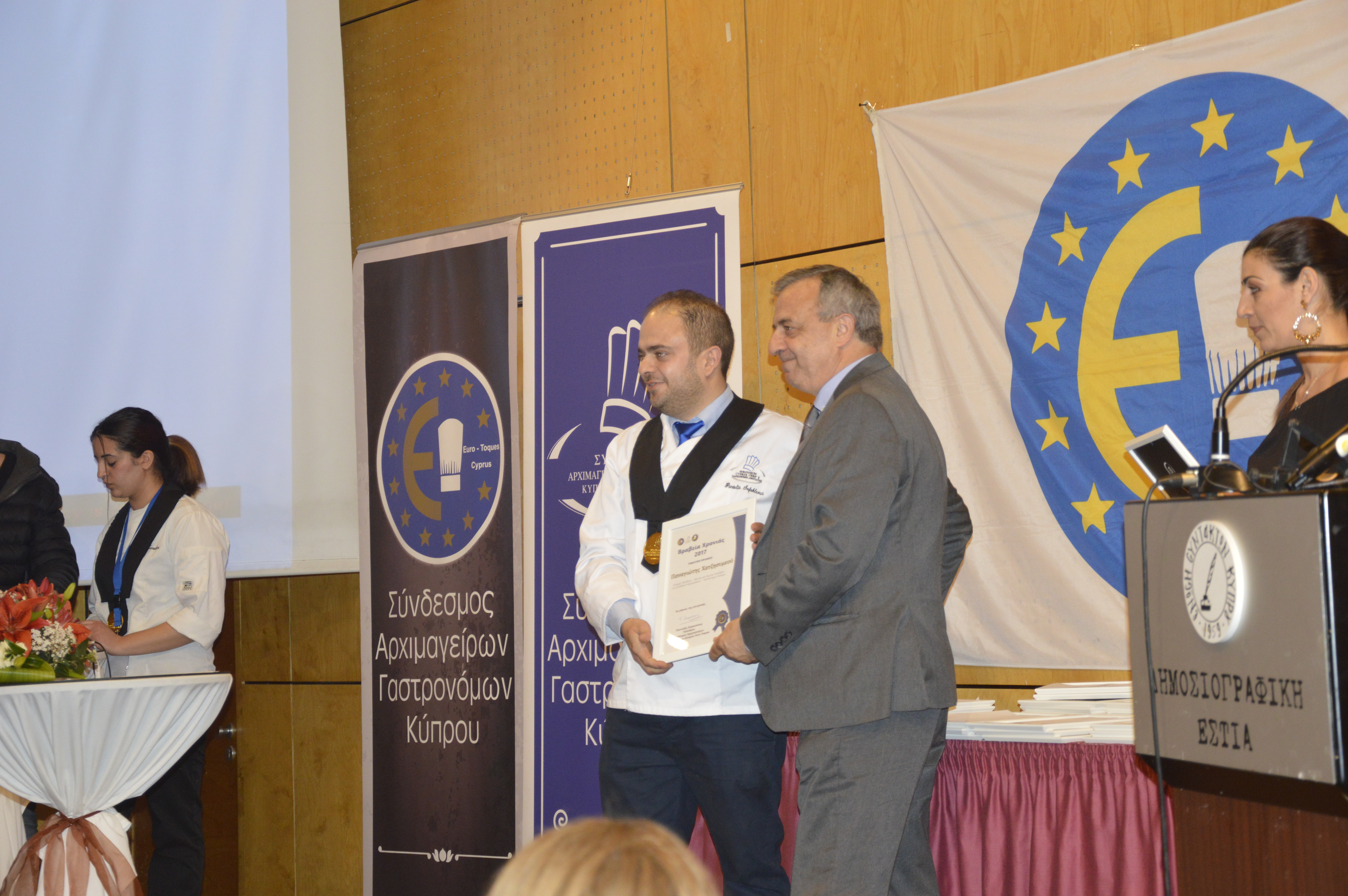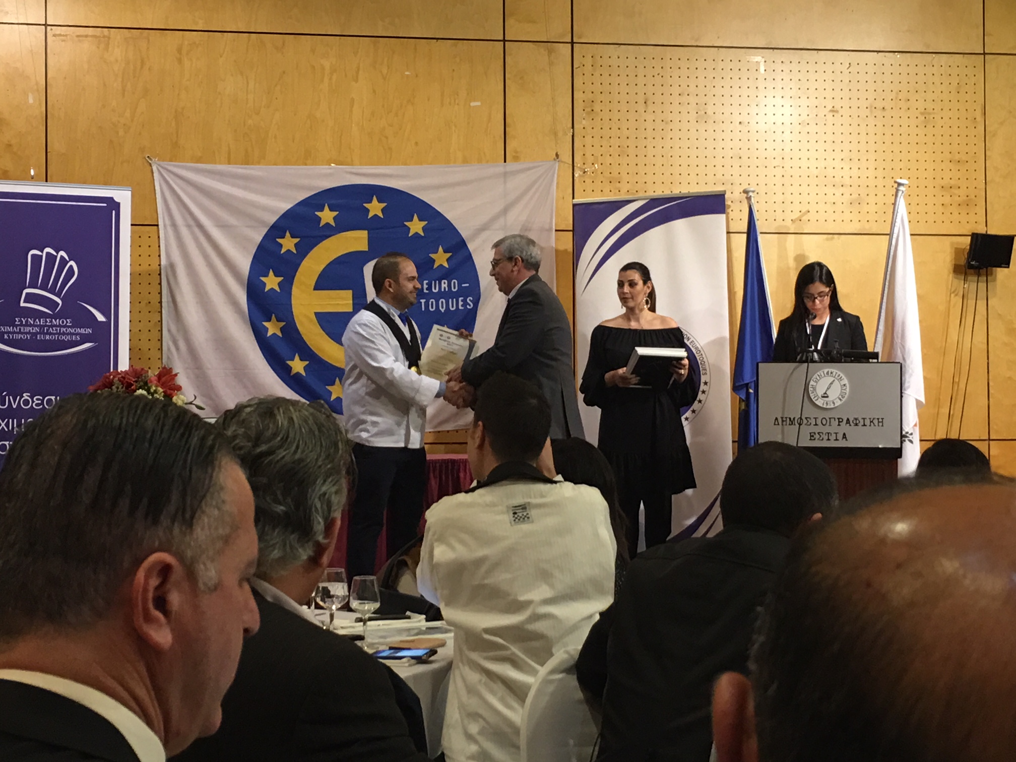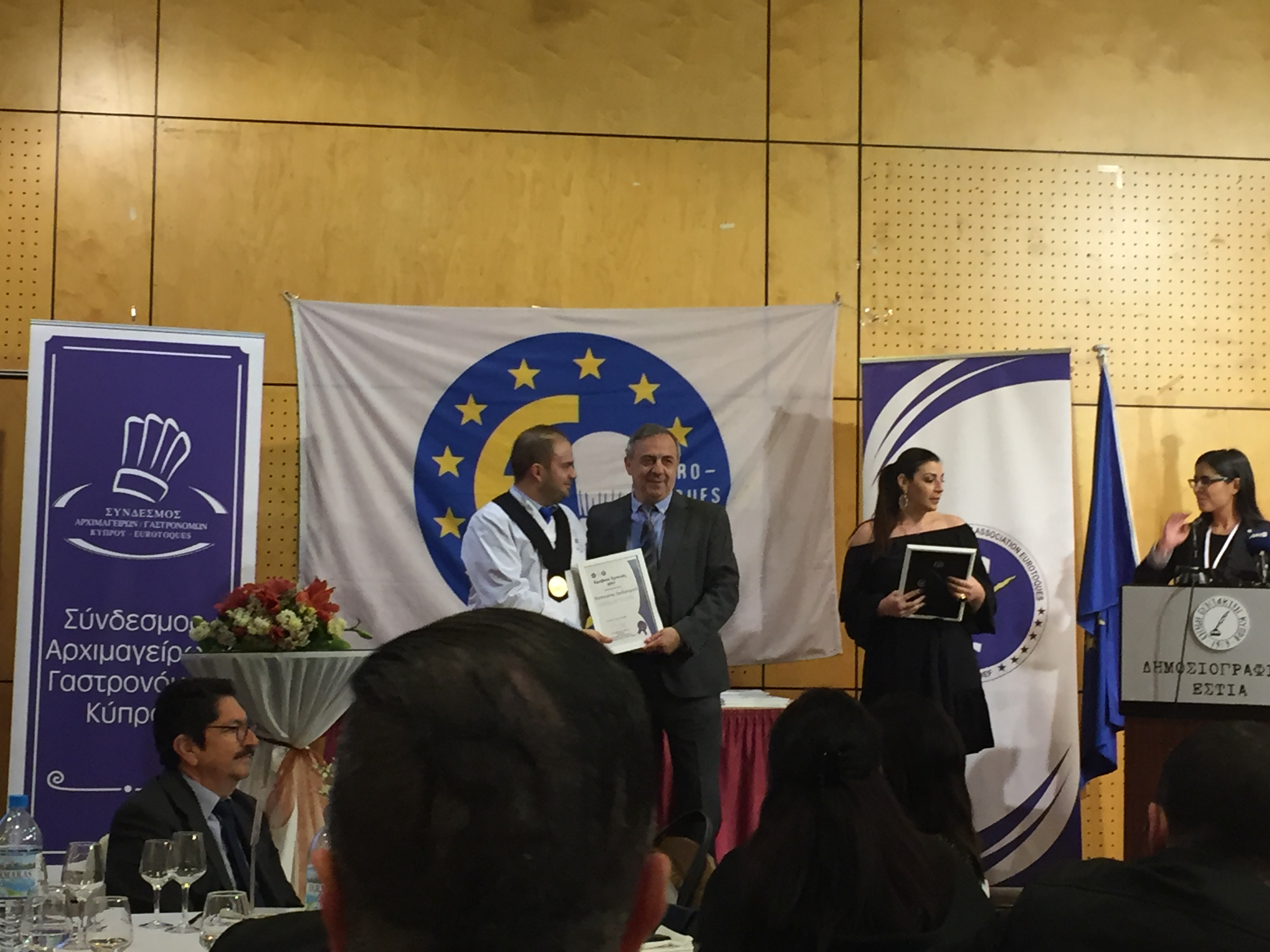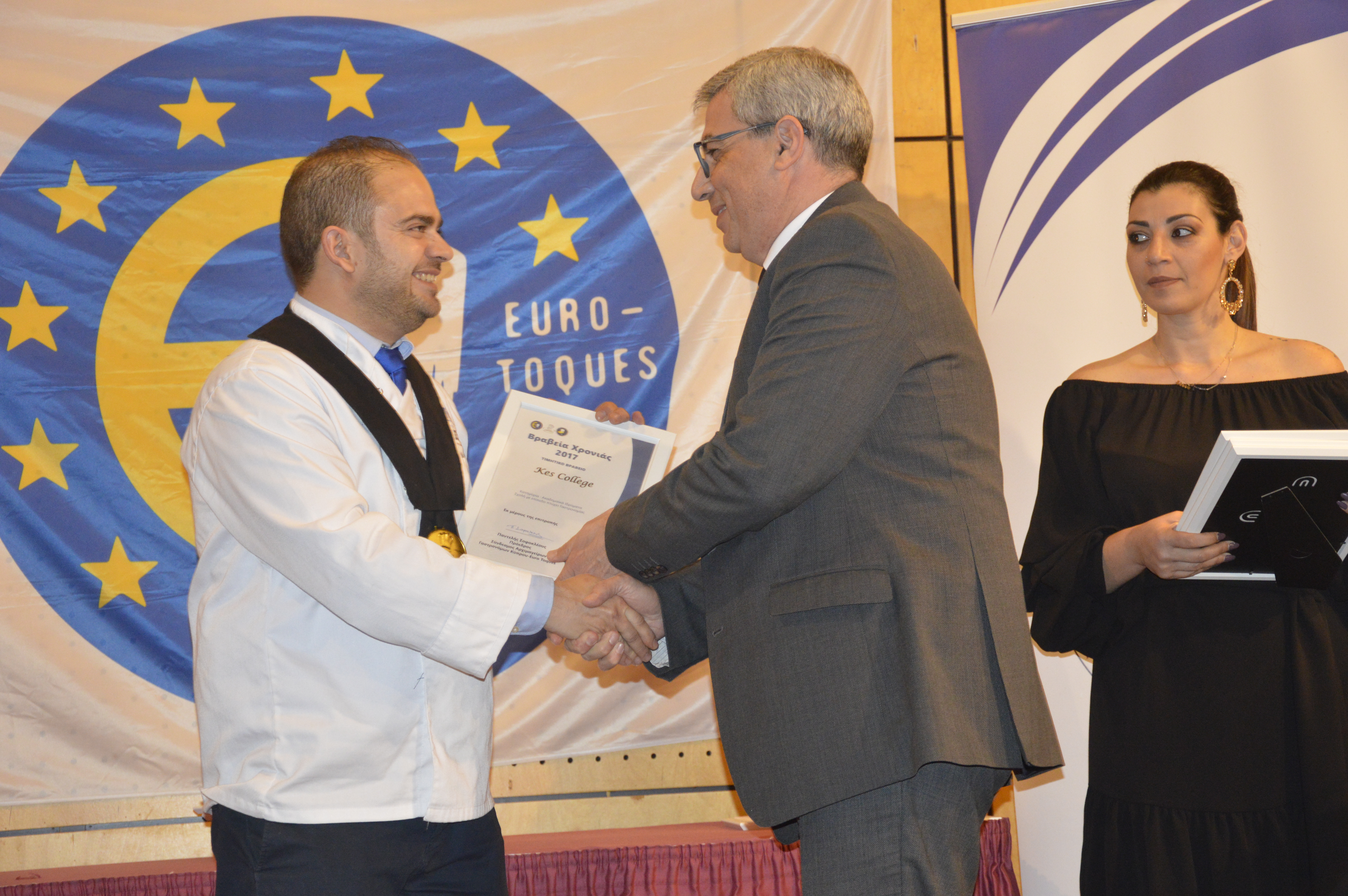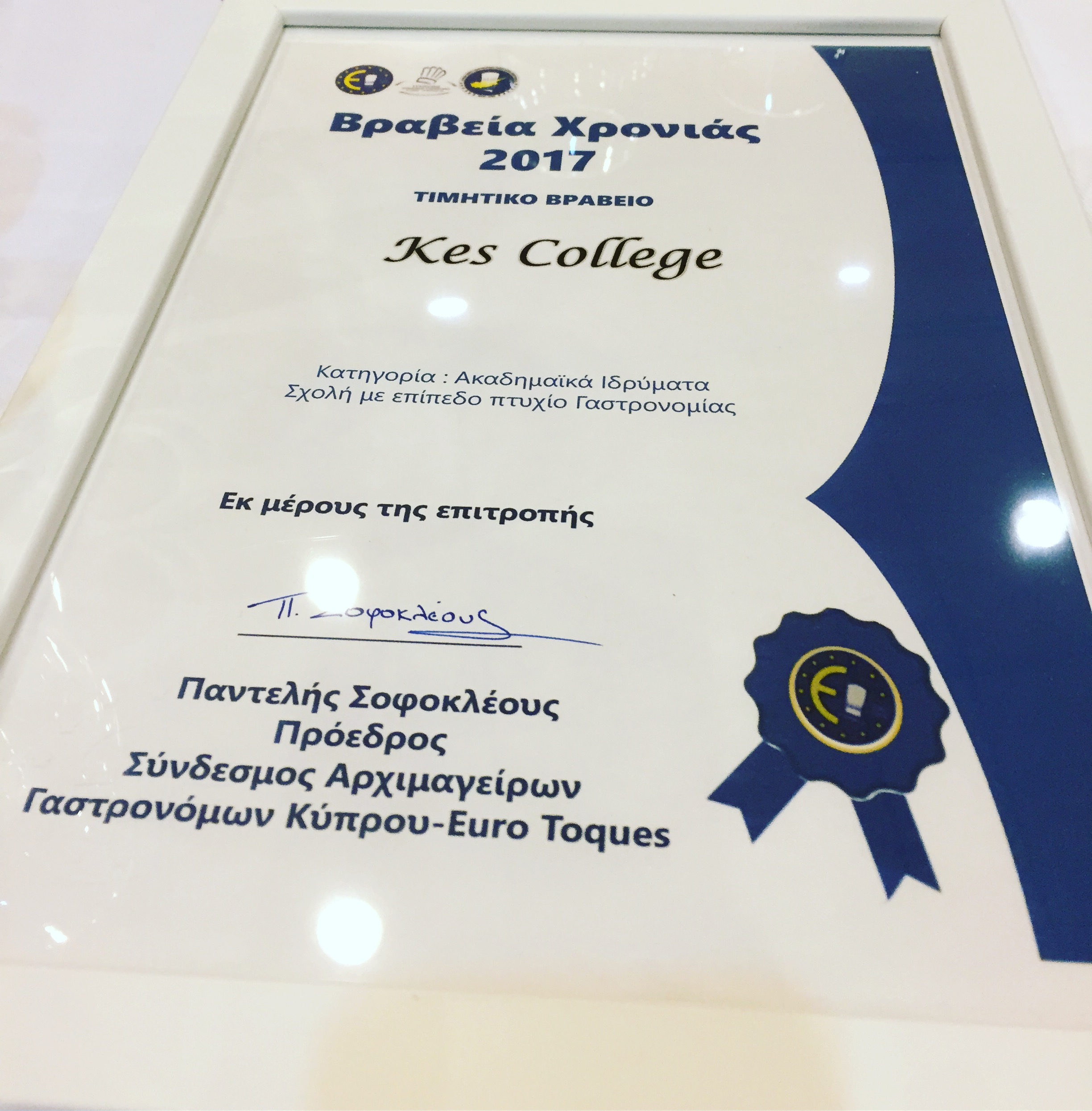 Ακολούθως ο κ. Παντελής Σοφοκλέους κάλεσε τον κ. Πέτρο Στυλιανού, Γενικό Διευθυντή του KES College για να προσφέρει το Τιμητικό Βραβείο της χρονιάς 2017 προς το KES College στην κατηγορία «Ακαδημαϊκά Ιδρύματα» που προσφέρει Αξιολογημένο – Πιστοποιημένο Πτυχίο στις Γαστρονομικές Τέχνες καθώς και τη διαχρονική του προσφορά στην εκπαίδευση στον τομέα των Γαστρονομικών Τεχνών (Μαγειρική, Αρτοποιία και Ζαχαροπλαστική) στην Κύπρο.