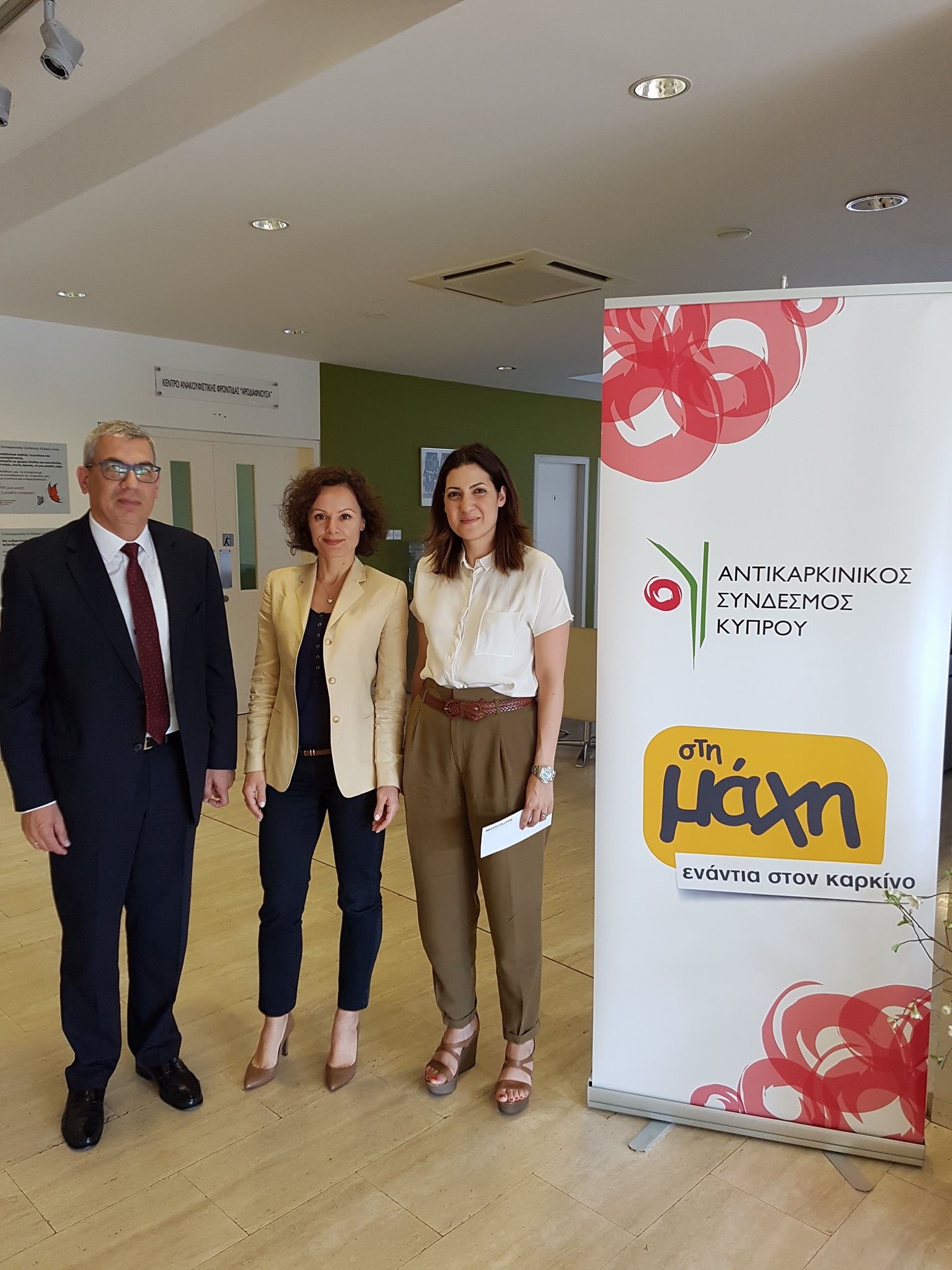 Ο Αναπληρωτής Γενικός Διευθυντής του KES College, κ. Πέτρος Στυλιανού παρέδωσε την επιταγή ύψους 570€ στην Υπεύθυνη Επικοινωνίας και Δημοσίων Σχέσεων του Αντικαρκινικού Συνδέσμου Κύπρου, κα Ειρήνη Λουκαΐδου, η οποία τον ευχαρίστησε θερμά. Όπως η ίδια ανέφερε: «Ευχαριστούμε το KES College για την ευγενική εισφορά τους ύψους 570€, ποσό το οποίο εισέπραξαν στις “Ημέρες ομορφιάς και αγάπης” που διοργάνωσαν στα πλαίσια της φετινής Πορείας Χριστοδούλας αλλά και για την επάνδρωση του περιπτέρου στον Άγιο Αντώνιο με φοιτητές του»