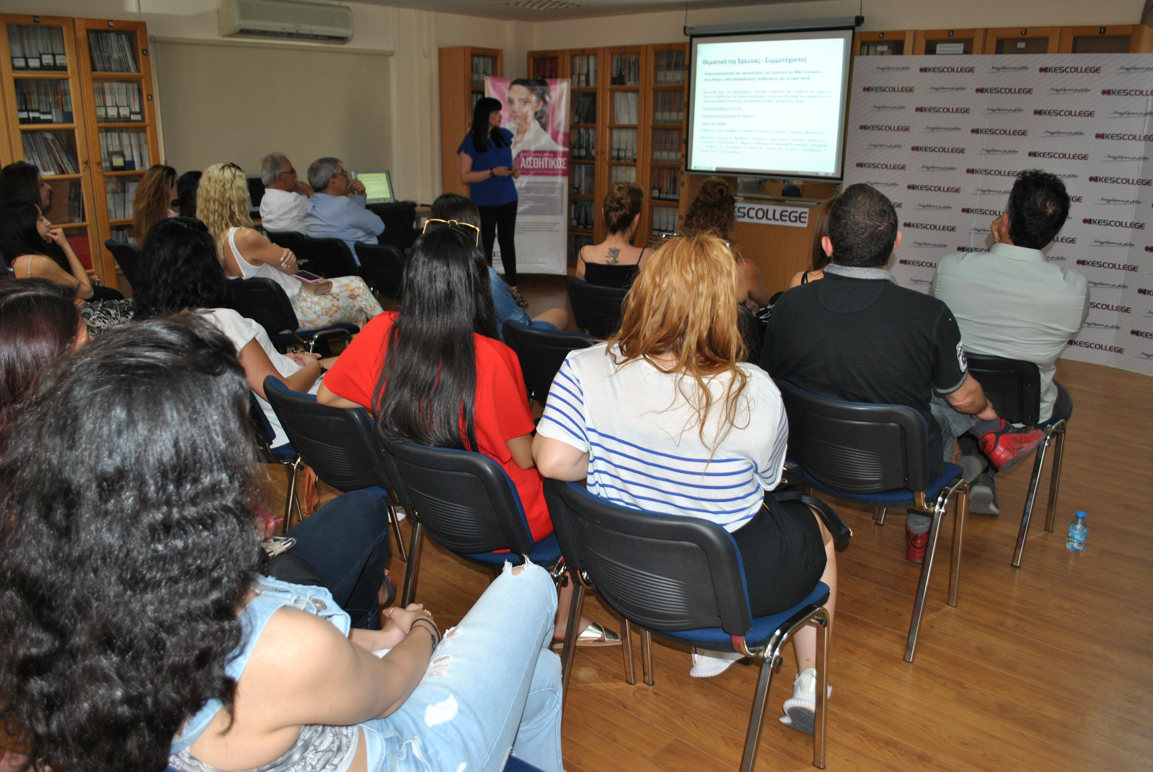 Σε ειδική εκδήλωση στις εγκαταστάσεις του KES College, τα Προγράμματα Σπουδών «Αισθητική» και «Αισθητική και Διαχείριση Μονάδων Αισθητικής» της Σχολής Επαγγελμάτων Υγείας του KES College σε συνεργασία με τον Οργανισμό Κώστα Παπαέλληνα, αντιπρόσωπο της MAC Cosmetics στην Κύπρο παρουσίασαν στα τέλη Ιουνίου τα αποτελέσματα της έρευνας με θέμα τη «Διερεύνηση της Αναγνωρισιμότητας και Ικανοποίησης των πελατών της MAC Cosmetics στην Κύπρο από επαγγελματίες Αισθητικούς και το ευρύ κοινό».