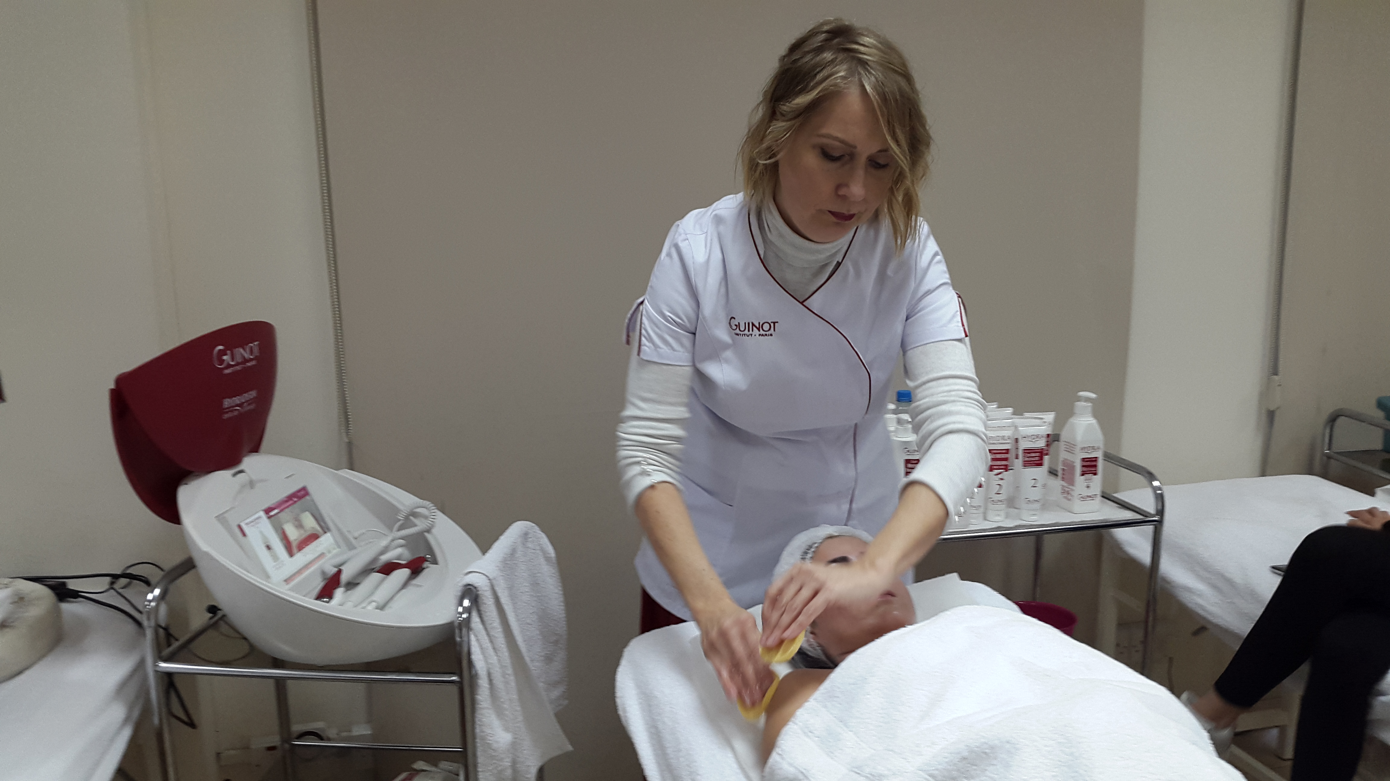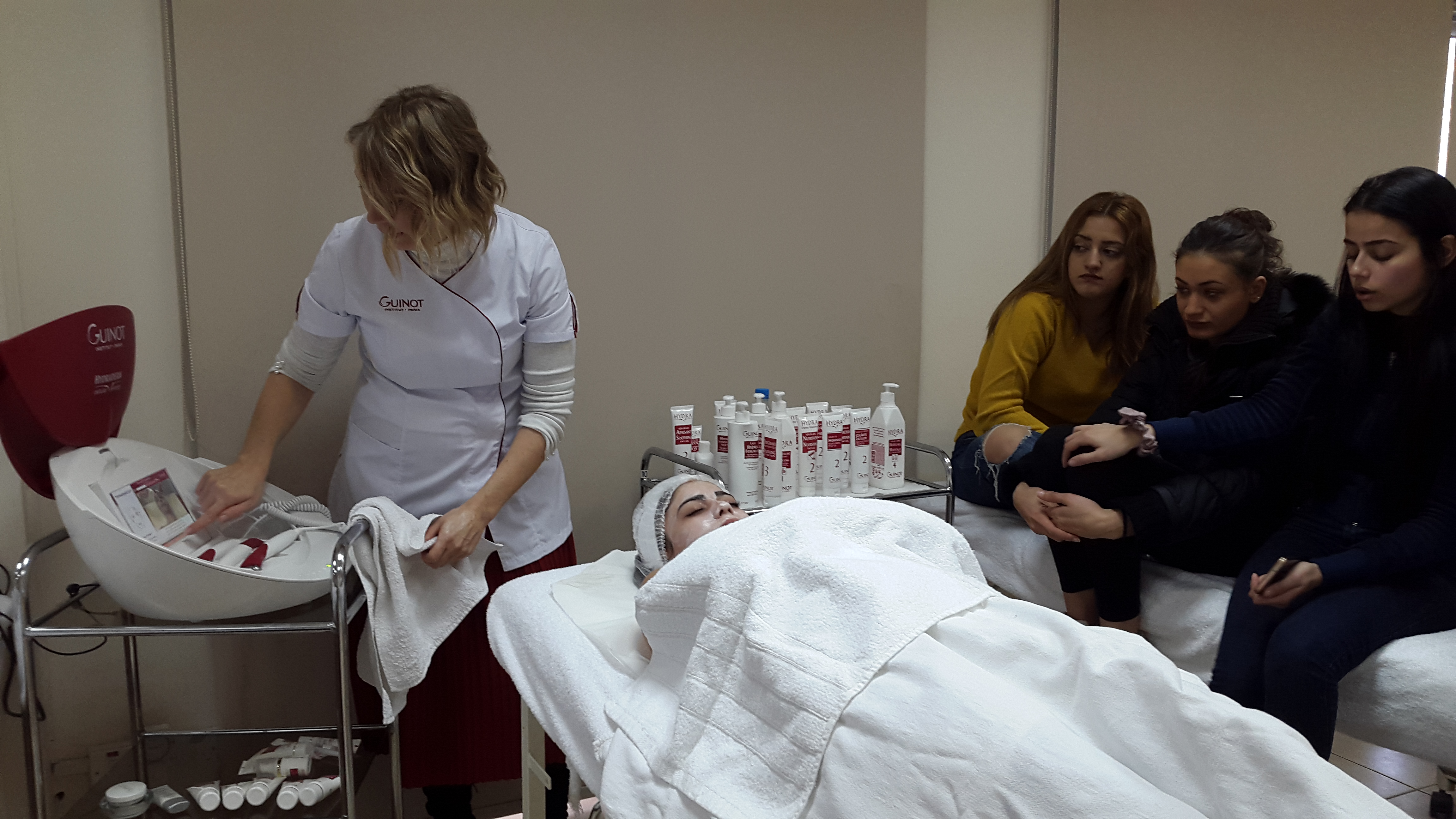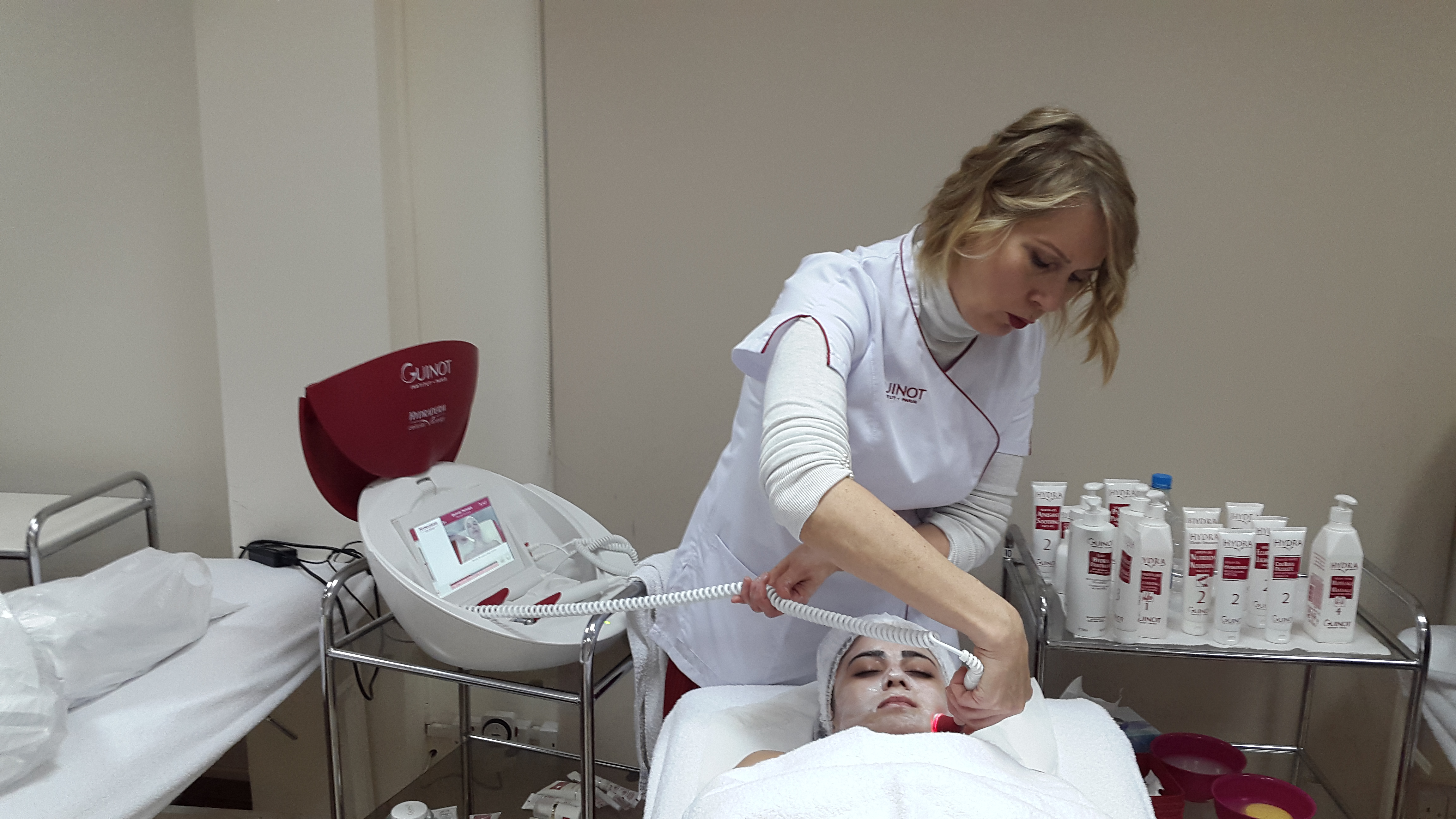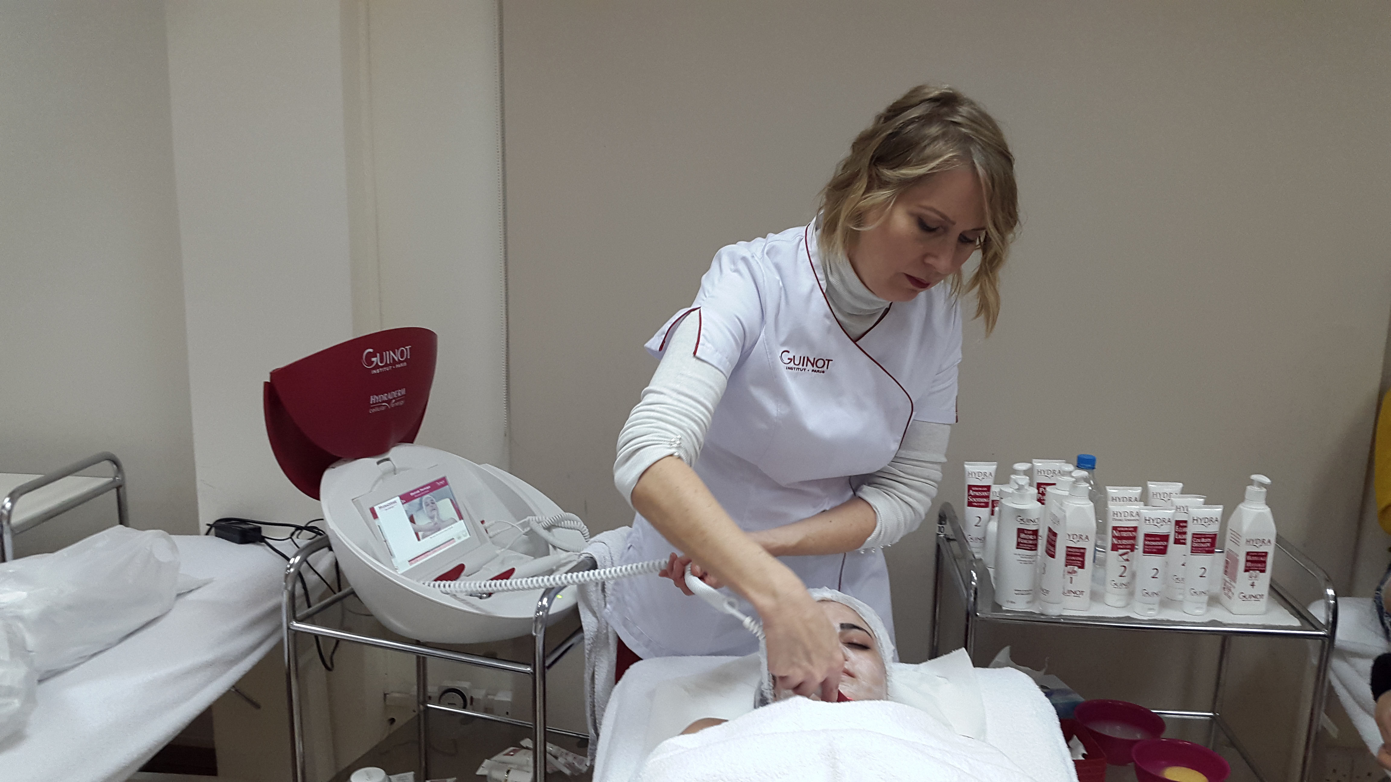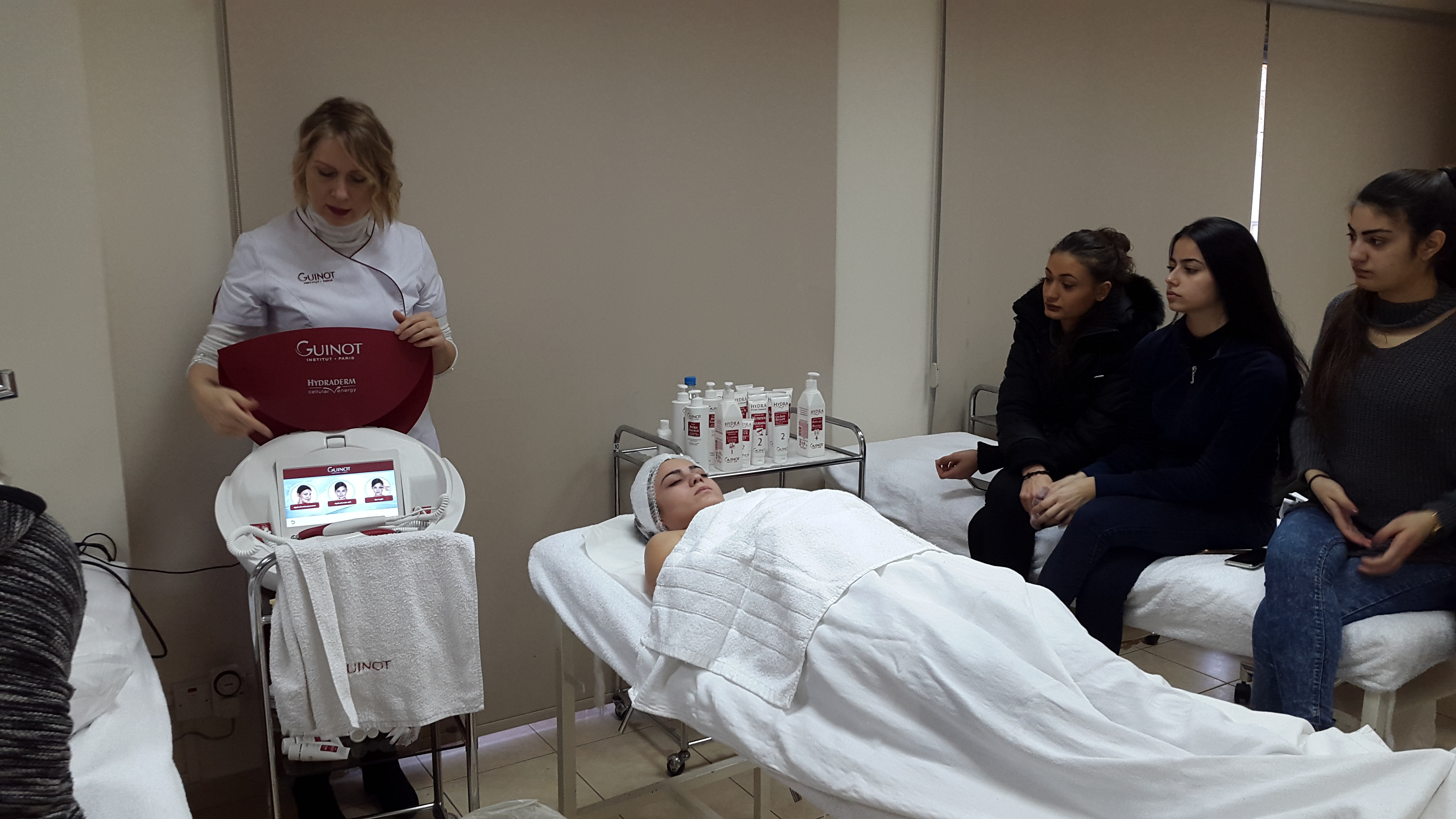 Η εφαρμογή της θεραπείας έγινε με την χρήση του μηχανήματος Hydraderm Cellular Energy της Guinot με στόχο την ενυδάτωση, την ανανέωση, την ανάπλαση και φυσικά την λάμψη της επιδερμίδας. Οι φοιτήτριες παρακολούθησαν προσεκτικά την όλη διαδικασία, συμμετέχοντας ενεργά με ερωτήσεις και λύνοντας απορίες που είχαν με στόχο την πλήρη κατανόηση της θεραπείας και των ιδιαιτεροτήτων της.