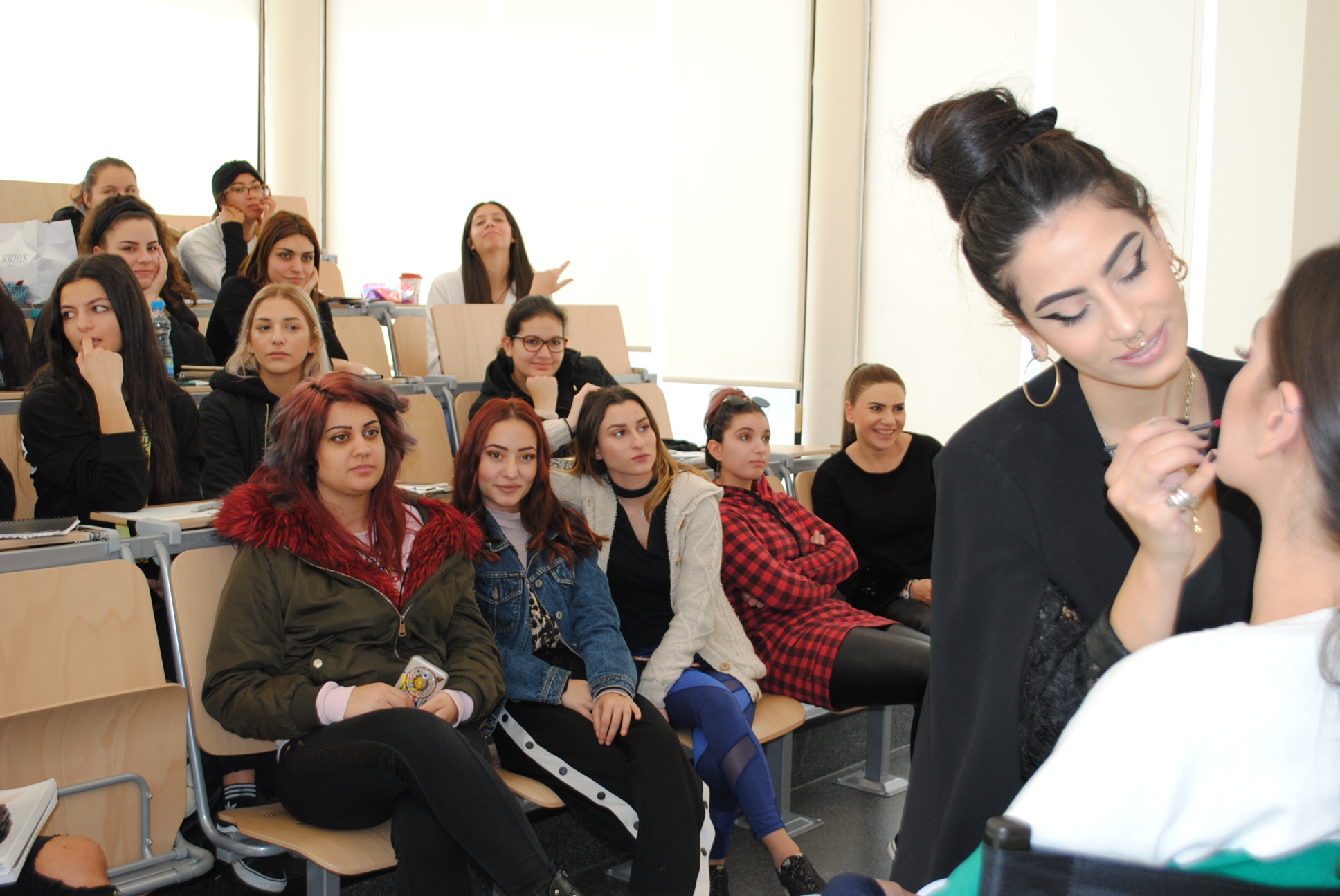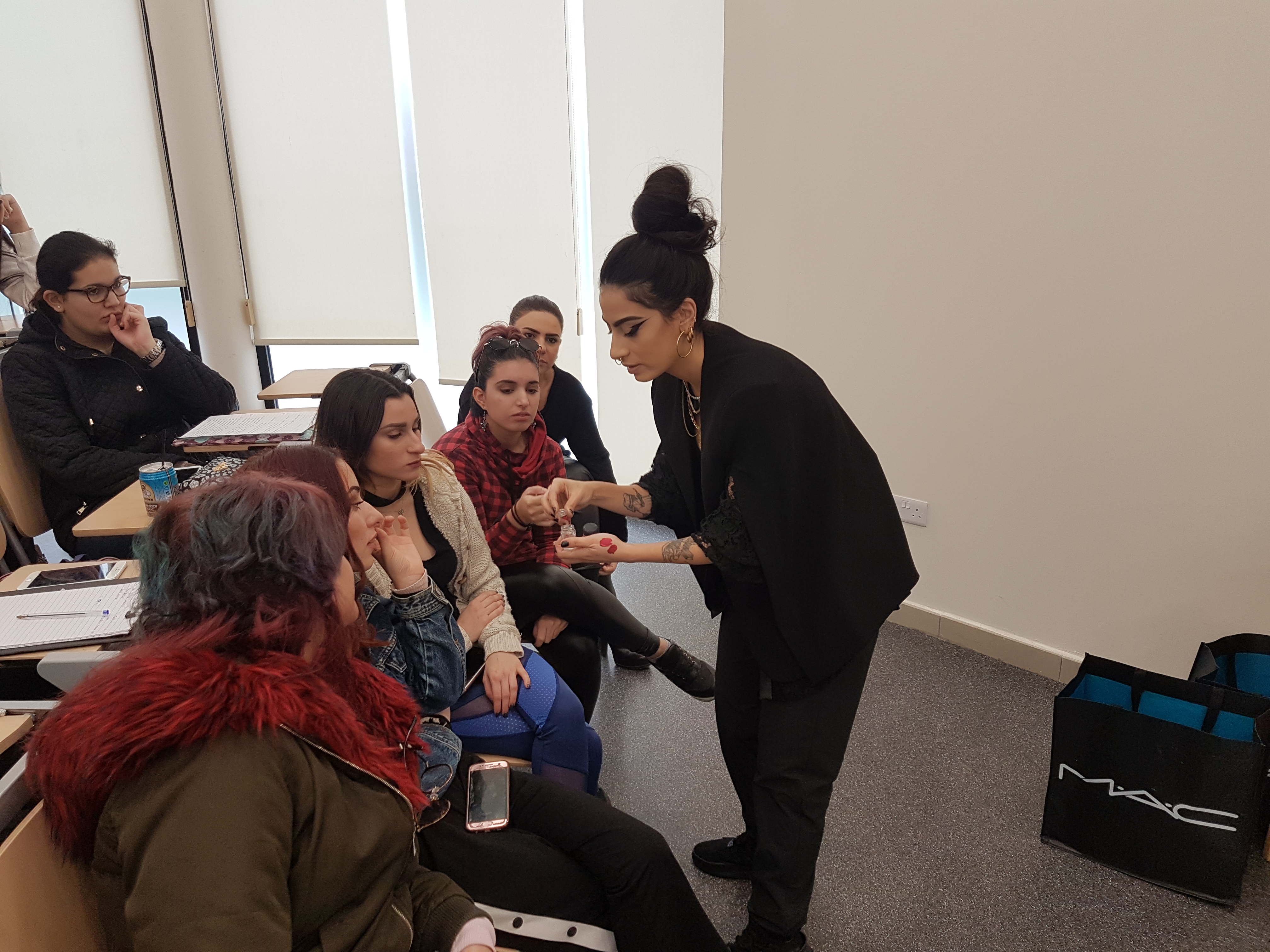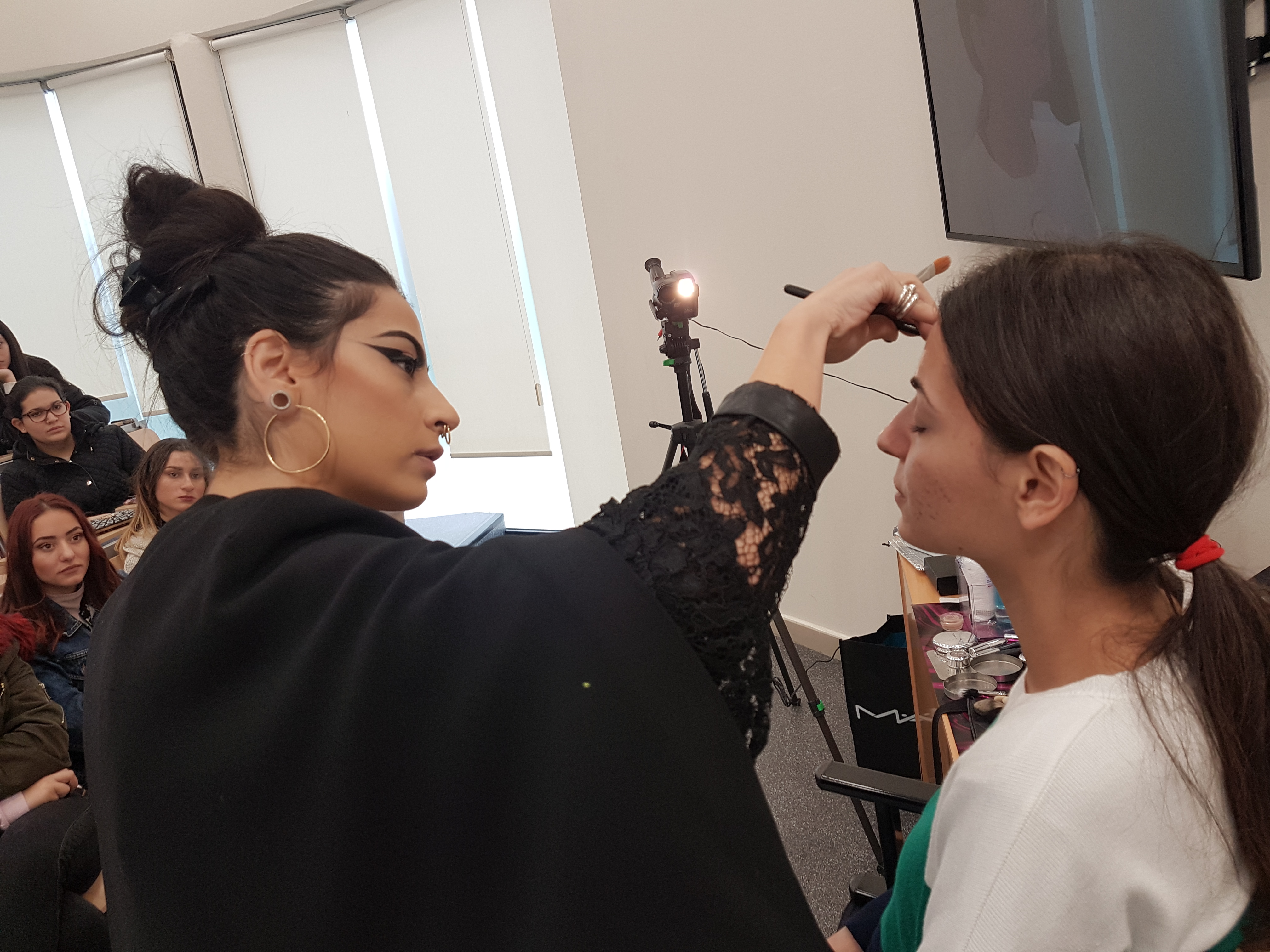 Την Παρασκευή 7 Δεκεμβρίου 2018, οι φοιτήτριες των Αξιολογημένων Προγραμμάτων Σπουδών Αισθητικής του KES College είχαν την ευκαιρία να παρακολουθήσουν στα νέα και σύγχρονα κτίρια του Τμήματος Αισθητικής την παρουσίαση Extreme Μακιγιάζ για το Ρεβεγιόν των Χριστουγέννων και της Πρωτοχρονιάς από επαγγελματία μακιγιέζ της παγκοσμίου αναγνωρισμένης εταιρείας καλλυντικών MAC Cosmetics Cyprus.