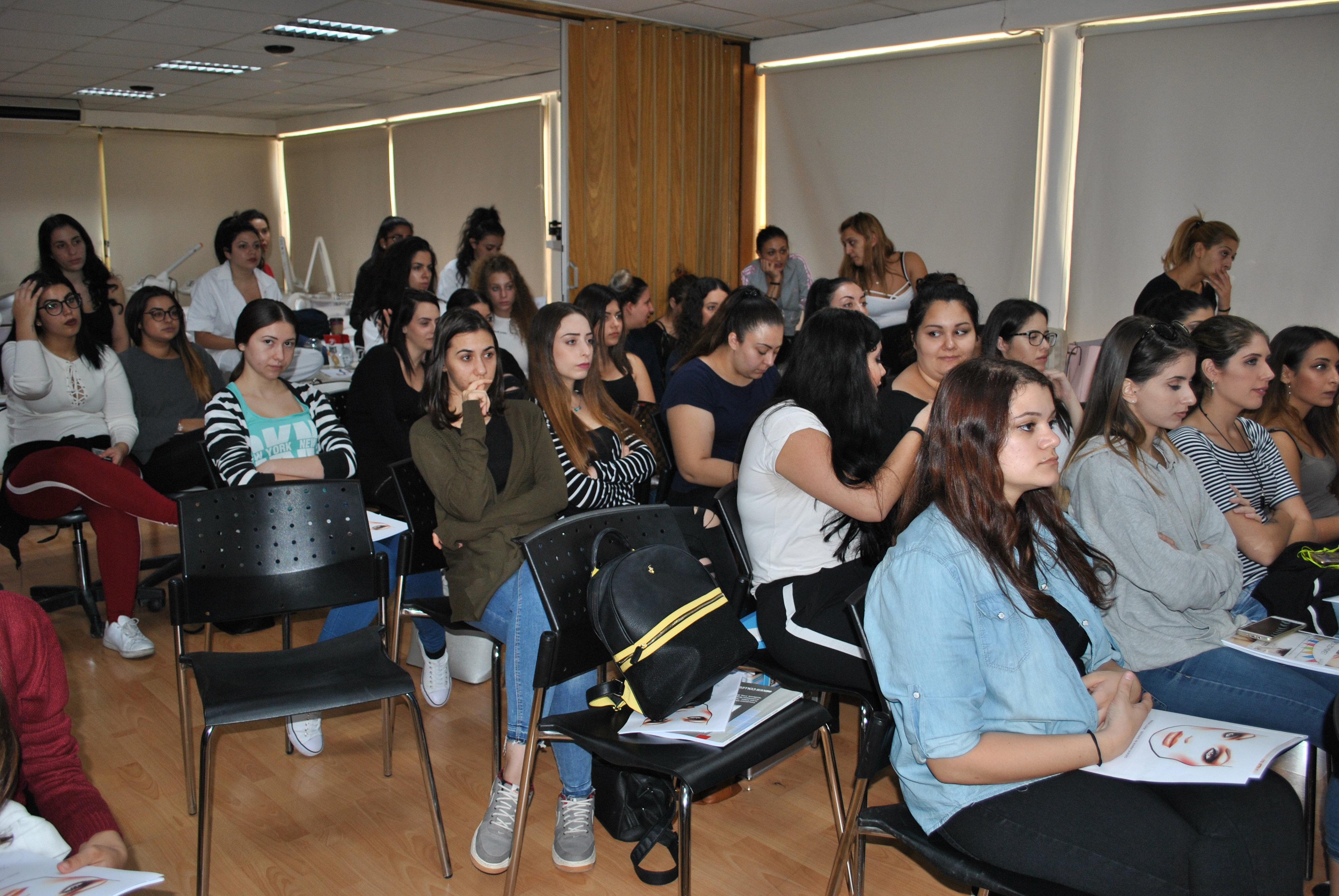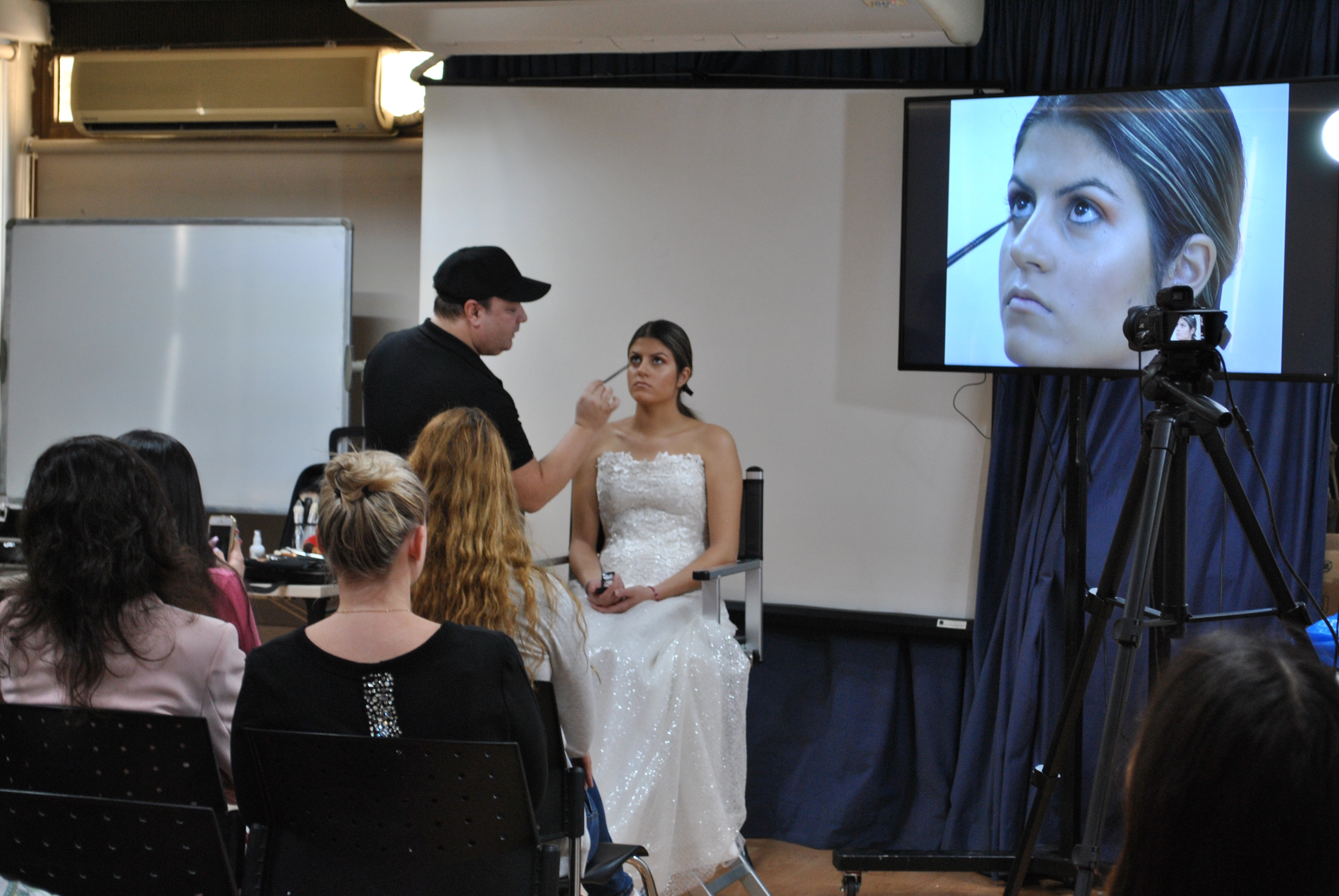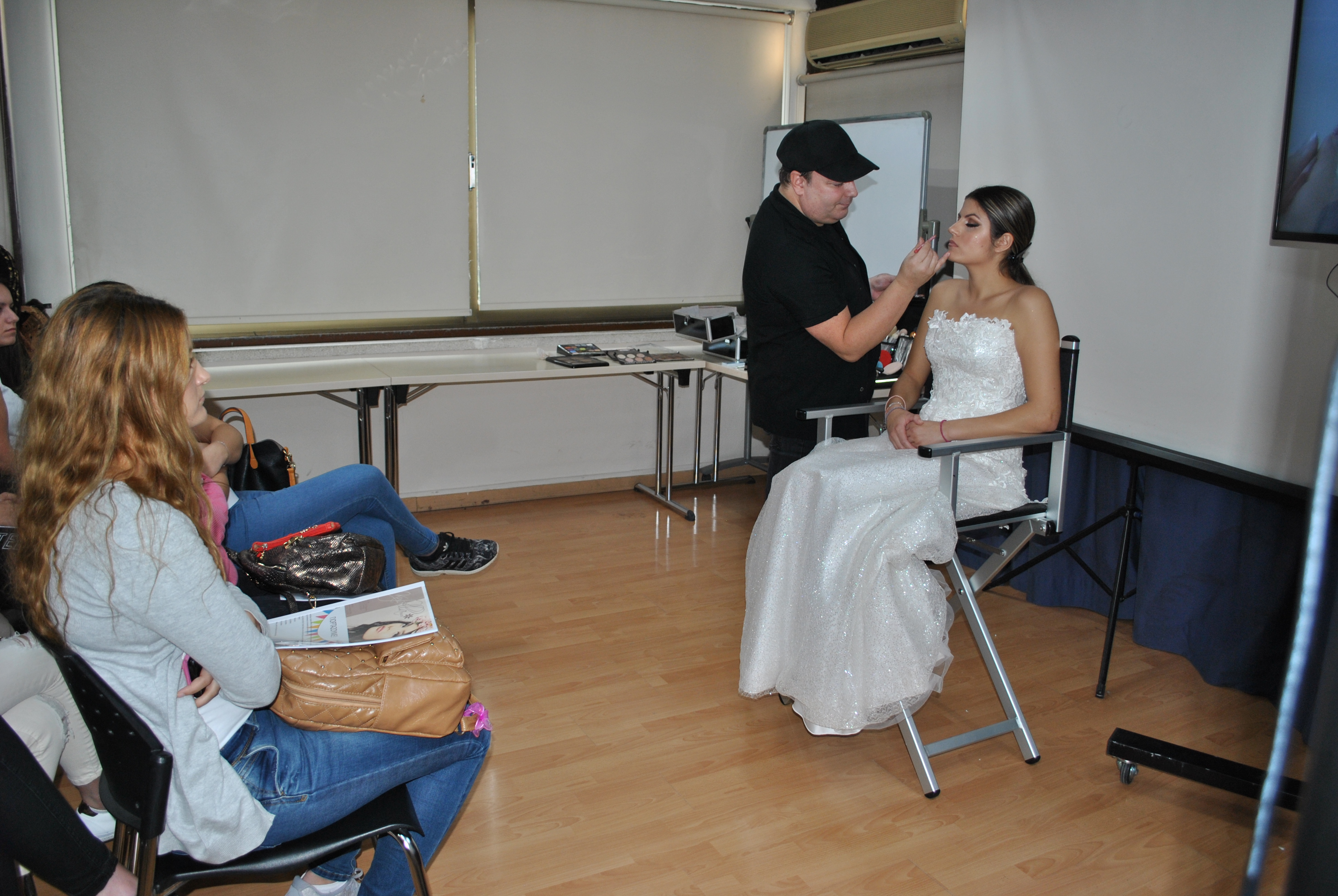 O πολύ γνωστός και αναγνωρισμένος μακιγιέρ Σταύρος Μπρέζας μοιράστηκε τα μυστικά του μακιγιάζ με τις φοιτήτριες του κολλεγίου, δείχνοντάς τους βήμα-βήμα κάθε λεπτομέρεια για ένα πετυχημένο και εντυπωσιακό νυφικό μακιγιάζ. Χρησιμοποίησε τα καλλυντικά προϊόντα VIPERA COSMETICS που αντιπροσωπεύει η εταιρεία KYBELLA στην Κύπρο.