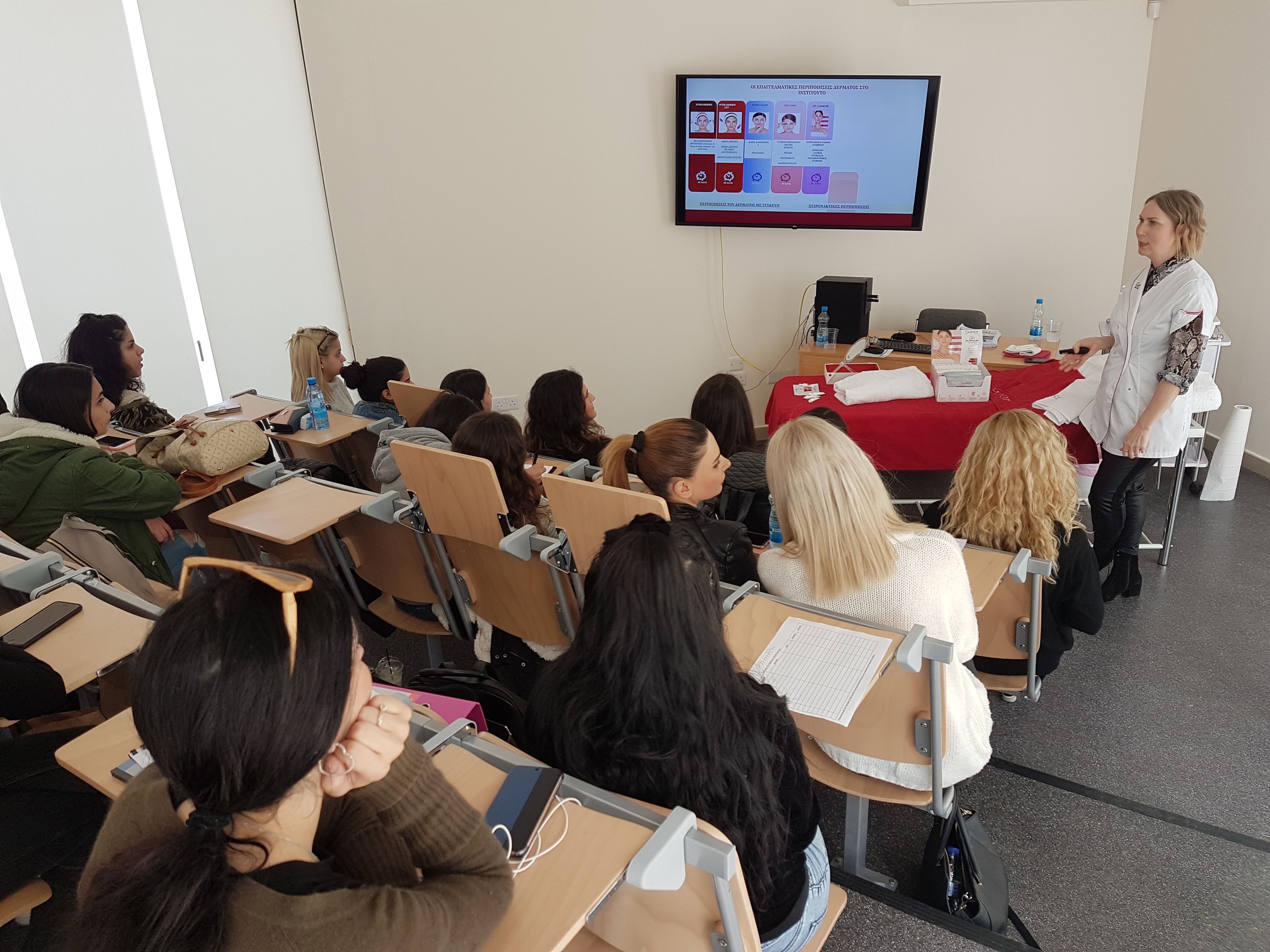 Σκοπός της παρουσίασης ήταν να ενημερωθούν οι φοιτήτριες για τις νέες τεχνικές lifting στο μασάζ με ισχυρά δραστικά συστατικά αντιγήρανσης και σύσφιξης.
