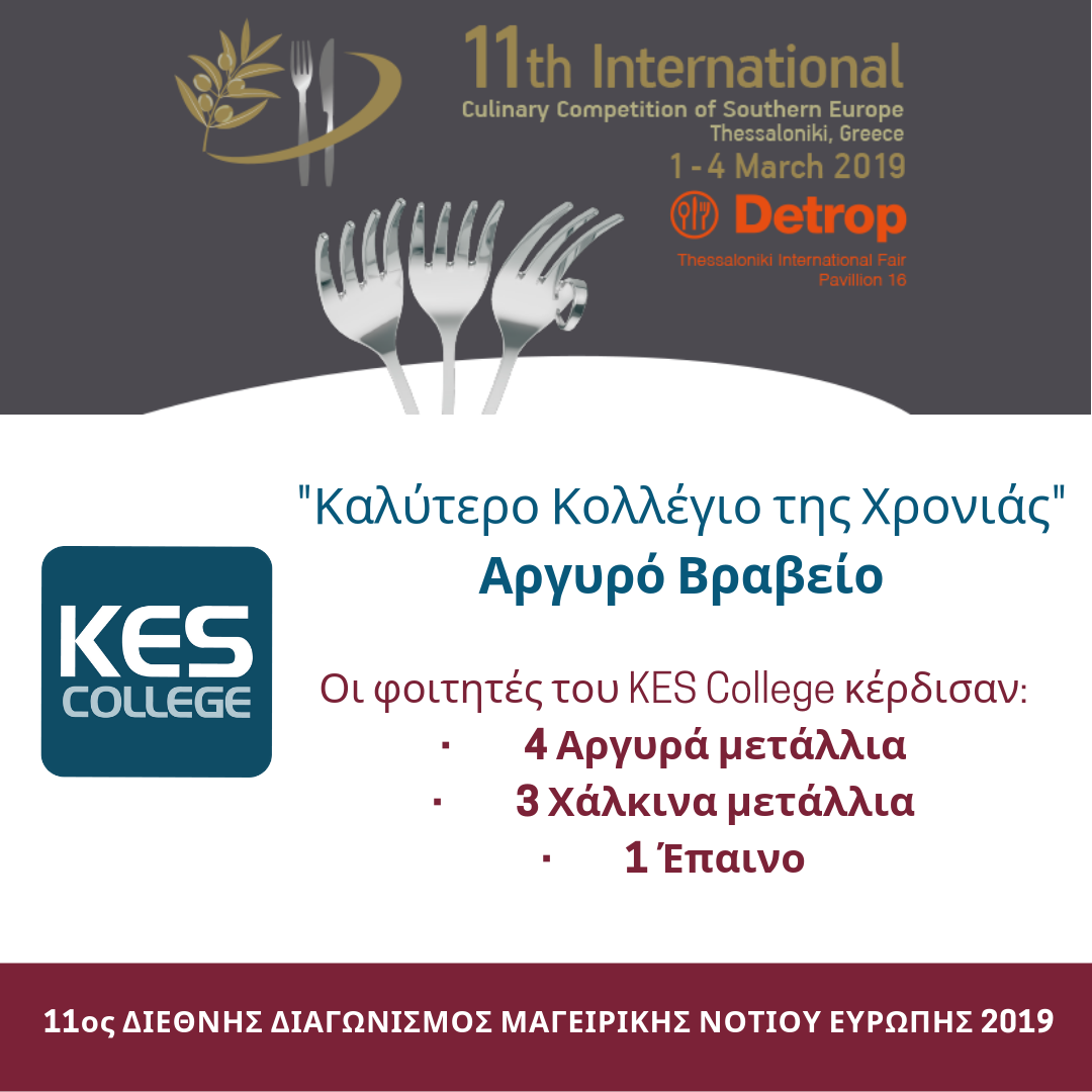 Στο διαγωνισμό για το Καλύτερο Κολλέγιο της Χρονιάς, το KES College πήρε Αργυρό Βραβείο ανάμεσα σε 16 Σχολές από την Ελλάδα, την Κύπρο, τη Σιγκαπούρη, τη Σερβία, τη Λετονία και άλλες.