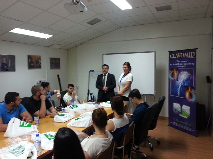 Η ενημέρωση έγινε από τον κ. Ανδρέα Χατζηπαναγή Διευθυντή Μάρκετινγκ και την κ. Μαρία Ρούσου Διευθύντρια Ελέγχου Ποιότητας και περιλάμβανε επεξήγηση των διαδικασιών που ακολουθούνται για την παρασκευή ποιοτικών, αποτελεσματικών και ασφαλών φαρμάκων σε όλες τις φάσεις παραγωγής από τον έλεγχο των πρώτων υλών μέχρι τη διάθεσή τους στις αγορές για τις οποίες προορίζονται. Ακολούθησε ξενάγηση των φοιτητών, υπό τη συνοδεία της κ. Ρούσου, στα εργαστήρια Ελέγχου Ποιότητας των πρώτων υλών όπου οι φοιτητές είχαν την ευκαιρία να δουν από κοντά την όλη διαδικασία και να συνομιλήσουν με τους υπεύθυνους επιλύοντας τις απορίες τους για τις διάφορες διαδικασίες που ακολουθούνται.