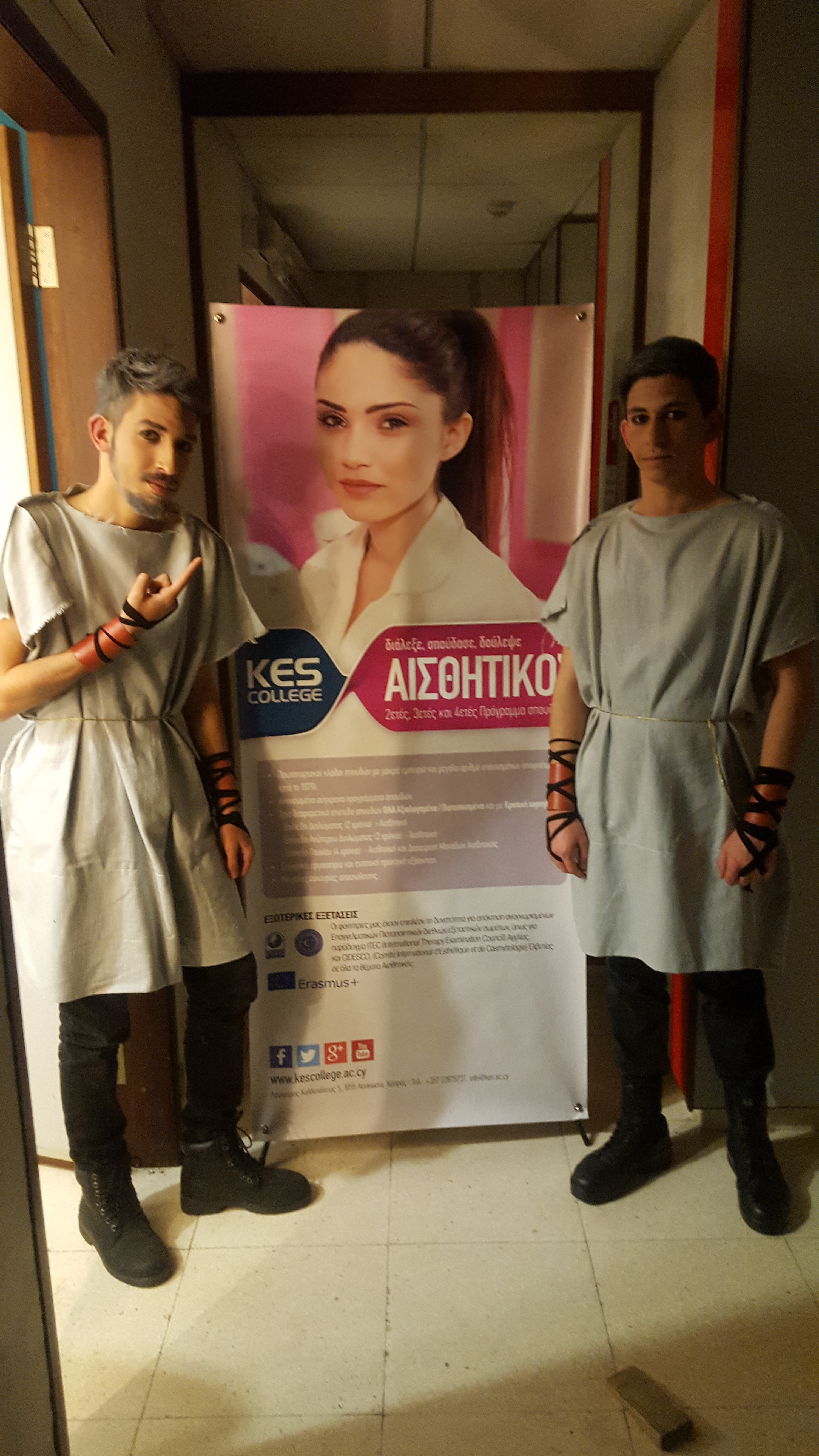 Φοιτήτριες των Αξιολογημένων Προγραμμάτων Σπουδών Αισθητικής του KES College υπό την επίβλεψη των εκπαιδευτριών τους ανέλαβαν αφιλοκερδώς την επιμέλεια του μακιγιάζ της θεατρικής παράστασης. Το μακιγιάζ που επιμελήθηκαν οι φοιτήτριες ήταν εντυπωσιακό, γεμάτο ένταση και συναισθήματα όπως απαιτούσαν οι ρόλοι της συγκεκριμένης παράστασης, τους οποίους υποδύονταν οι μαθητές / μαθήτριες του Λυκείου με τρόπο μαγικό.