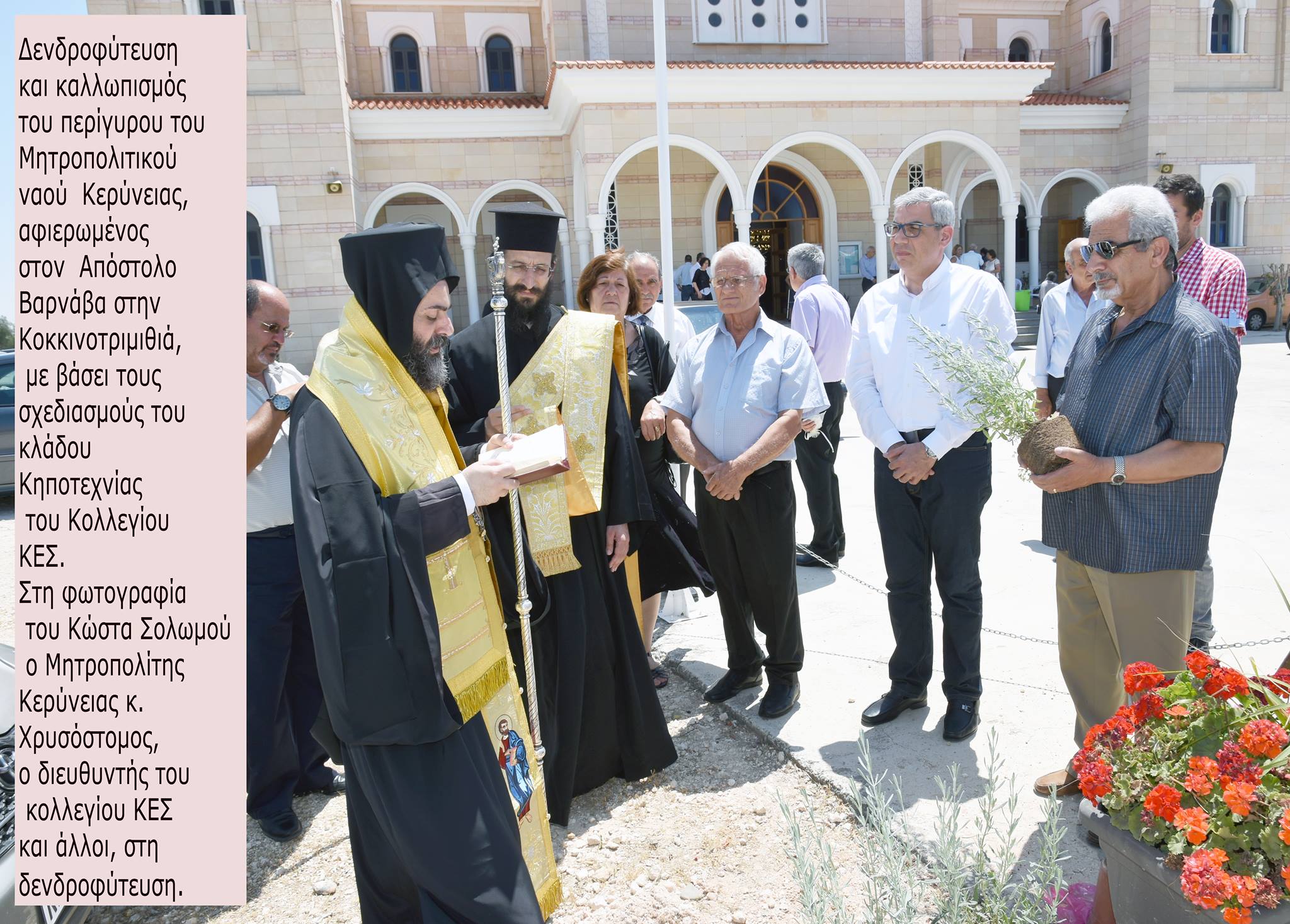 Την Κυριακή 11 Ιουνίου 2017, το KES College και εκπρόσωποι του Προγράμματος Σπουδών «Κηποτεχνία και Σχεδιασμός Κήπου» συμμετείχαν στο εορταστικό πρόγραμμα του Ιερού Μητροπολιτικού Ναού Αποστόλου Βαρνάβα στην Κοκκινοτριμιθιά.