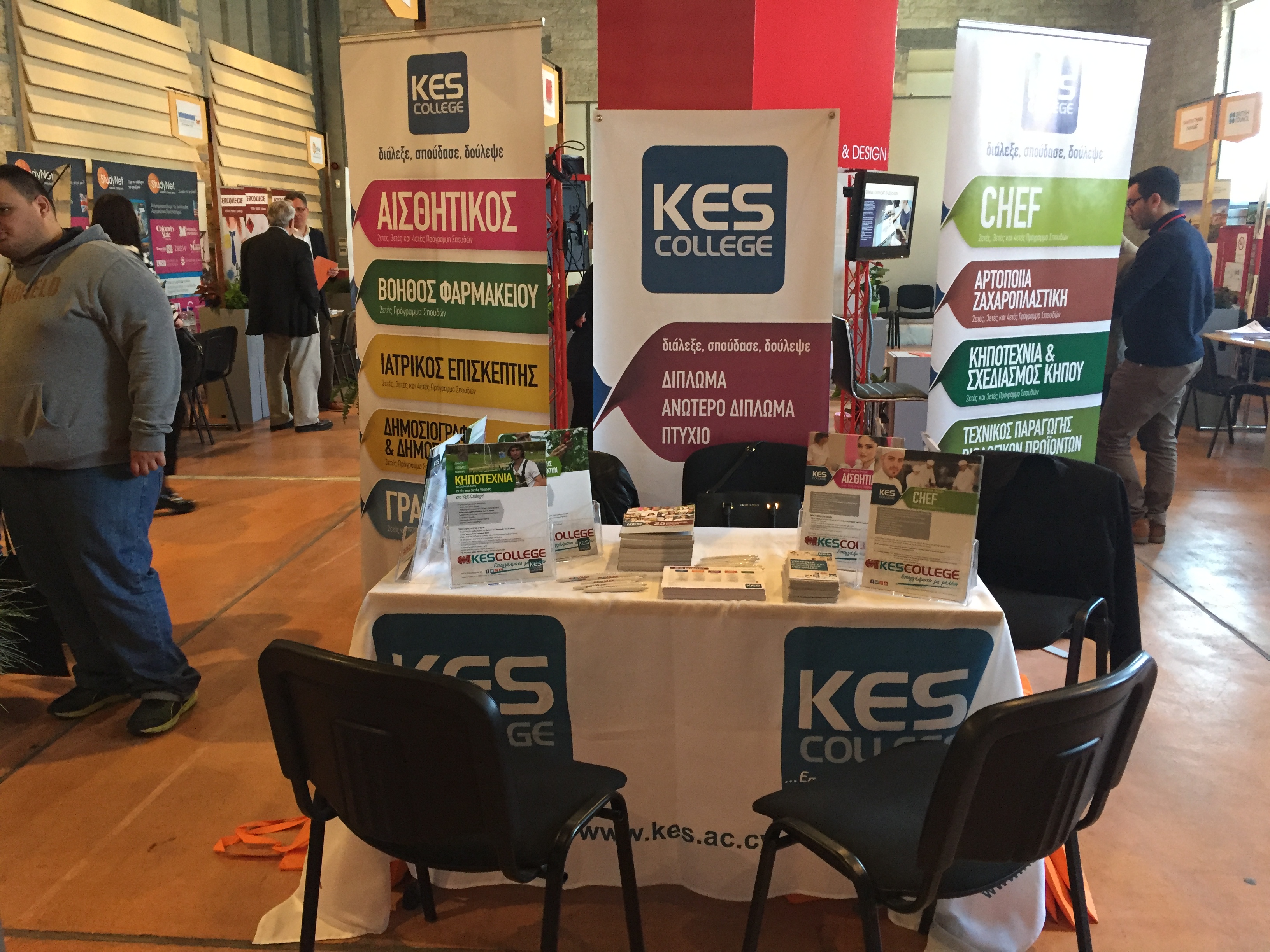 Οι μαθητές Ιδιωτικών και Δημοσίων Λυκείων της Λεμεσού μαζί με τους γονείς τους επισκέφτηκαν την έκθεση και το περίπτερο του KES College και ενημερώθηκαν για τα Προγράμματα Σπουδών που προσφέρει το κολλέγιο και τις ευκαιρίες επαγγελματικής αποκατάστασής τους. Έλαβαν κατευθύνσεις για πρακτικά θέματα και διαδικασίες, όπως για προϋποθέσεις εγγραφής, δίδακτρα και οικονομικά πακέτα, καθώς και για τις κρατικές χορηγίες που δίνονται στα Αξιολογημένα Προγράμματα Σπουδών του κολλεγίου.
