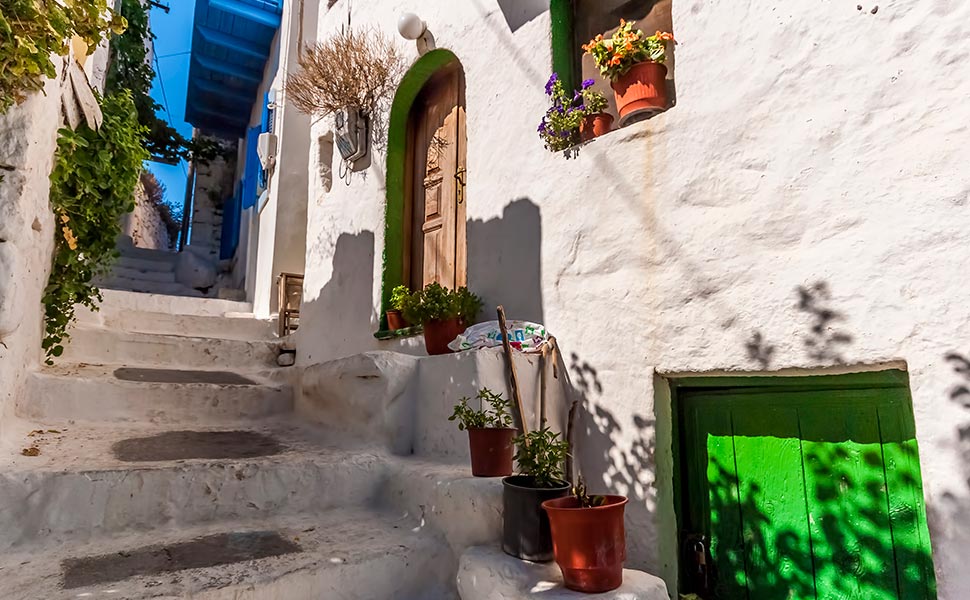 Για αιώνες, οι κάτοικοι της Τήλου έχτιζαν τα σπίτια τους στην ενδοχώρα, ασφαλείς από τους επιδρομείς. Αλλά τη δεκαετία του 1950, όταν οι κάτοικοι του Μικρού Χωριού διαπίστωσαν ότι τα πηγάδια τους στέρεψαν, αποφάσισαν να μετακομίσουν στην περιοχή του λιμανιού του νησιού – παίρνοντας μαζί τους τις στέγες, τις πόρτες και τα παράθυρά τους. Μέχρι πρόσφατα, τα μόνα σημάδια ότι το Μικρό Χωριό υπήρξε ποτέ ήταν η ασβεστωμένη εκκλησία και οι πέτρινοι τοίχοι στους οποίους σκαρφαλώνουν κατσίκες. Τώρα, όμως, ένα ερειπωμένο σπίτι έχει ανακαινιστεί και μετατραπεί σε ένα ατμοσφαιρικό καλοκαιρινό μπαρ. Από τις 11 το βράδυ που ανοίγει, ένα λεωφορείο πηγαινοέρχεται από τα γειτονικά Λιβάδια – και ο ήχος της μουσικής, της κουβέντας και των ποτηριών που τσουγκρίζουν γεμίζει και πάλι αυτό το χωριό-φάντασμα.