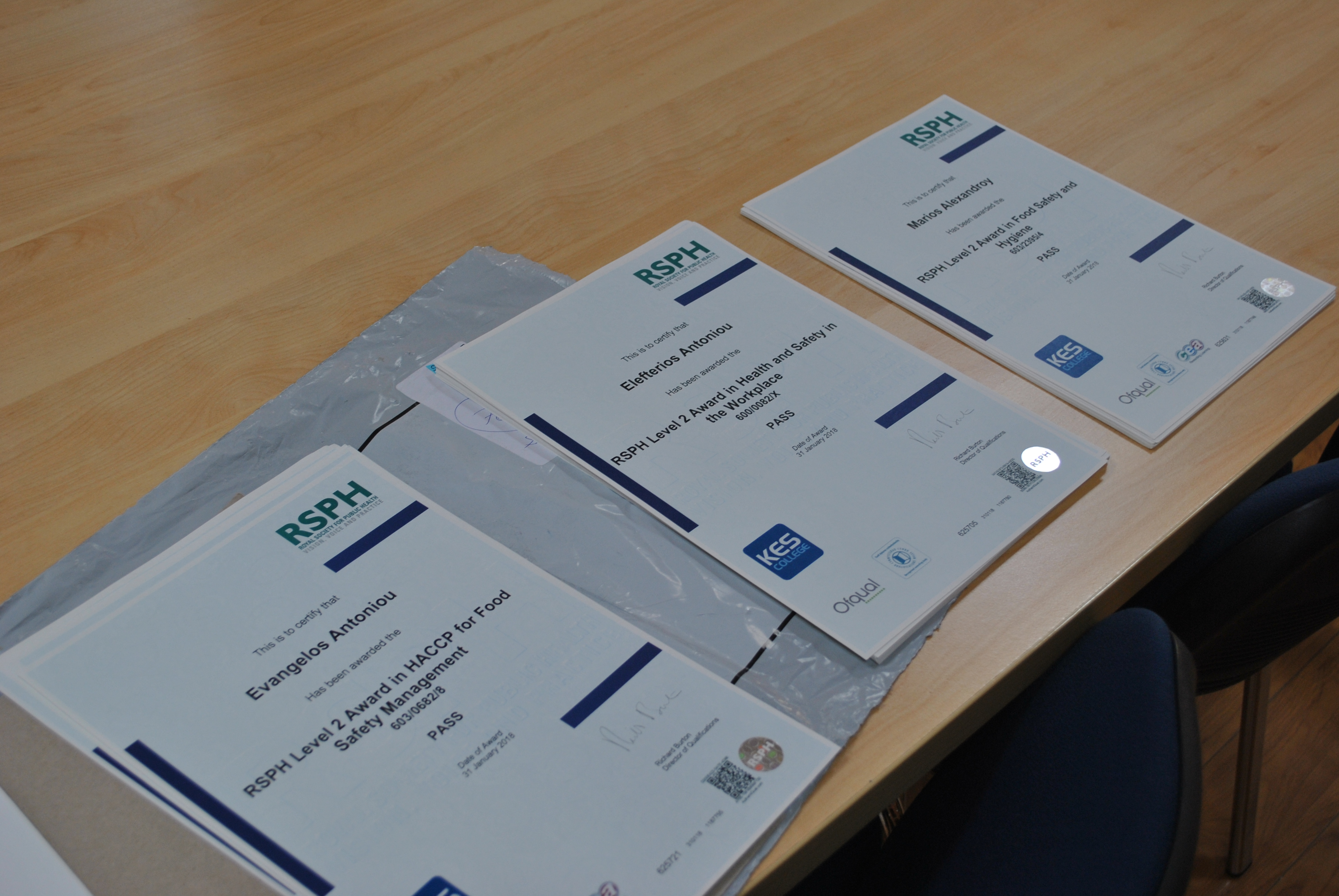 Το ποσοστό επιτυχίας ήταν 100%. Αυτό αντικατοπτρίζει την εκπαίδευση και τη σκληρή δουλειά που γίνεται από όλο το διδακτικό προσωπικό του κολλεγίου. Σε λίγες μέρες, θα πραγματοποιηθούν εξετάσεις και στο Level 3 award in Supervising Food Safety in Catering, που αποτείνεται περισσότερο σε επαγγελματίες στο χώρο των τροφίμων που έχουν εποπτικές θέσεις και θέλουν να πιστοποιηθούν με προσόντα αναγνωρισμένης αξίας.