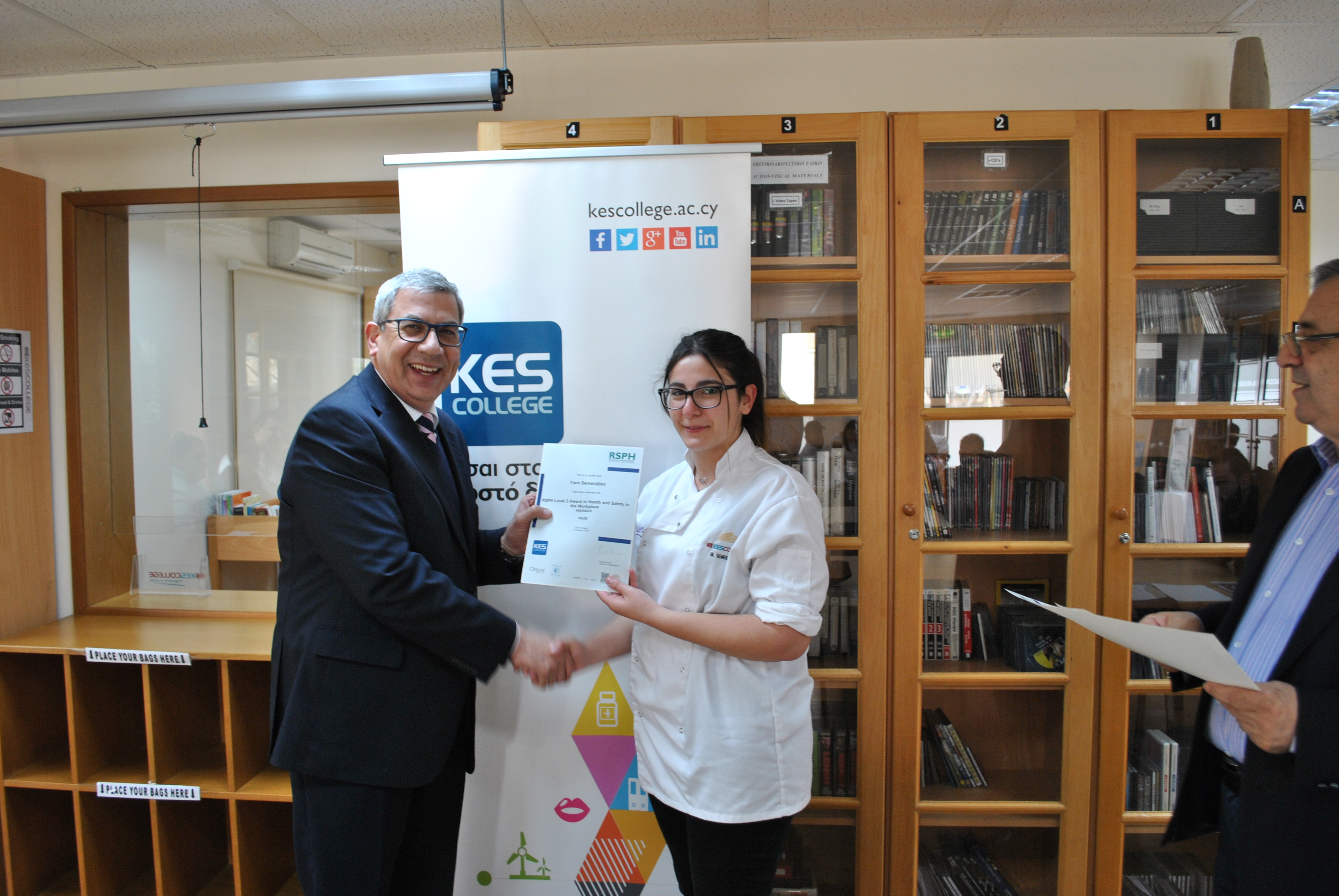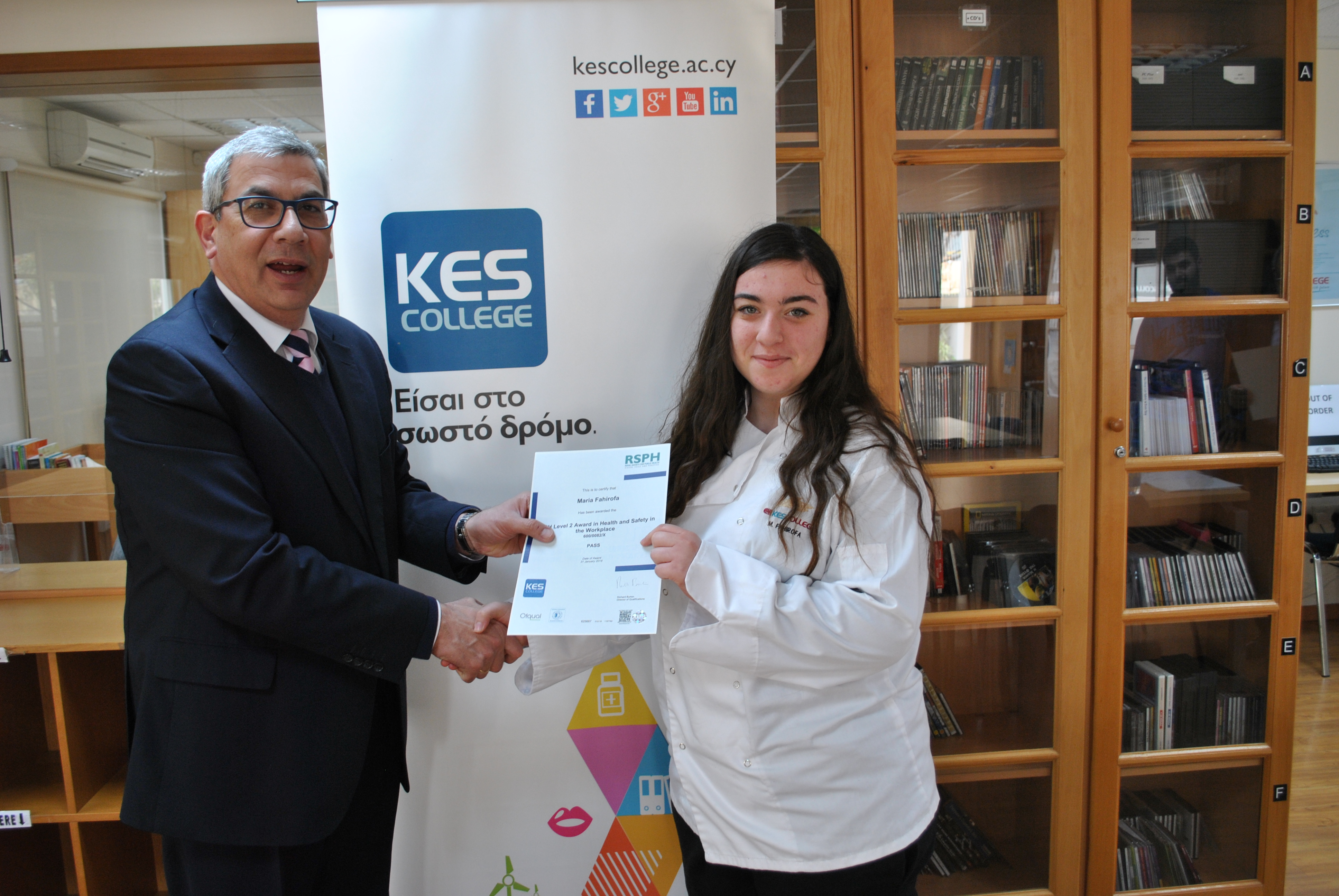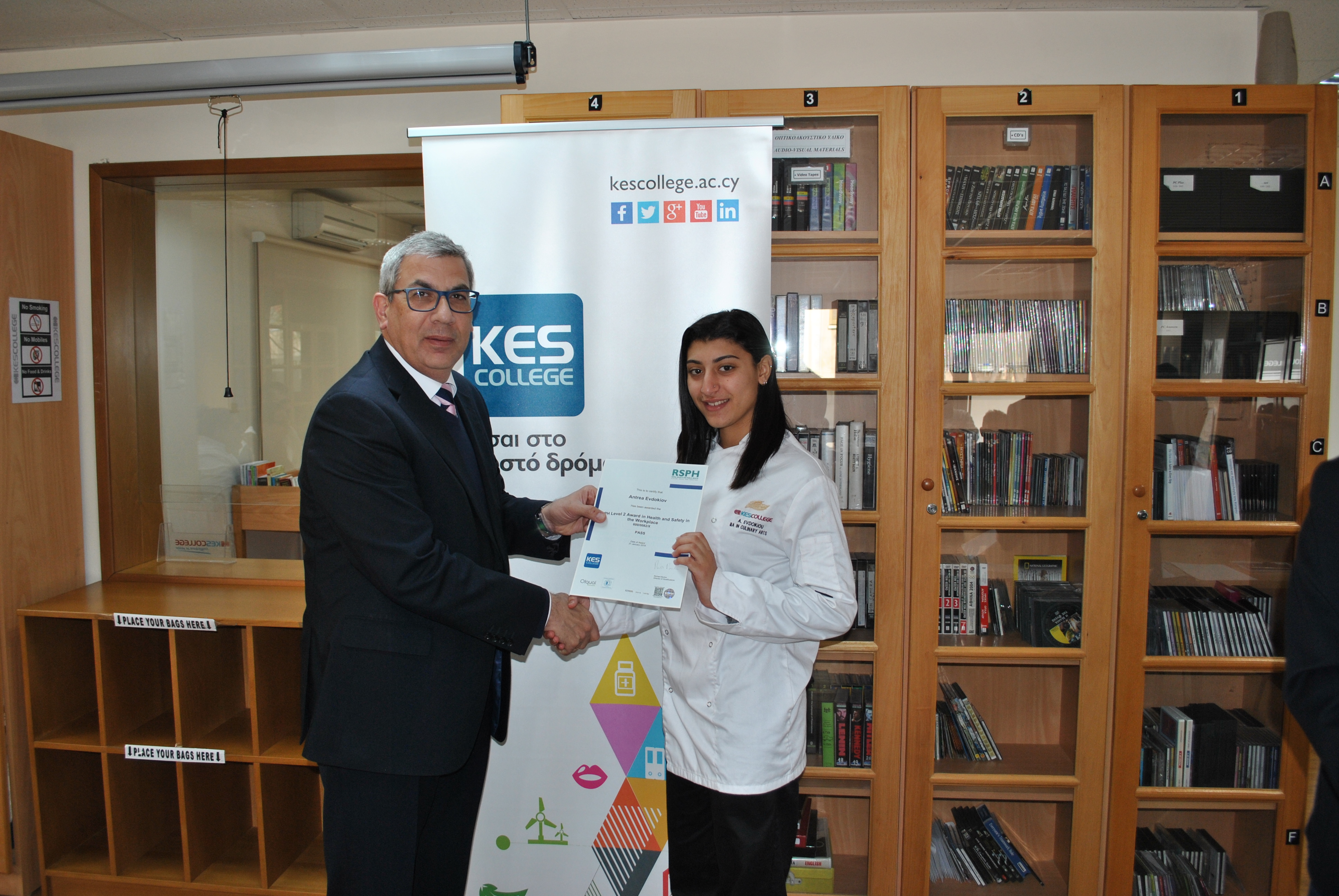Πραγματοποιήθηκε την Πέμπτη, 15 Φεβρουαρίου 2018 στη βιβλιοθήκη του KES College η τελετή απονομής βραβείων στους φοιτητές που έλαβαν μέρος και πέτυχαν τις εξετάσεις του παγκοσμίου φήμης οργανισμού της Βασιλικής Εταιρείας για την Προώθηση της Υγείας στο Ηνωμένο Βασίλειο RSPH (Royal Society for Public Health). Κατόπιν ενδελεχούς ελέγχου του κολλεγίου, ο οργανισμός RSPH έχει δώσει την έγκρισή του στο KES College να παραδίδει σχετικά μαθήματα και να λειτουργεί ως εξεταστικό κέντρο για ειδικά θέματα όπως αυτά που αναφέρονται παρακάτω. Πρόκειται για μια ιδιαίτερη τιμή για το κολλέγιο και είναι ακόμη μια απόδειξη των εκτελούμενων εργασιών υψηλού επιπέδου.