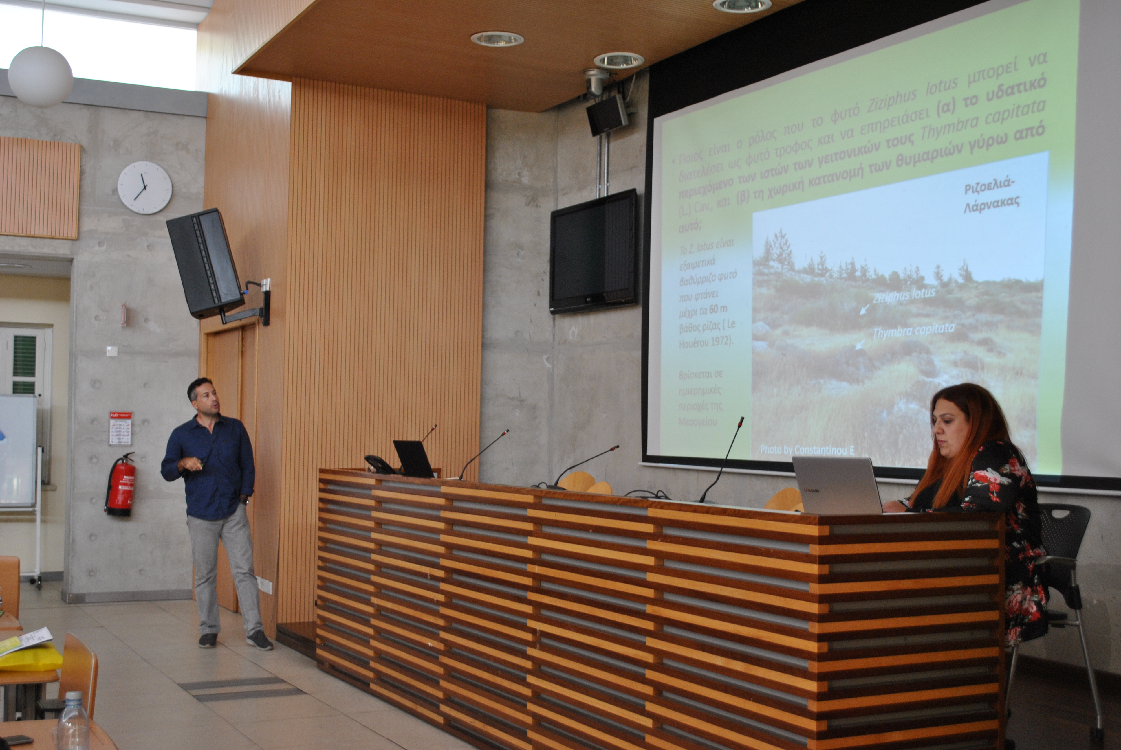 Στην ομιλία του ο Δρ. Δημήτρης Σαρρής, Διευθυντής του KES Research Centre και Αναπληρωτής Συντονιστής του Προγράμματος «Τεχνικός Παραγωγής Βιολογικών Προϊόντων» του KES College, αναφέρθηκε στη σημασία της συγκαλλιέργειας και της προστασίας του εδάφους για τη Βιολογική Γεωργία. Τόνισε, πως η Βιολογική Γεωργία μπορεί να καταστεί βιώσιμη: 1) με την αξιοποίηση στο μέγιστο της ικανότητας ανακύκλωσης θρεπτικών στοιχείων εντός της καλλιέργειας, 2) με τη μεγιστοποίηση της αξιοποίησης διαθέσιμου νερού και 3) με την αξιοποίηση των ωφελημάτων της βιοποικιλότητας. Επίσης, παρουσίασε νέα πειραματικά δεδομένα μέσα από ερευνητικές συνεργασίες με το Πανεπιστήμιο Κύπρου και το Ανοικτό Πανεπιστήμιο Κύπρου που υποδηλώνουν πως η χρήση βαθύρριζων φυτών που λειτουργούν ως «τροφοί» άλλων φυτών εντός της καλλιέργειας, καθώς και κάλυψη του γυμνού εδάφους με φυτική βιομάζα τους θερινούς μήνες, μπορούν να λειτουργήσουν ευεργετικά για τη διαθεσιμότητα υγρασίας στις μεσογειακές βιολογικές καλλιέργειες.