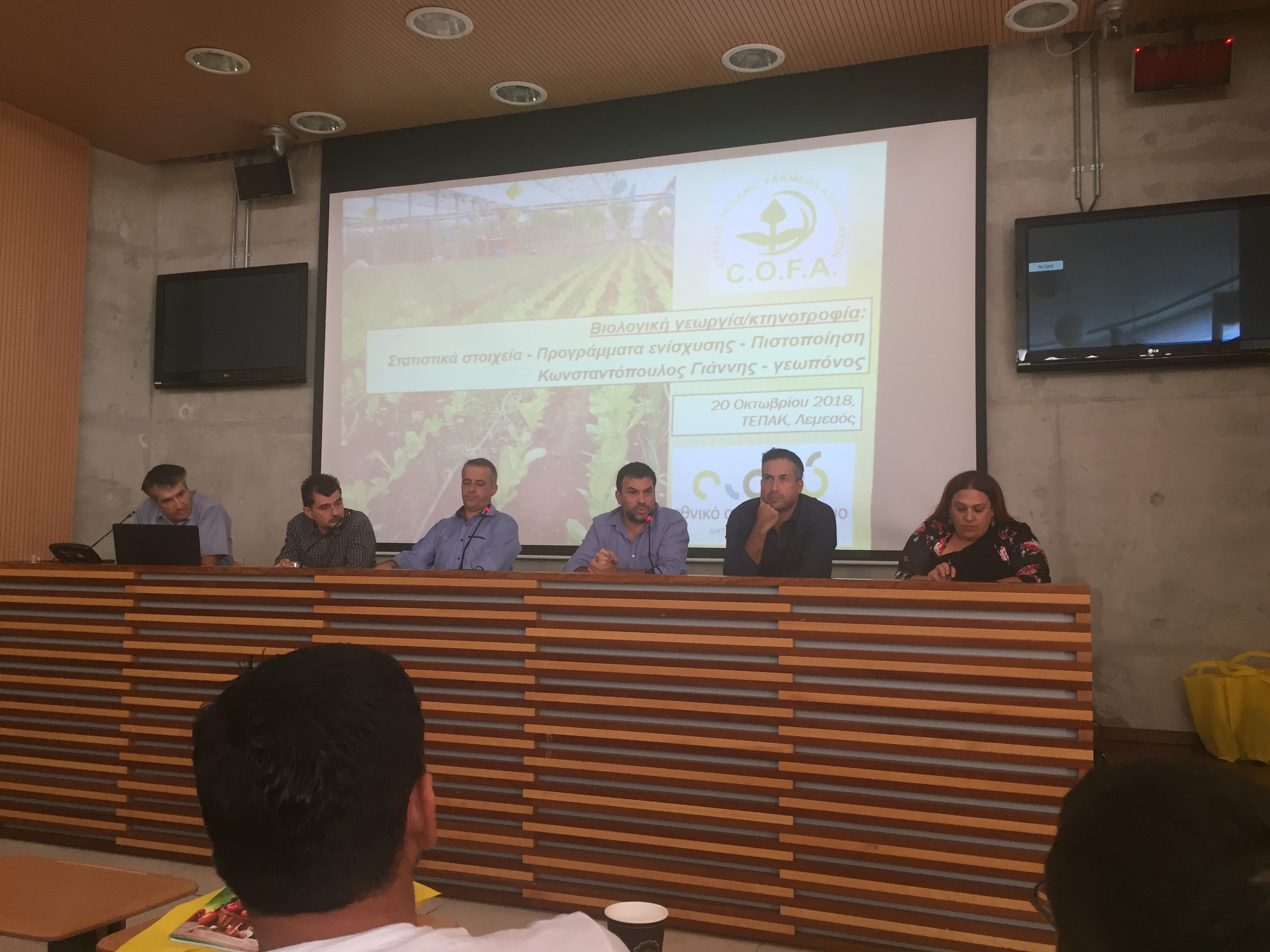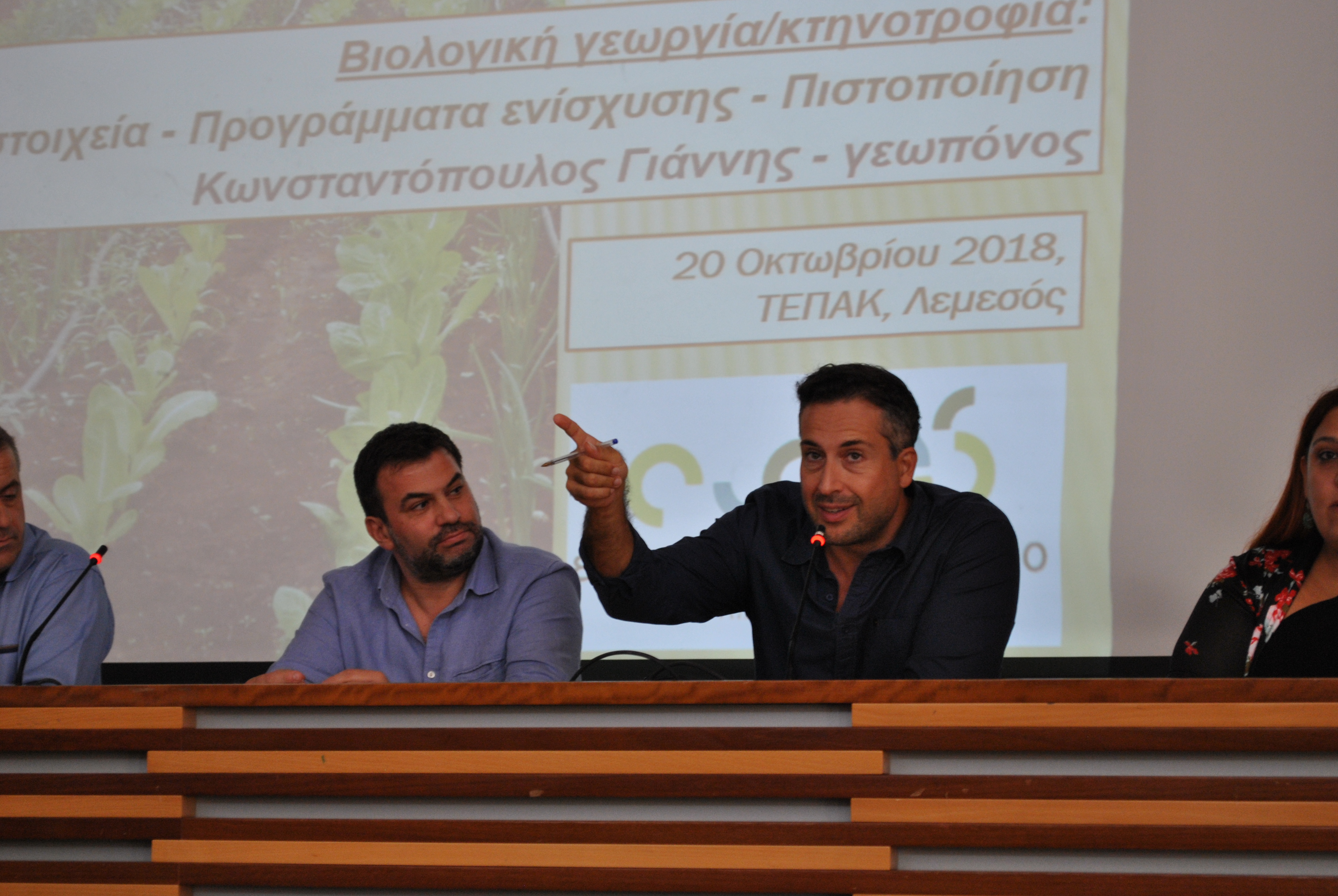 Με μεγάλη επιτυχία πραγματοποιήθηκε το Σάββατο 20 Οκτωβρίου 2018, η Επιστημονική Ημερίδα του Συνδέσμου Βιοκαλλιεργητών Κύπρου με θέμα «Πως η Βιολογική Γεωργία μετατρέπεται σε Βιώσιμη Γεωργία» και ομιλητές Πανεπιστημιακούς, Γεωπόνους και Βιοκαλλιεργητές από την Ελλάδα και την Κύπρο.