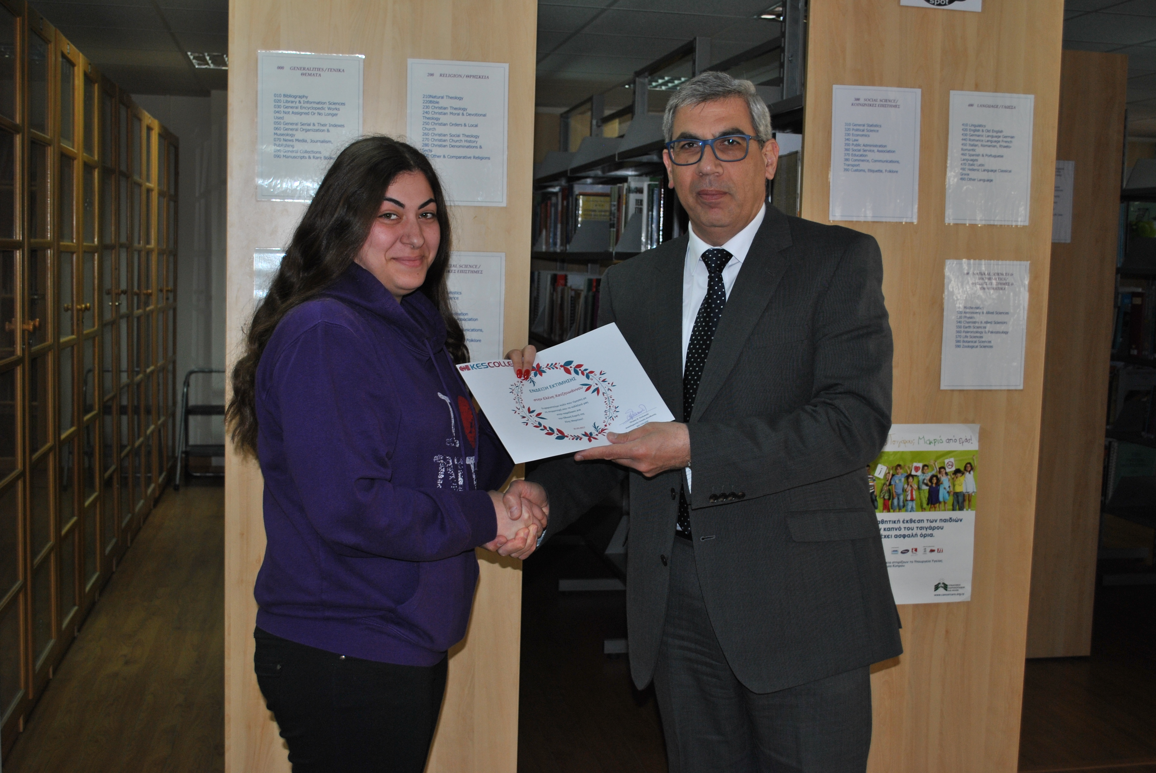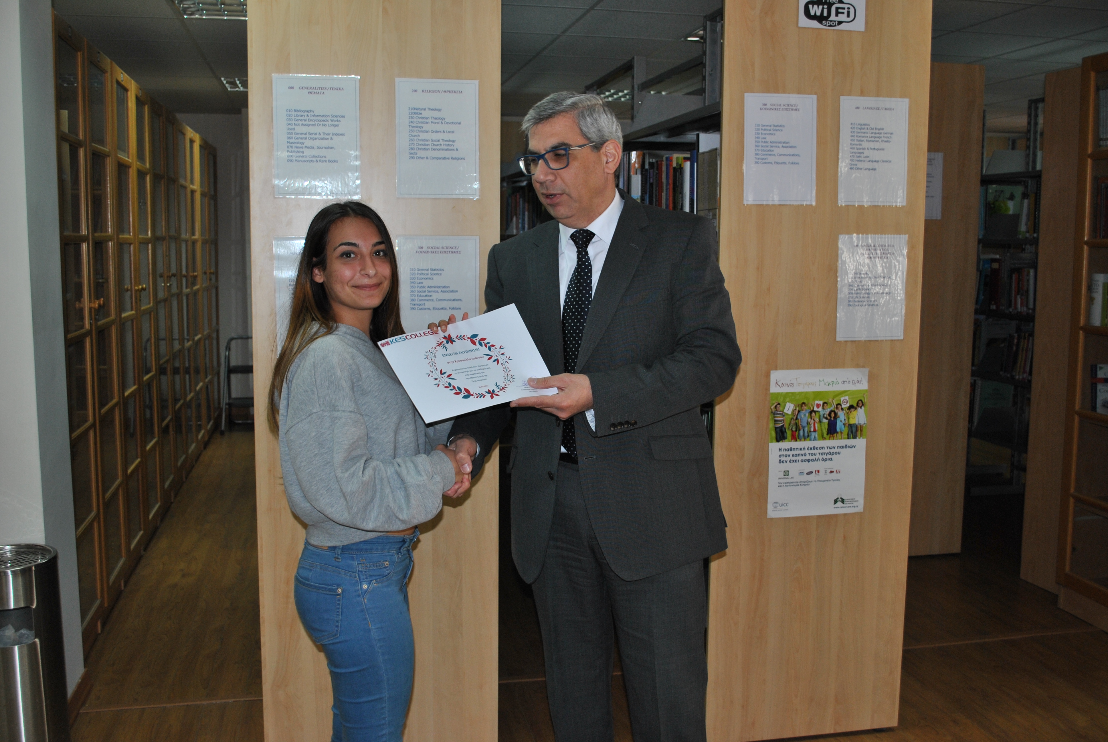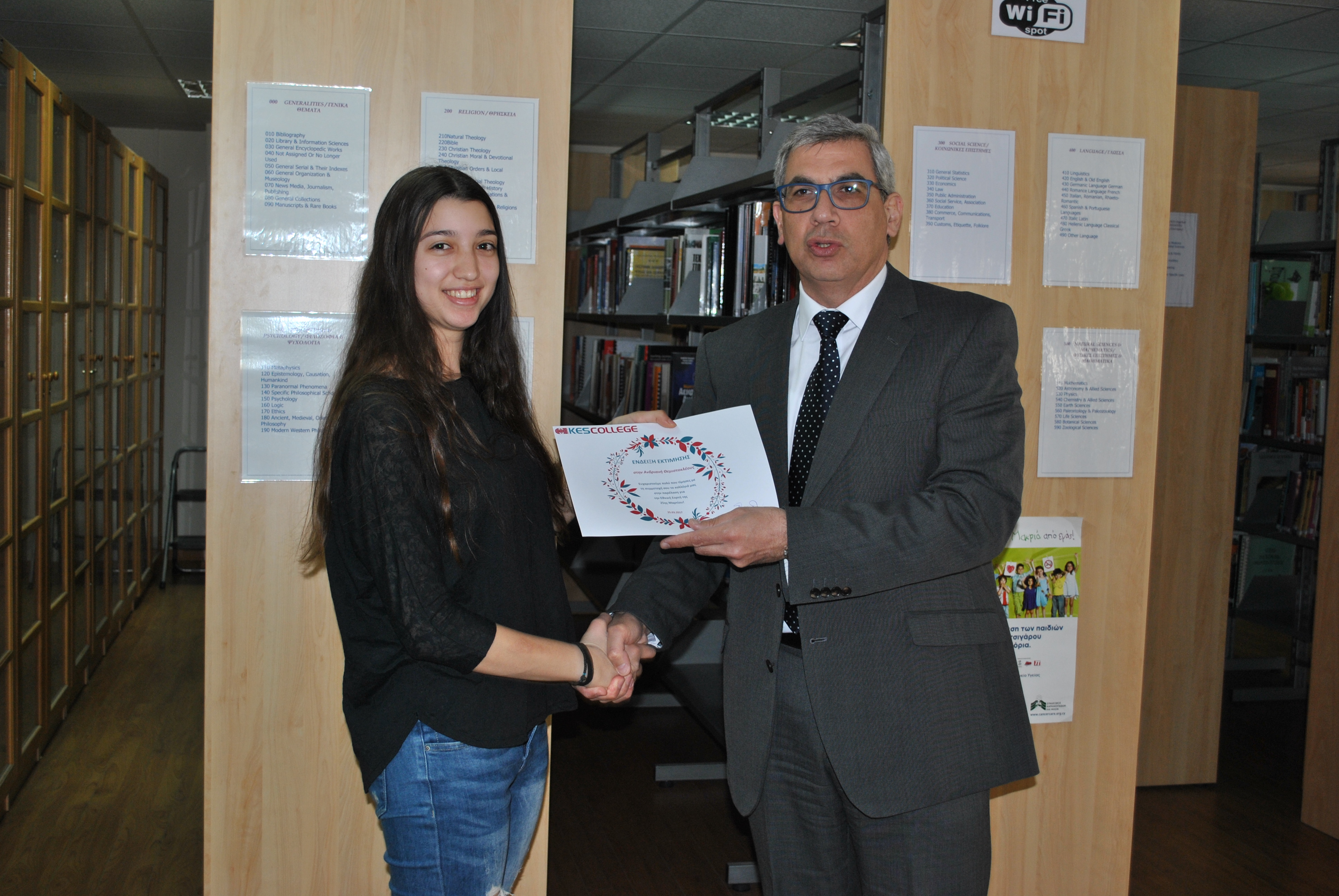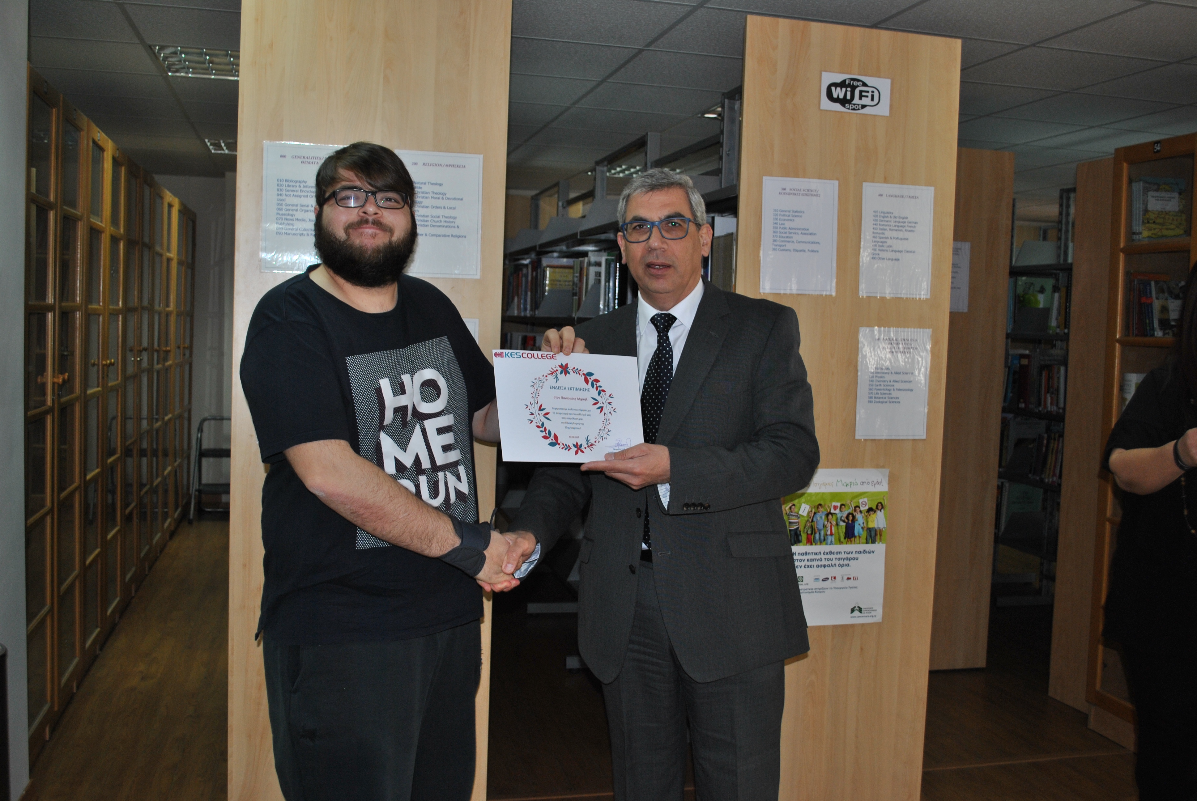 Ως ένδειξη εκτίμησης για τη συμμετοχή τους στην παρέλαση της 25ης Μαρτίου, το KES College απένειμε επαίνους στους φοιτητές σε μία μικρή εκδήλωση που πραγματοποιήθηκε στη βιβλιοθήκη το κολλεγίου την Τετάρτη, 5 Απριλίου 2017.