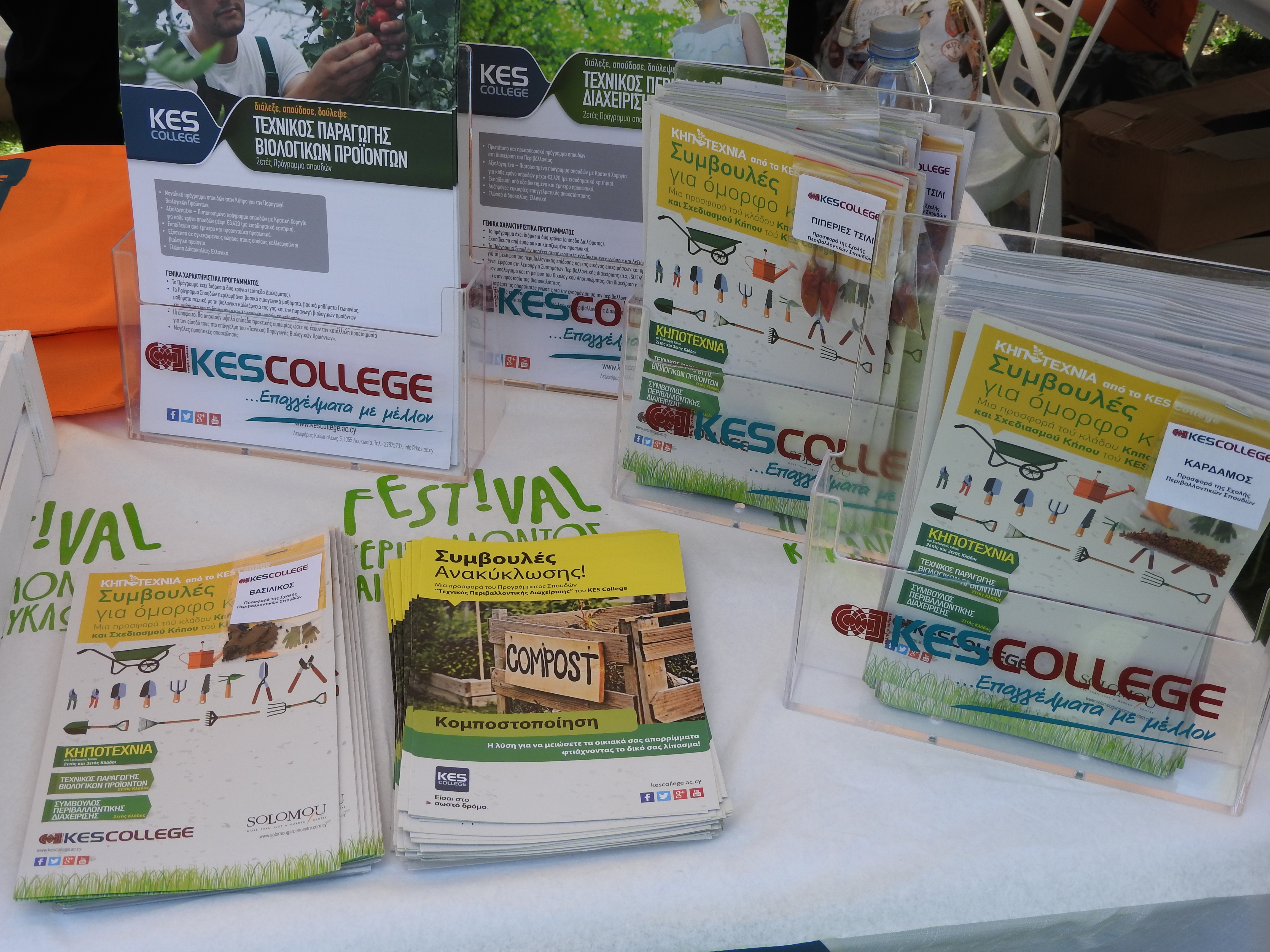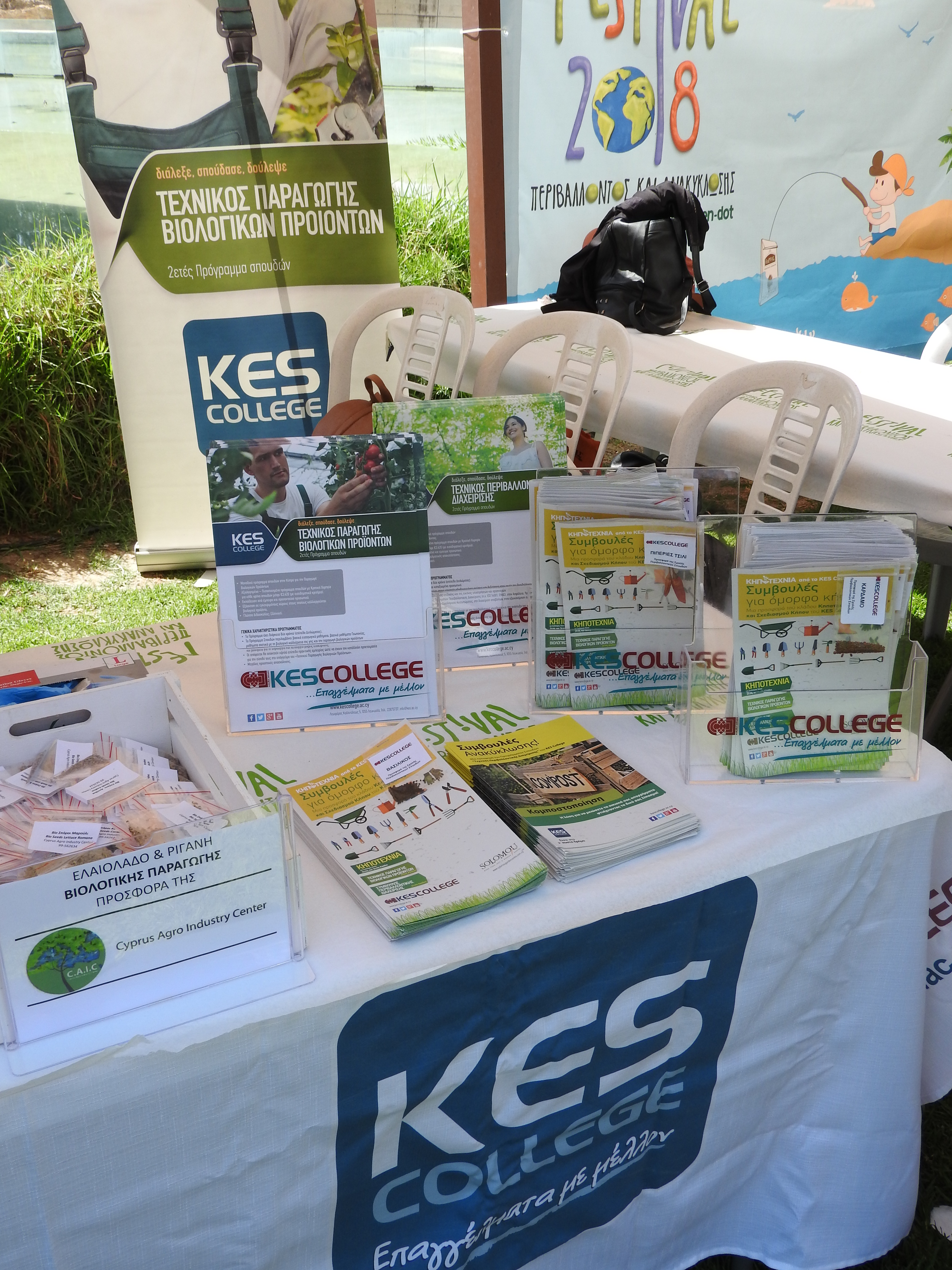 Το KES College ενημέρωνε το κοινό για τα τέσσερα (4) Προγράμματα Σπουδών «Κηποτεχνία», «Κηποτεχνία και Σχεδιασμός Κήπου», «Τεχνικός Παραγωγής Βιολογικών Προϊόντων», «Τεχνικός Περιβαλλοντικής Διαχείρισης» που προσφέρει. Επίσης, ενημέρωνε μικρούς και μεγάλους για τη μέθοδο κομποστοποίησης, ενός τρόπου ανακύκλωσης των οικιακών απορριμμάτων, έδιδε συμβουλές για ένα όμορφο κήπο προσφέροντας βιολογικούς και συμβατικούς σπόρους και κερνούσε βιολογικά προϊόντα, όπως ντοματίνια cherry, ψωμί με λάδι και ρίγανη που προσφέρθηκαν από τους συνεργάτες του, RIVERLAND και CYPRUS AGRO INDUSTRY CENTER, τα οποία ενθουσίασαν με τη γεύση τους.