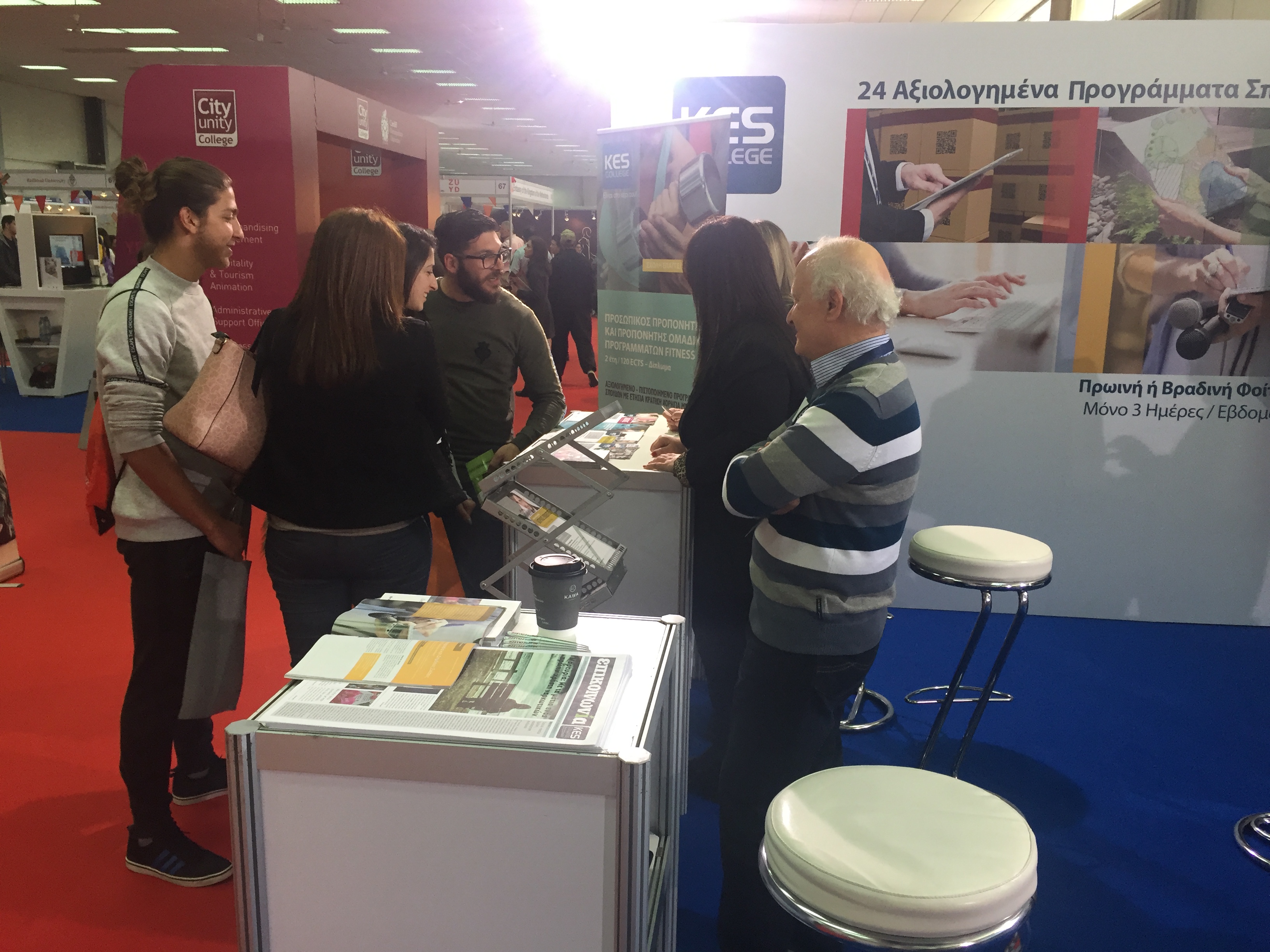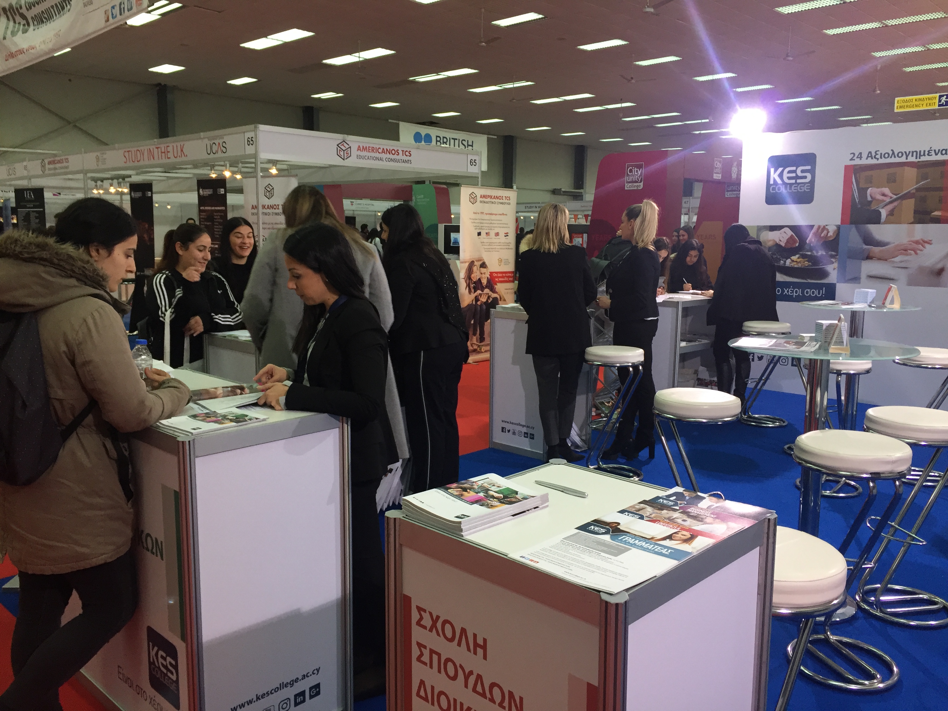 Την πρώτη ημέρα, η Έκθεση κατακλύστηκε από μαθητές των Δημοσίων και Ιδιωτικών Λυκείων της Κύπρου όπου λειτουργοί του KES College τους υποδέχτηκαν ενημερώνοντάς τους για τα 24 Αξιολογημένα – Πιστοποιημένα Προγράμματα Σπουδών και τις ευκαιρίες σταδιοδρομίας και επαγγελματικής αποκατάστασης που ανοίγονται μπροστά τους σπουδάζοντας στο KES College.