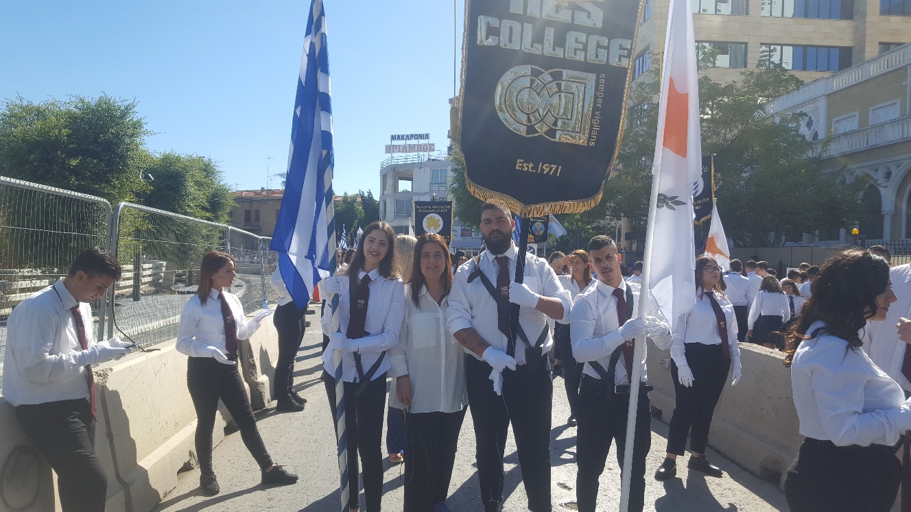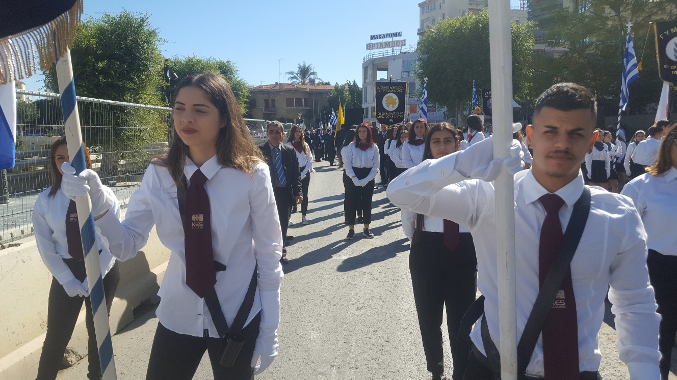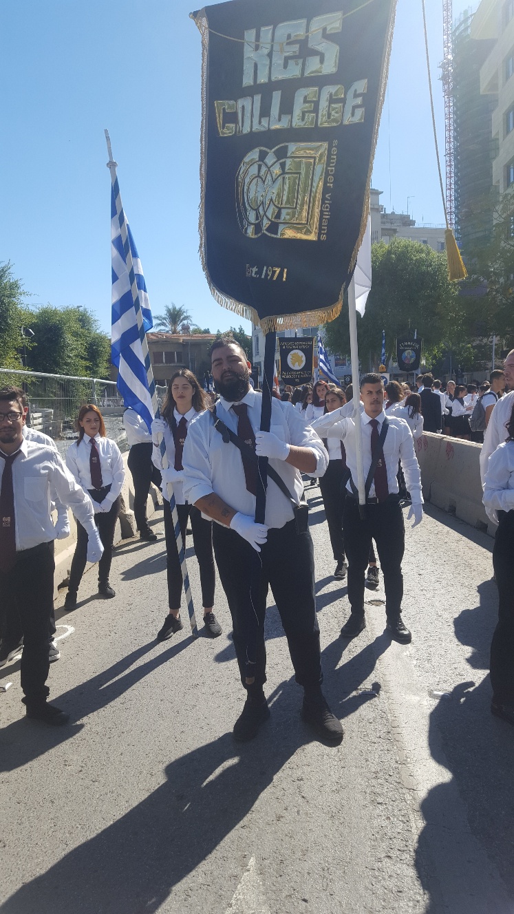 Την Κυριακή, 28 Οκτωβρίου 2018, οι φοιτητές του KES College με μεγάλο ενθουσιασμό και υπερηφάνεια συμμετείχαν στη μαθητική παρέλαση που πραγματοποιήθηκε στη Λευκωσία ενώπιον του Προέδρου  της Κυπριακής Δημοκρατίας, του Πρέσβη της Ελλάδας, του Υπουργού Παιδείας και άλλων επισήμων.