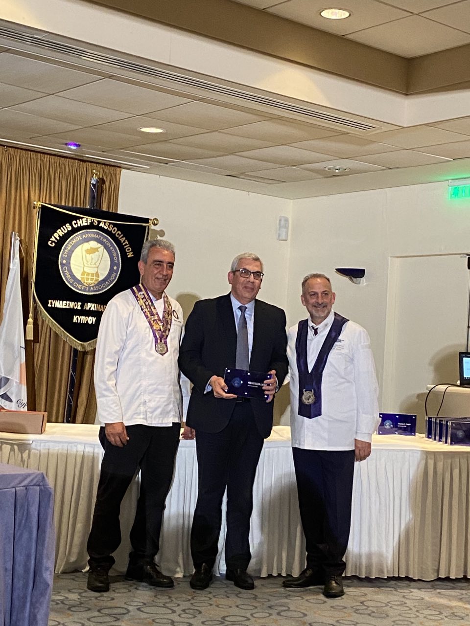 Παρών στη Γενική Συνέλευση ήταν και ο Πρόεδρος της Παγκόσμιας Οργάνωσης Αρχιμαγείρων (World Association of Chefs Societies – WACS) κ. Thomas A. Gugler, μέλος της οποίας είναι και το KES College. Το κολλέγιο τιμήθηκε από τον απερχόμενο Πρόεδρο του Σ.Α.Κ. κύριο Γιώργο Δαμιανού και τον εισερχόμενο Πρόεδρο του Σ.Α.Κ. κύριο Πέτρο Γαβριήλ, για τη διαχρονική υποστήριξη του κολλεγίου στις δράσεις του συνδέσμου.